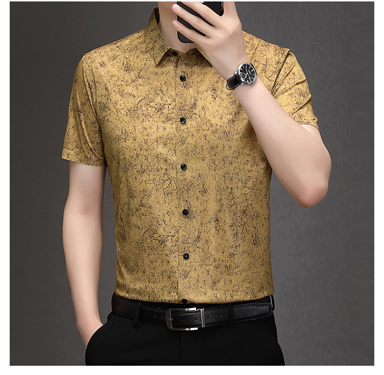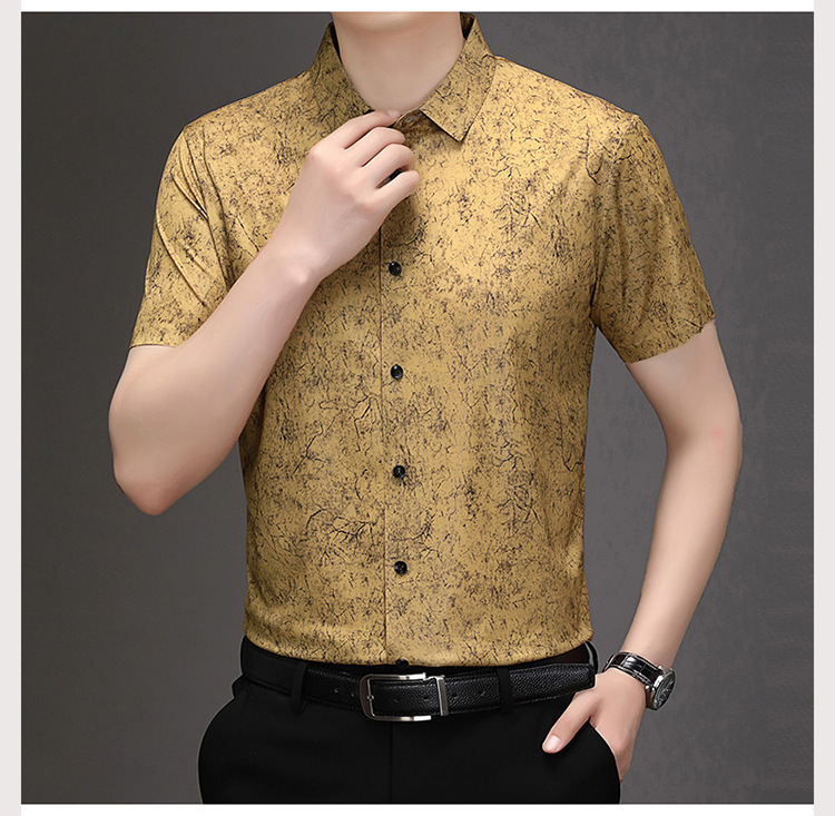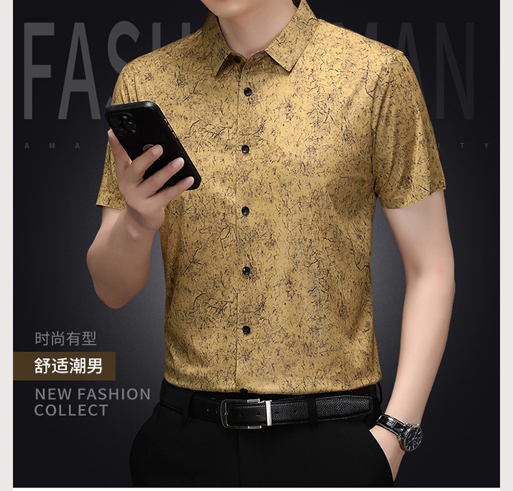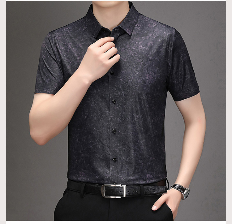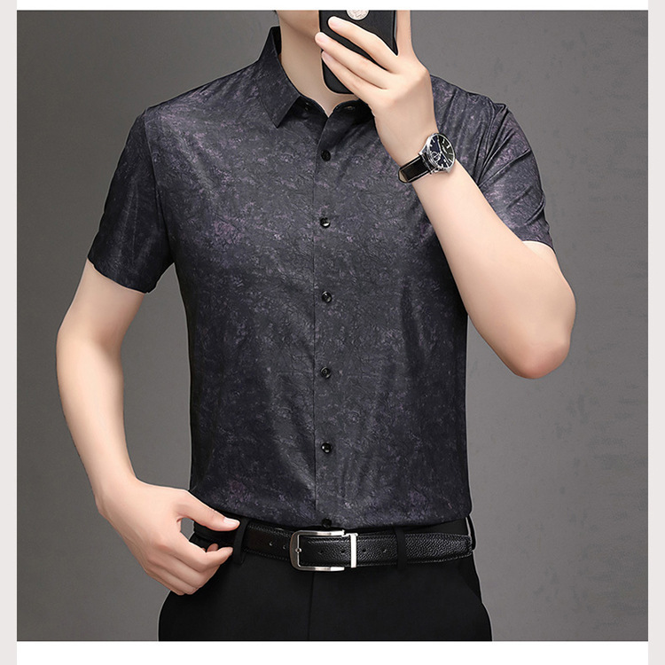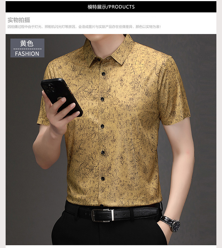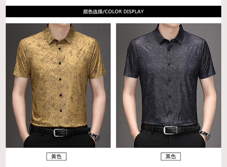 중년 및 젊은 남성 심플 캐주얼 솔리드 컬러 라펠 남성 셔츠 여름 새로운 편안한 반팔 탑스토어 가기