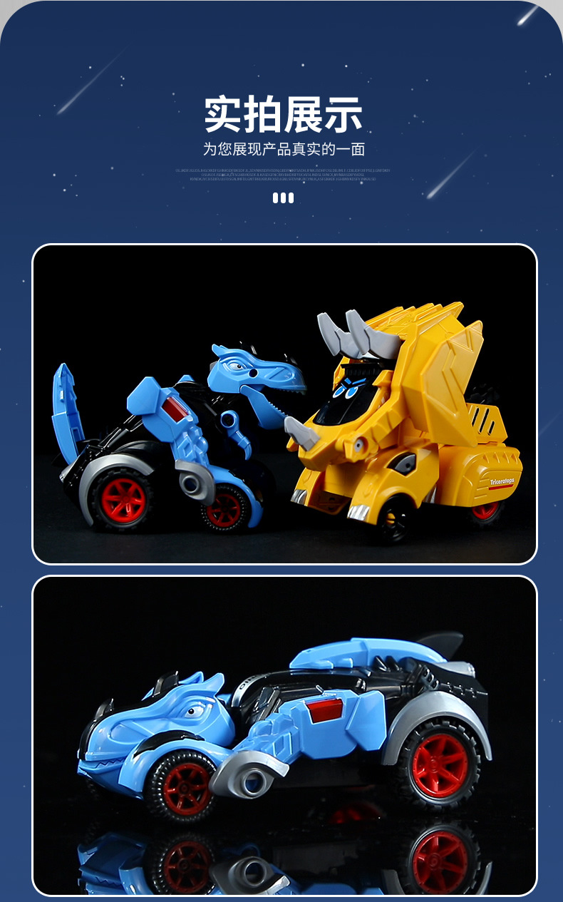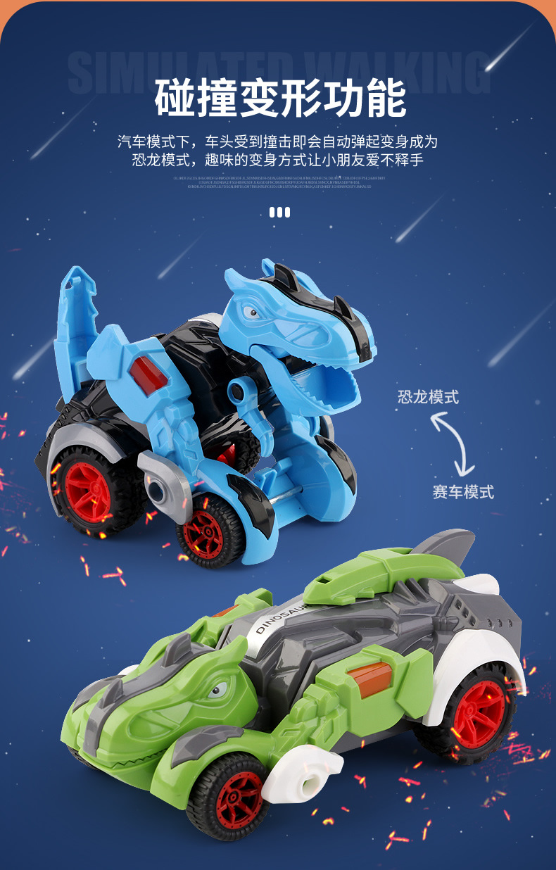 관성 변형 공룡 장난감 자동차 모델 충돌 변형 삼각형 티라노사우루스 렉스 전차 어린이 소년 장난감스토어 가기