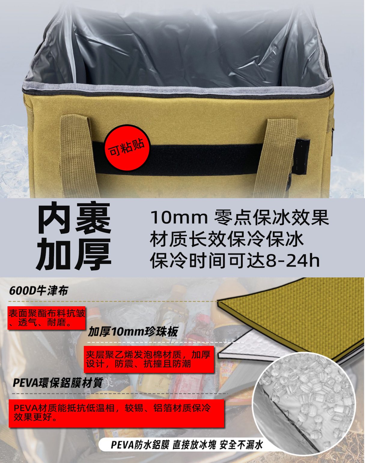 국경 간 아마존 절연 가방 야외 캠핑 피크닉 대용량 식품 보존 냉장 42L 절연 아이스 백