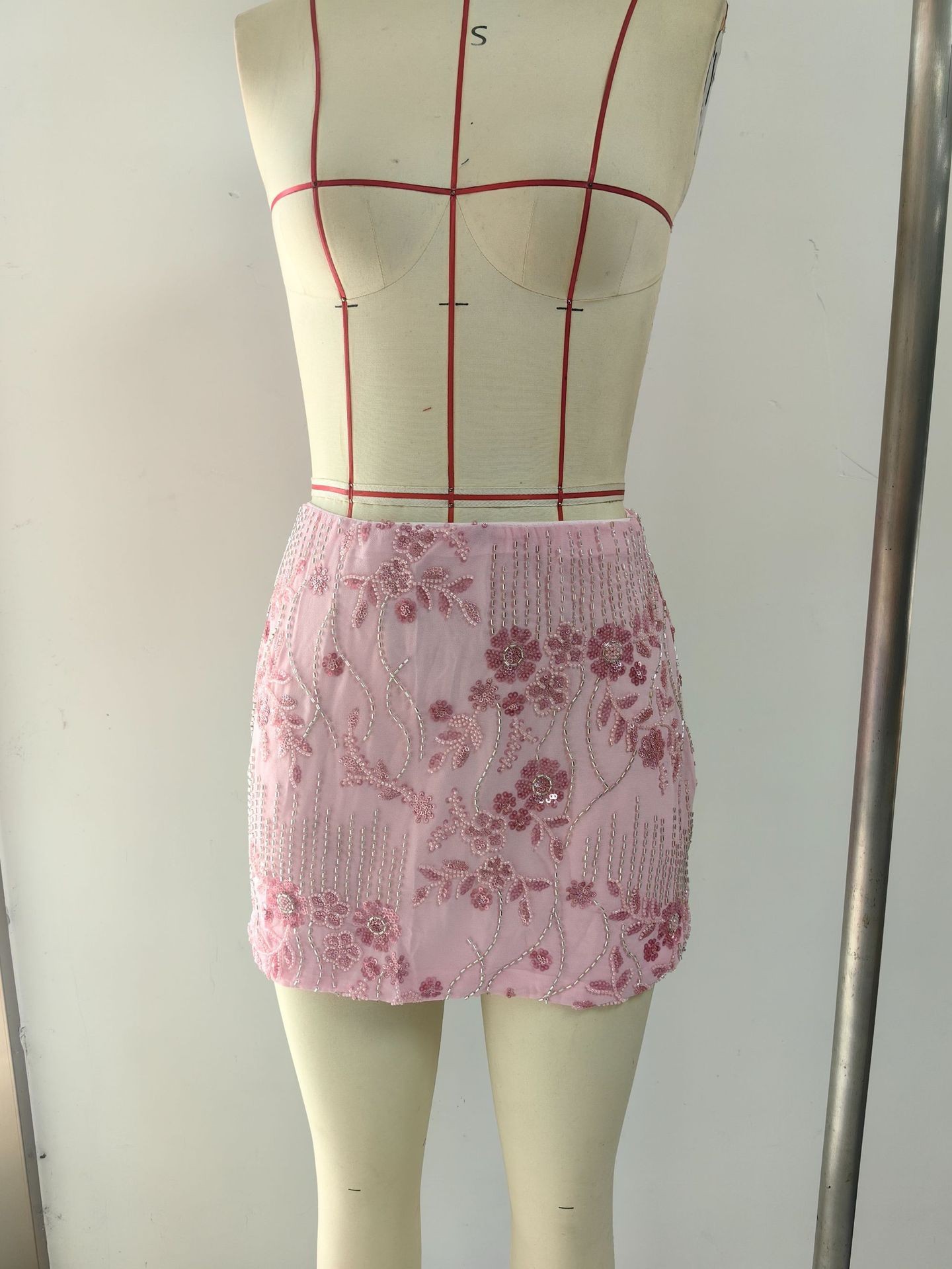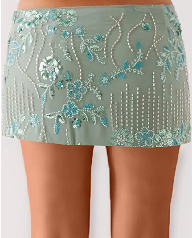 2025 유럽과 미국의 국경 간 새로운 스타일 Amazon 베스트셀러 자수 스팽글 스커트 섹시한 핫 소녀 엉덩이 커버 여성용 미니 스커트