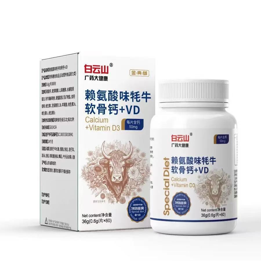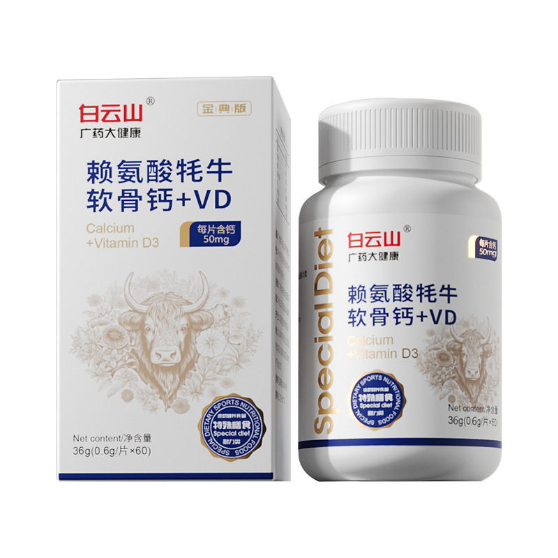 소스 제조업체는 청소년, 어린이, 성인 및 노인 무릎을 위한 라이신 야크 연골 칼슘 + VD를 배송합니다.스토어 가기