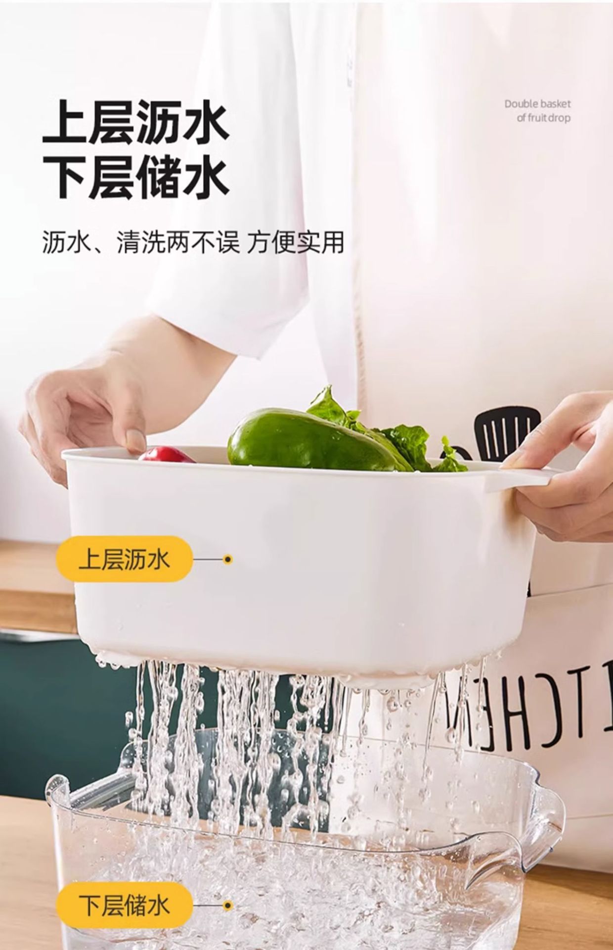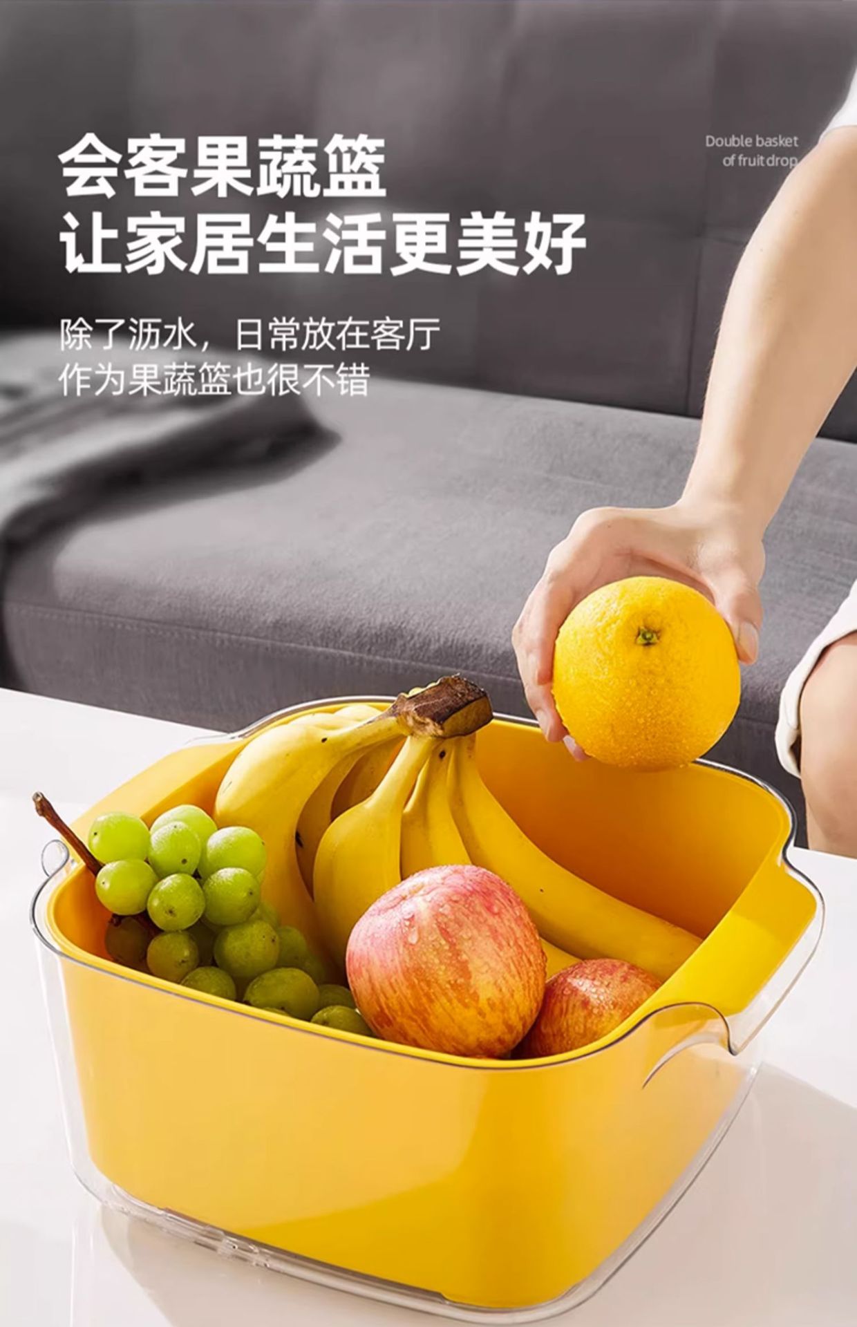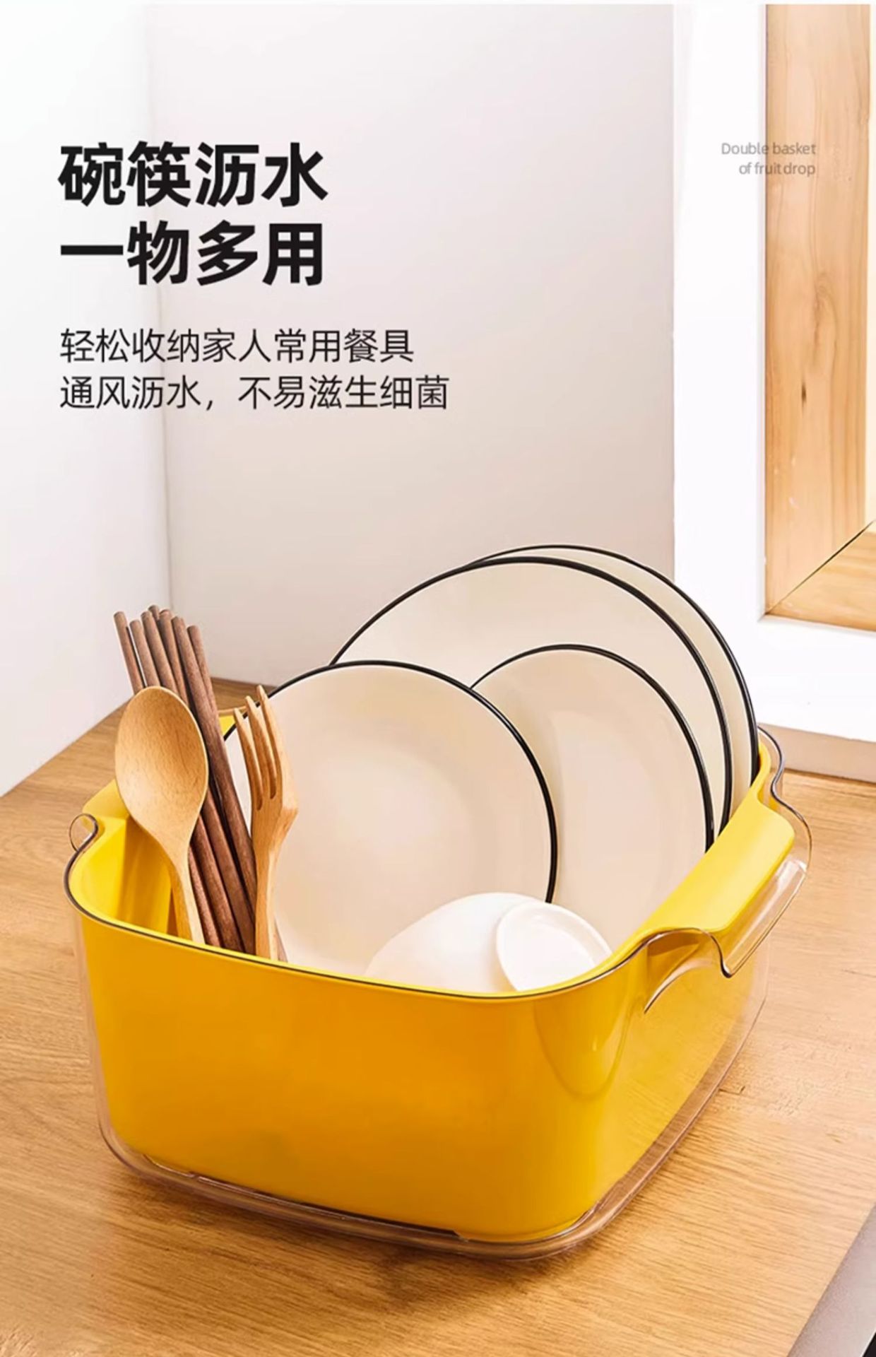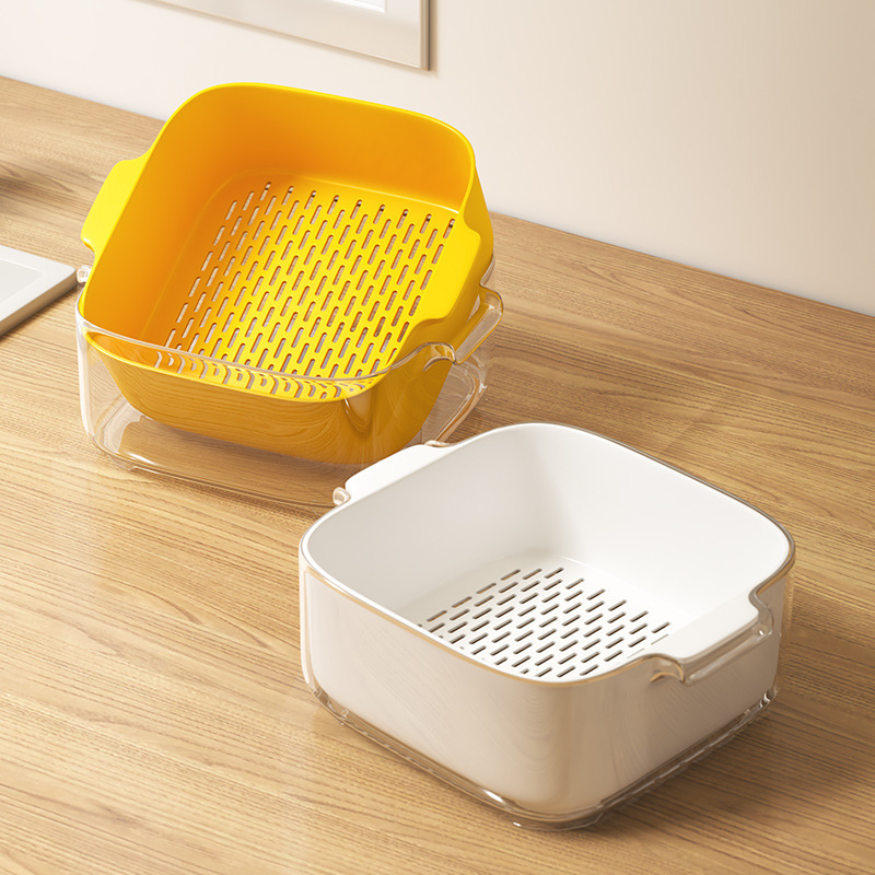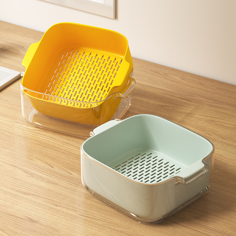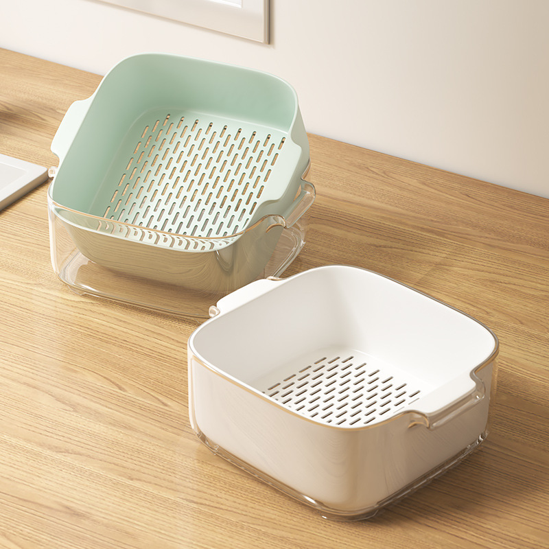 다기능 주방 가정용 새 과일 접시 거실 세척 바구니 더블 레이어 세척 바구니 배수 바구니 8 피스 세트스토어 가기
