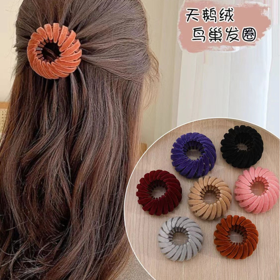 새로운 다재다능한 반짝이는 벨벳 새둥지 게으른 머리끈, 하이 포니테일 볼 헤드 고정 헤어 액세서리스토어 가기