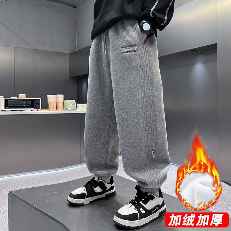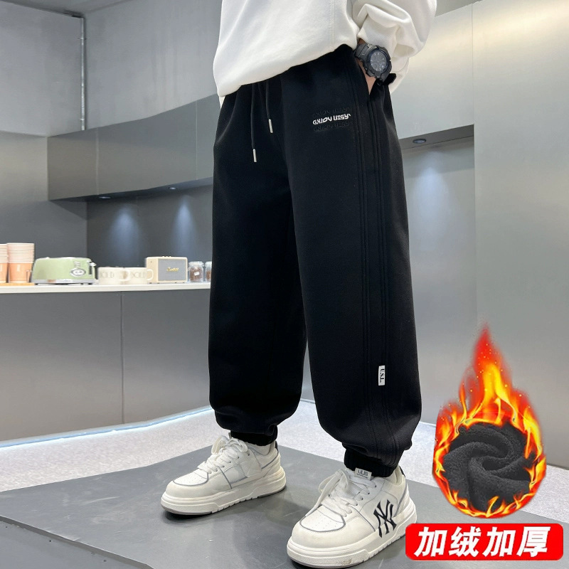 童装男童卫裤秋冬潮牌高街儿童百搭休闲裤少年直筒运动加绒阔腿裤스토어 가기