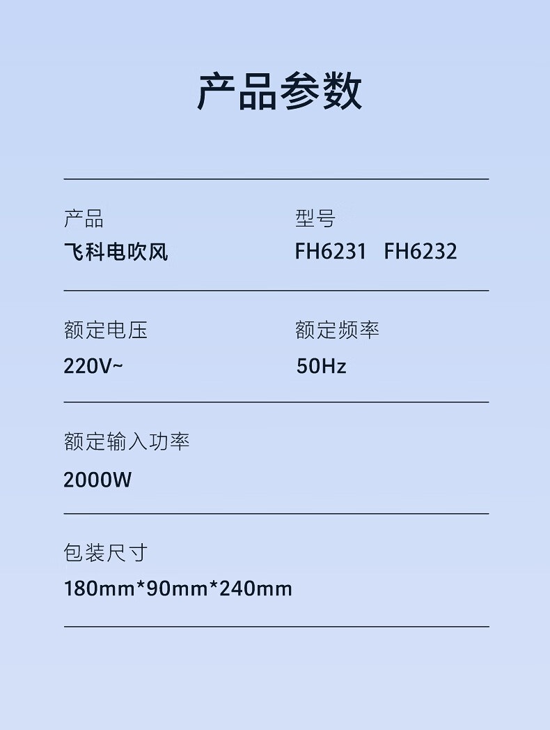 Feike 헤어드라이어 가정용 휴대용 2000w 냉온풍 헤어케어 속건 헤어드라이어 FH6231/FH6232