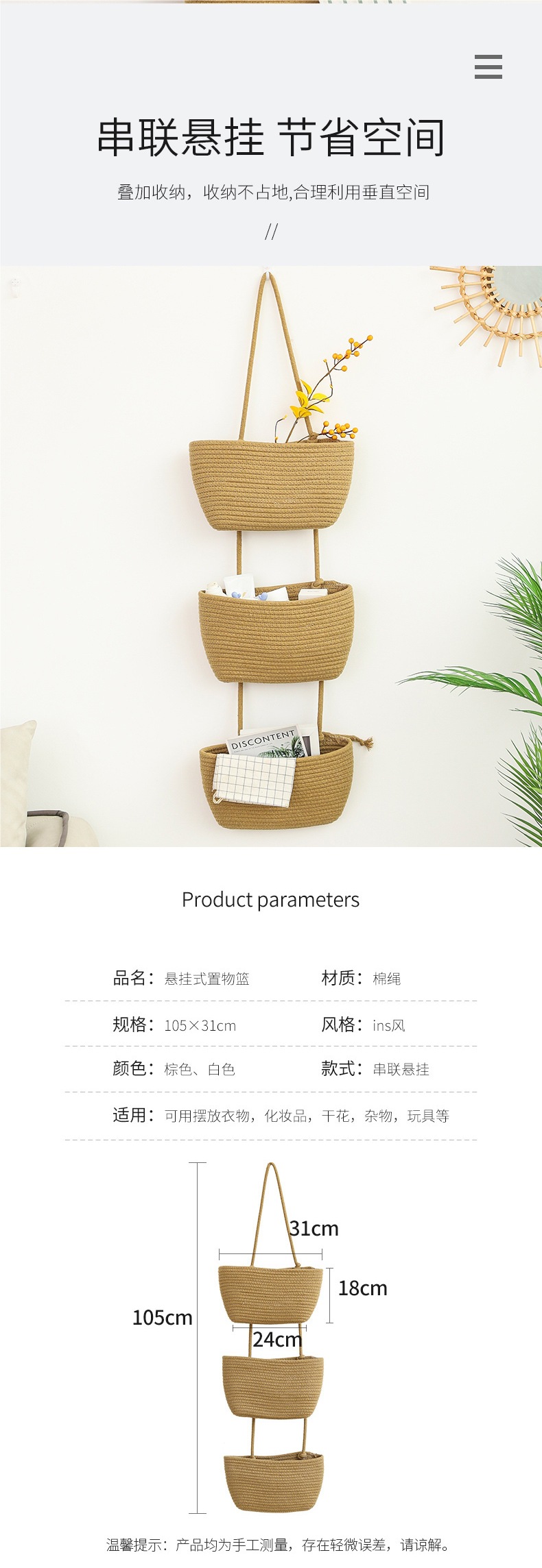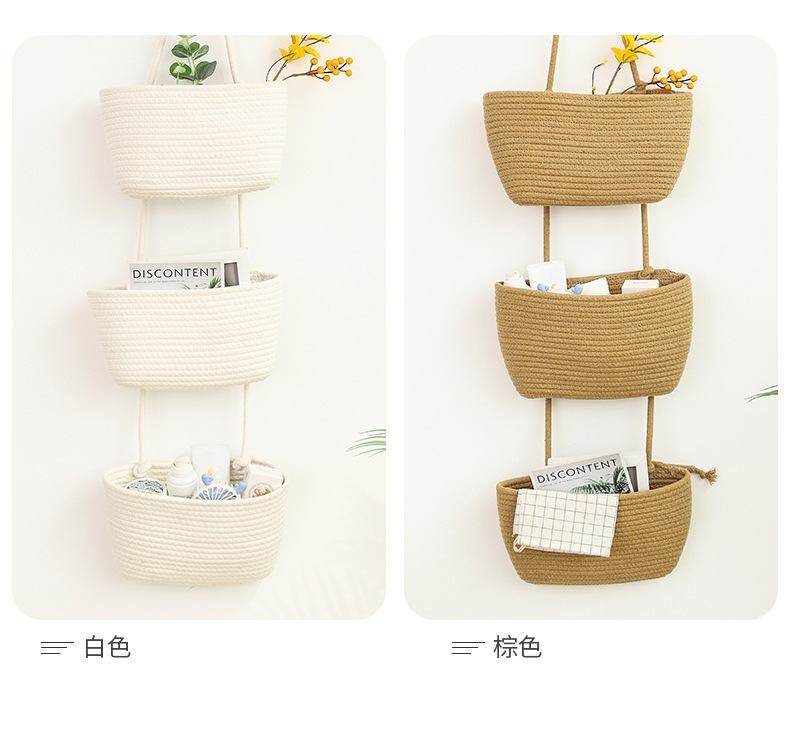 잡화 정리를 위한 가정용 벽걸이형 수납바구니, 3단 걸이바구니, 벽걸이형 짠바구니, 수제 정리바구니