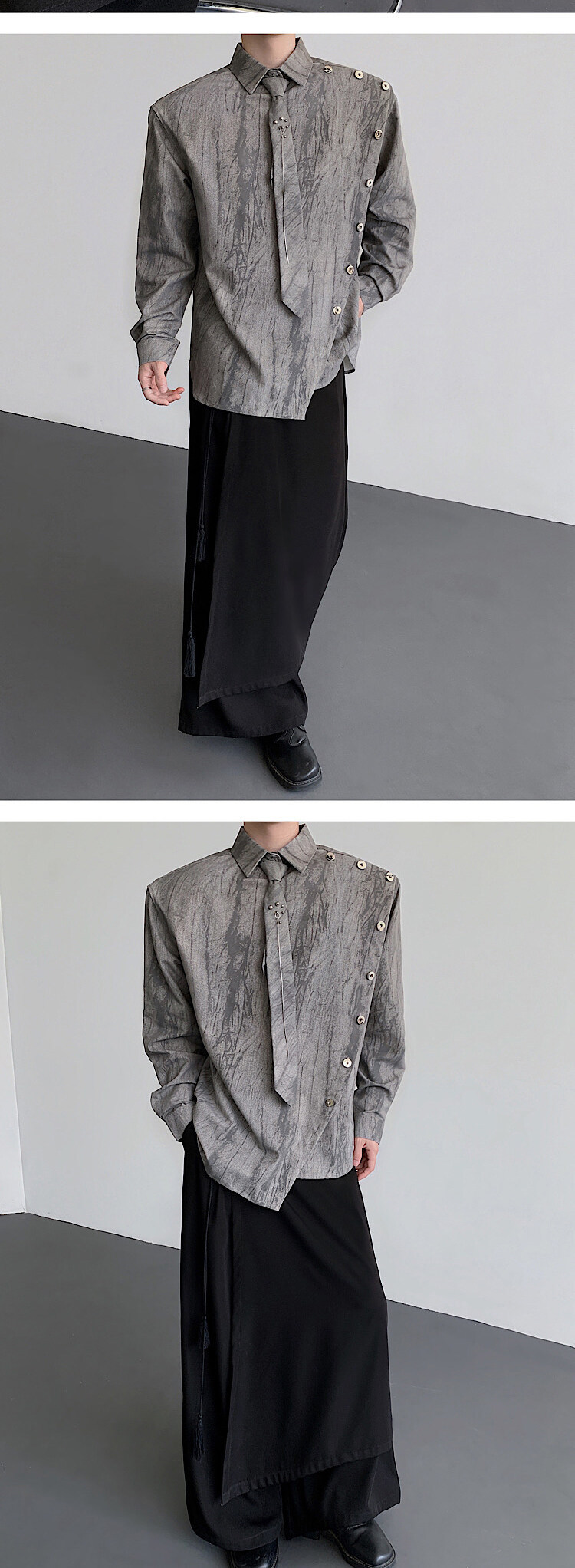 Sven Yipu 메탈 체인 타이 어깨 패드 셔츠 긴팔 남성 초가을 새로운 얼룩진 루즈 실루엣 탑스토어 가기
