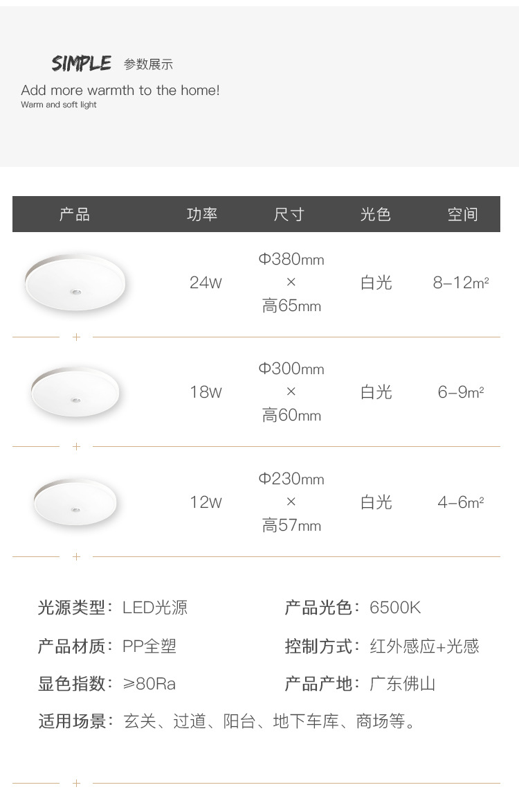 • Yubo丨인체 센서丨24W 백색광; 센서 조명; 백색광