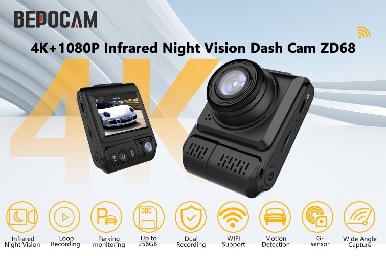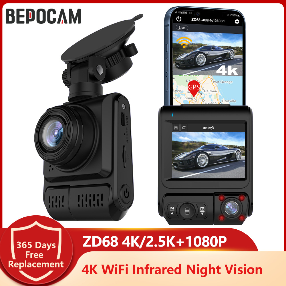 BEPOCAM ZD68 4K Dash Cam Infrared Night Vision Car DVR WiFi External GPS 2.5K+1080P Dashcam Vehicle Android Auto Video Recorder Front+Cabin Camera