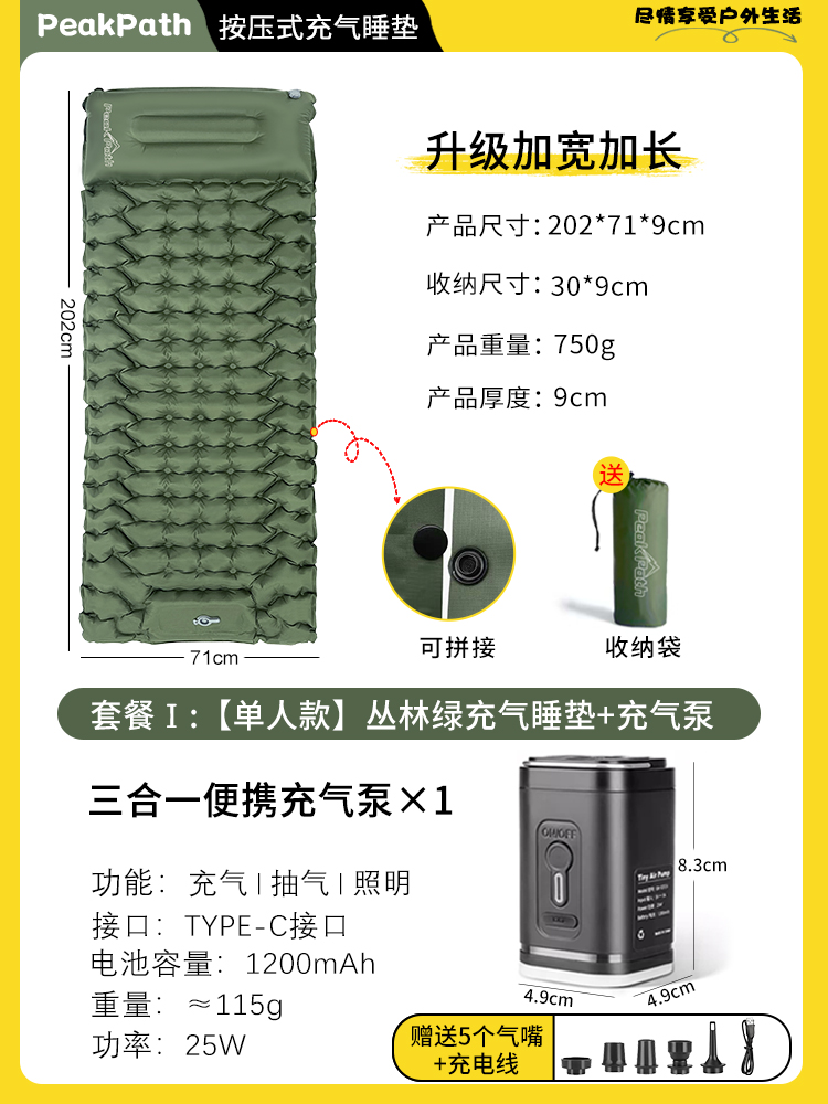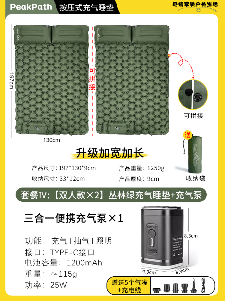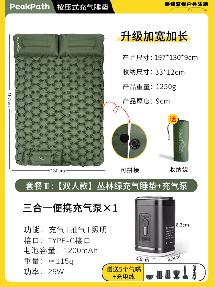 • 업그레이드 및 두꺼워진 9CM [더블 모델]*2+ 전동 펌프 정글 그린