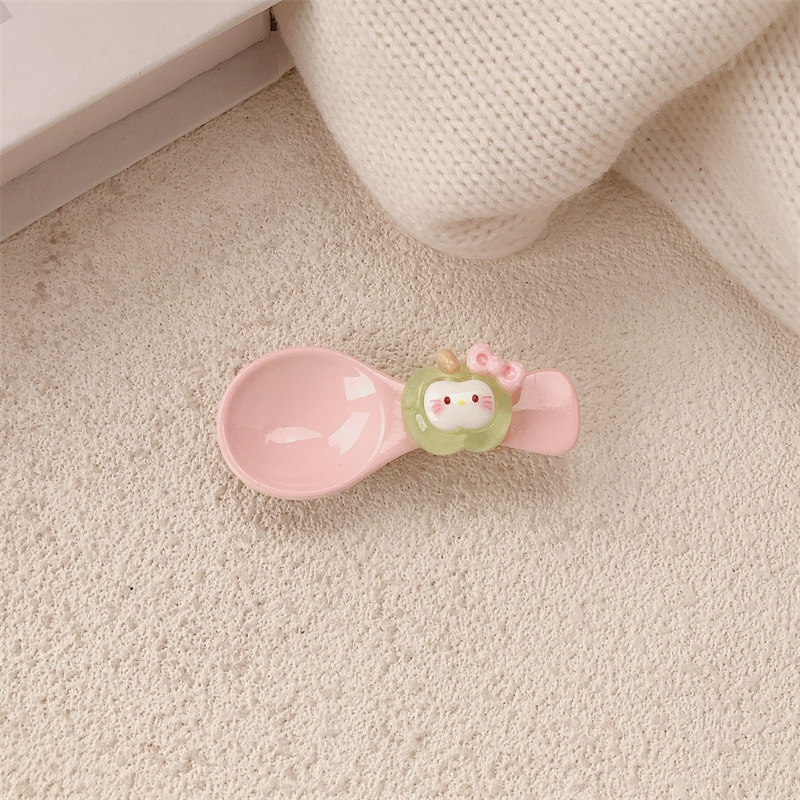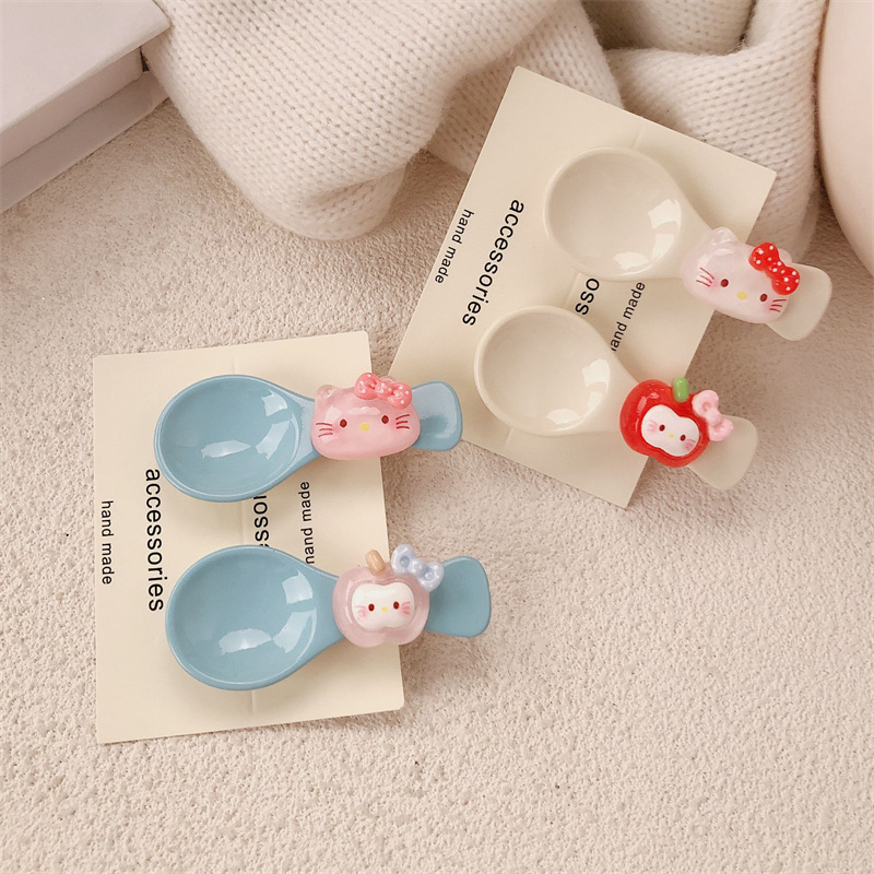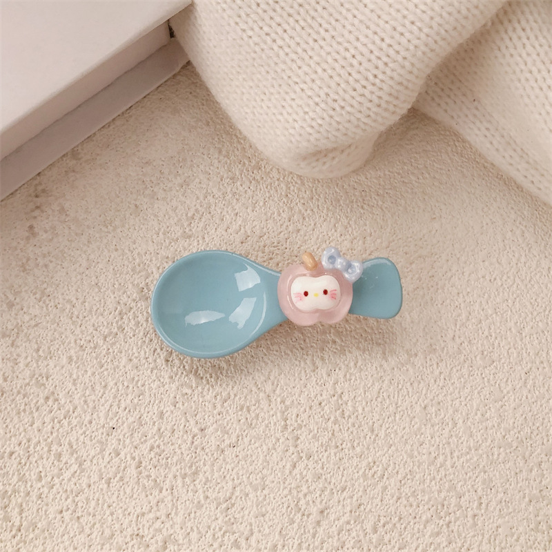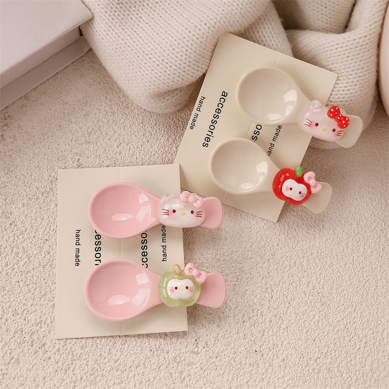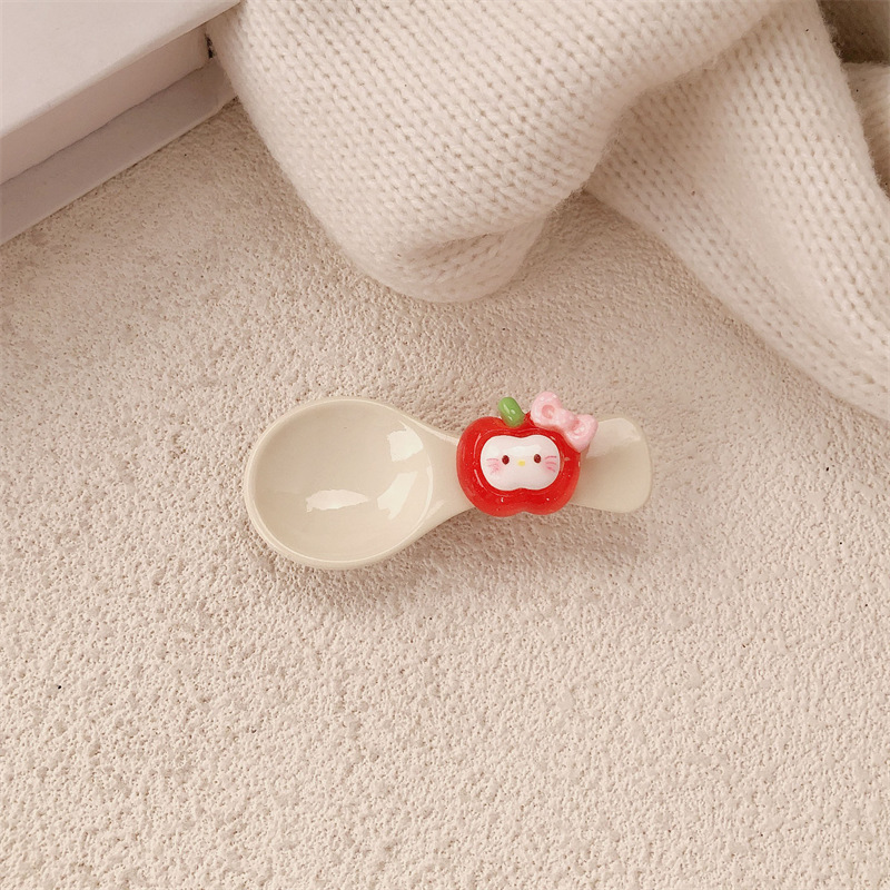 창의적이고 귀여운 새끼 고양이 사과 스푼 오리 부리 머리핀 달콤한 소녀 하트 앞머리 사이드 클립 머리핀 헤어 액세서리