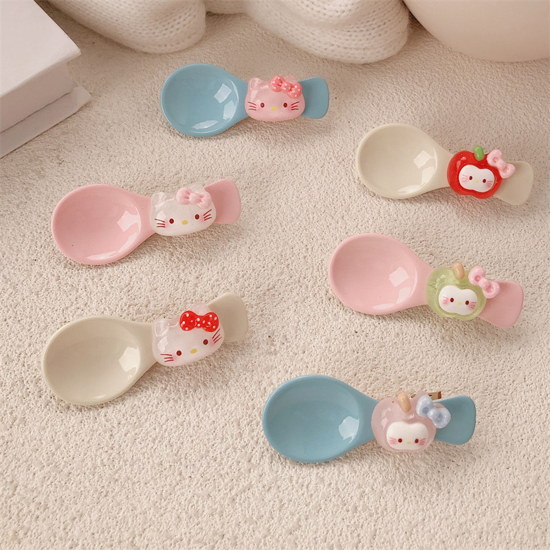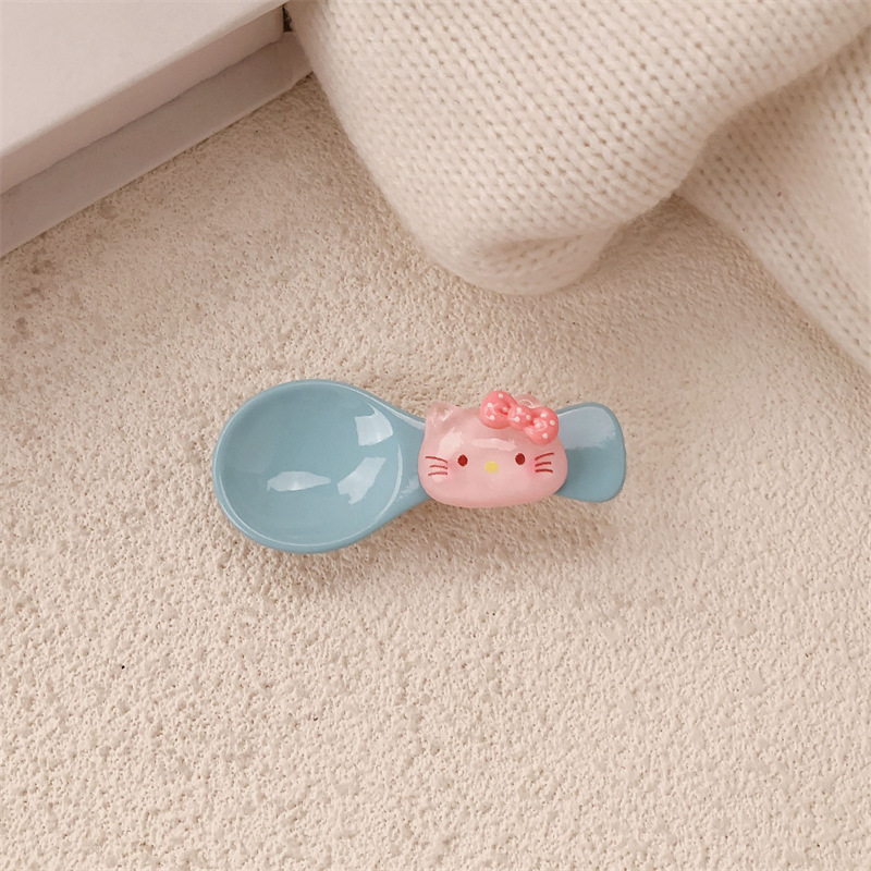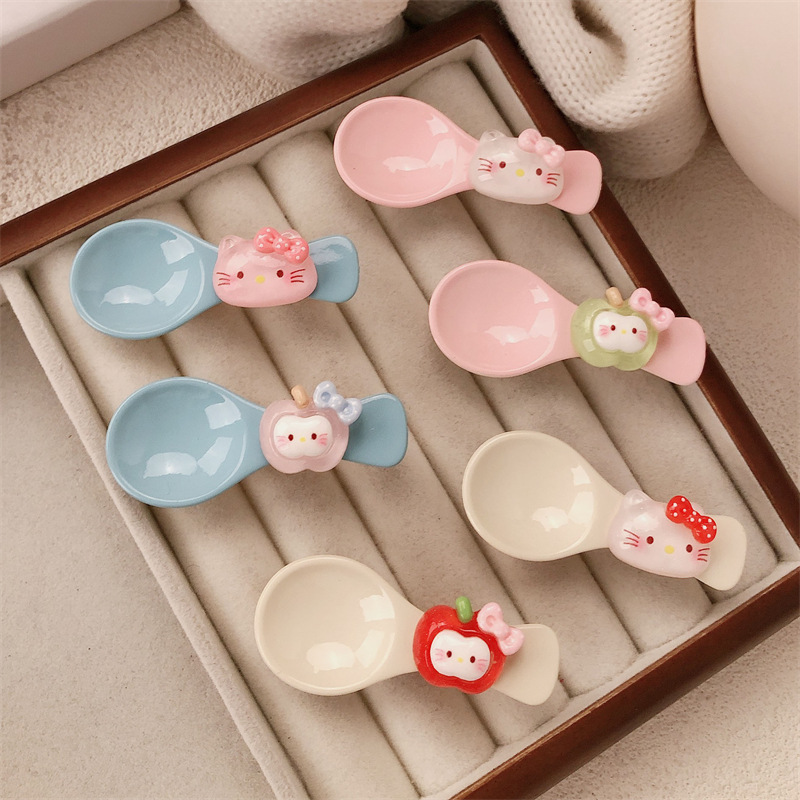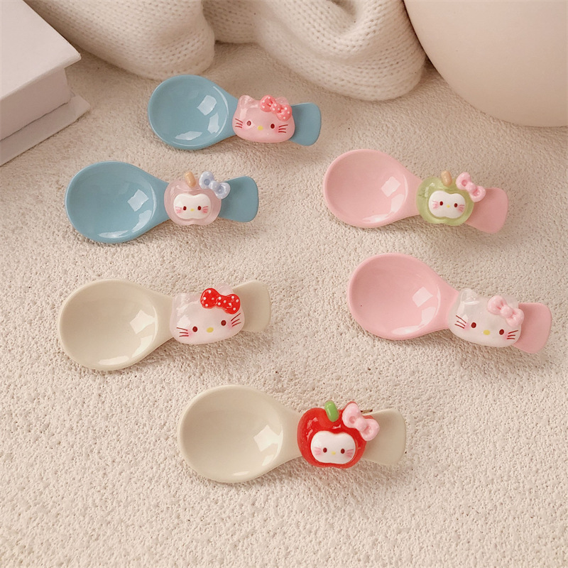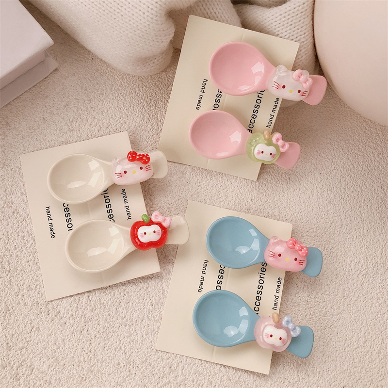 창의적이고 귀여운 새끼 고양이 사과 스푼 오리 부리 머리핀 달콤한 소녀 하트 앞머리 사이드 클립 머리핀 헤어 액세서리