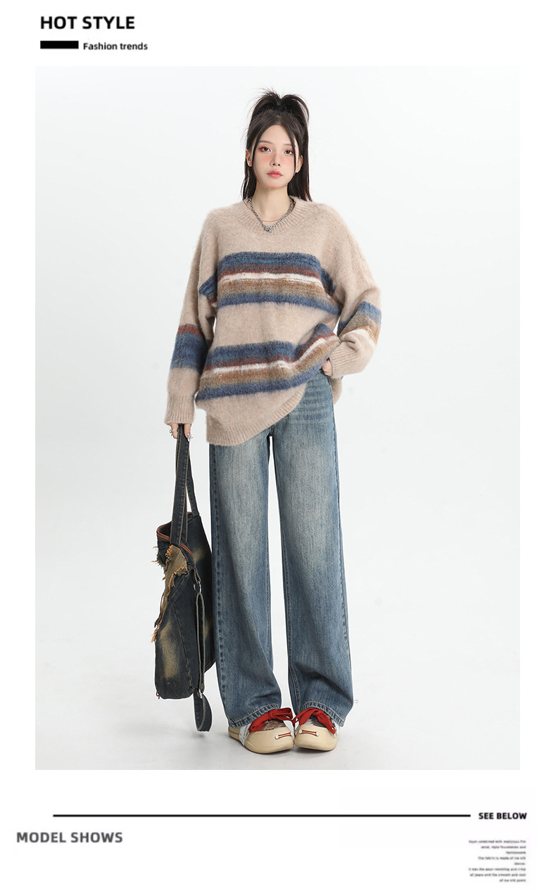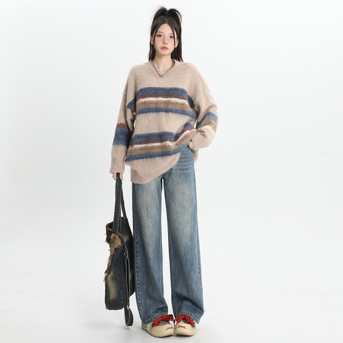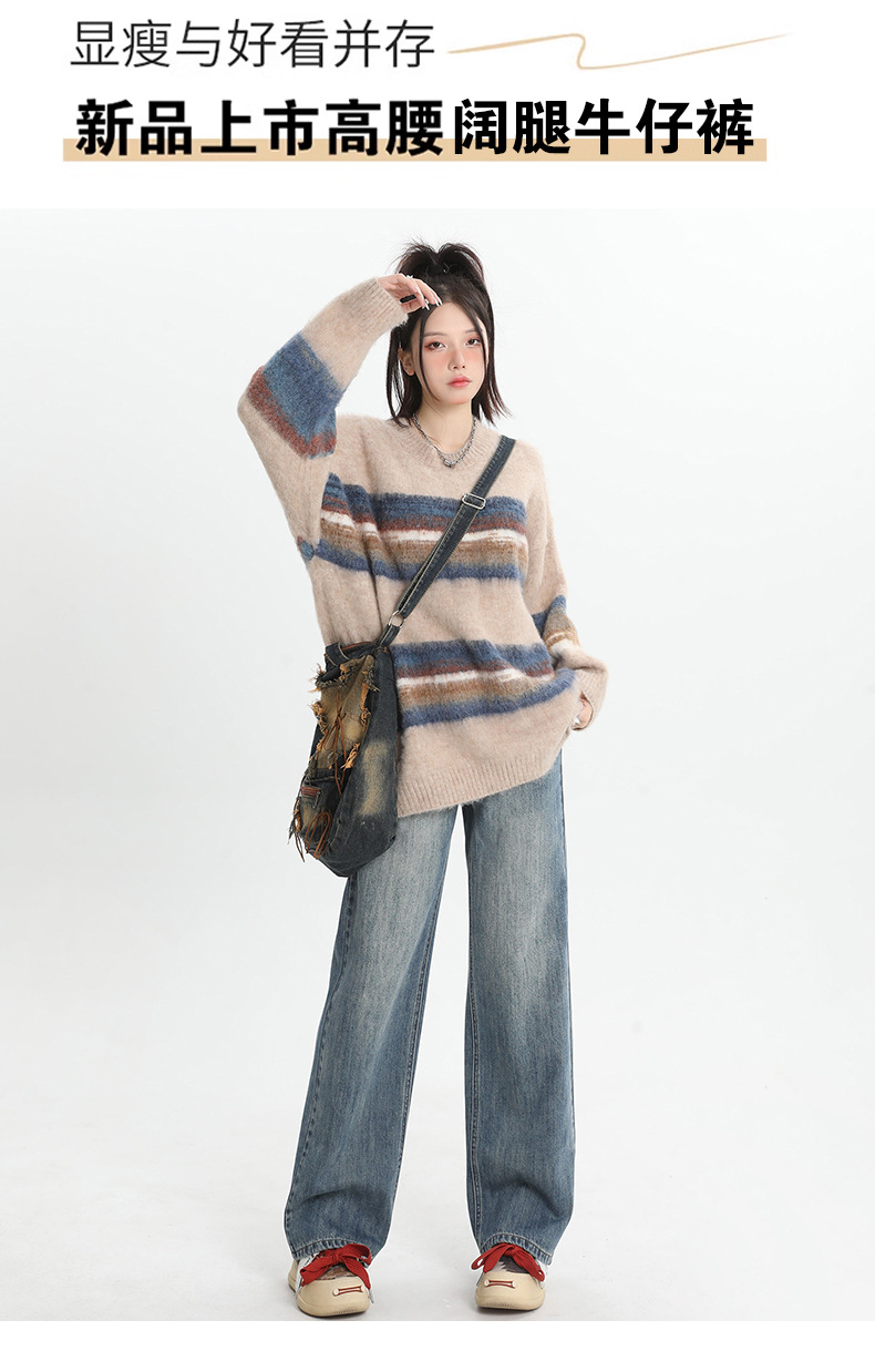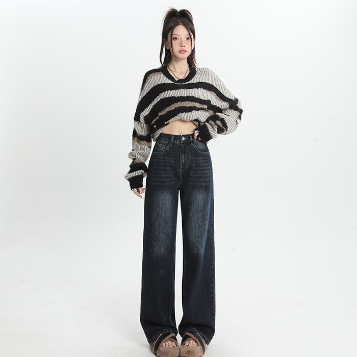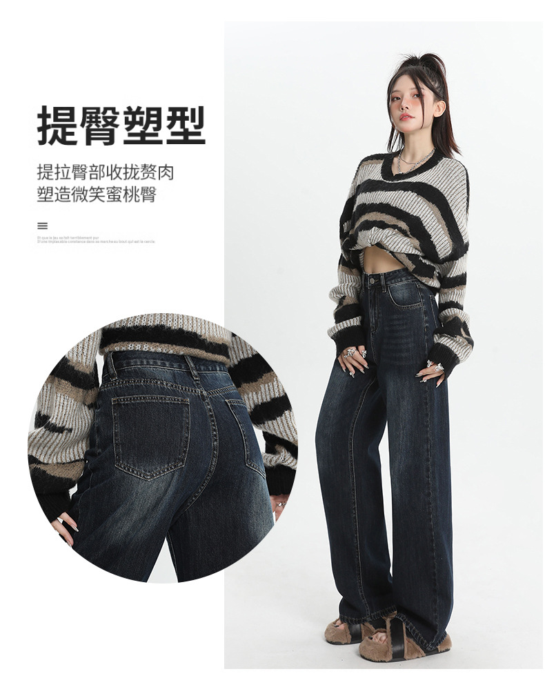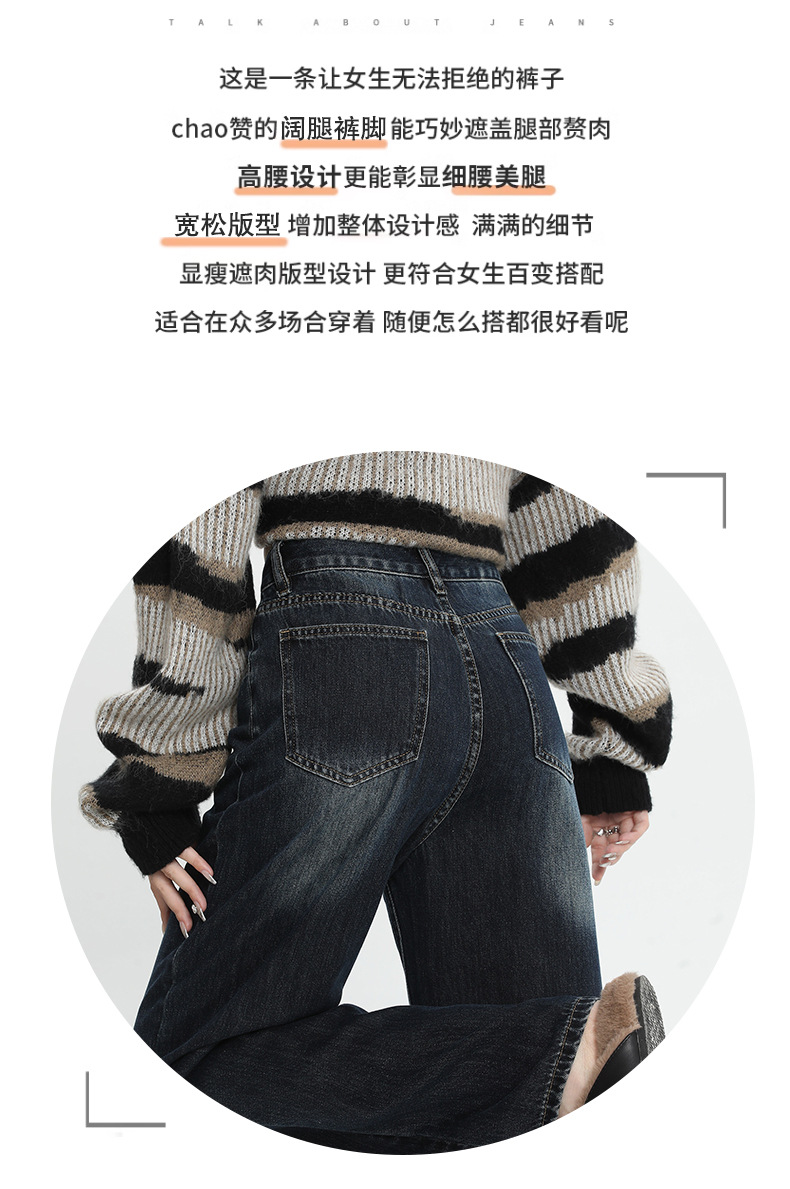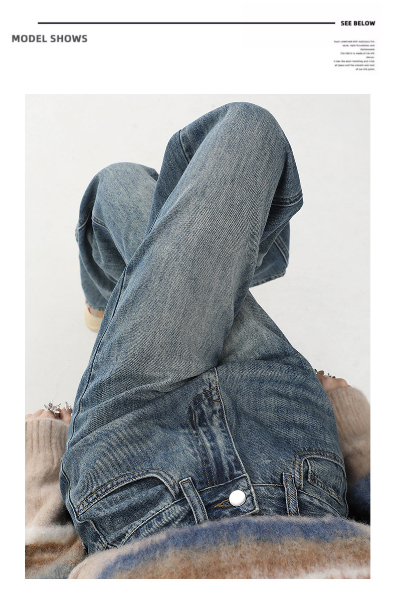 여성용 4색 와이드 레그 청바지, 가을 겨울 미국 복고풍 소형 하이 웨이스트 루즈 드래그 여성용 바지스토어 가기