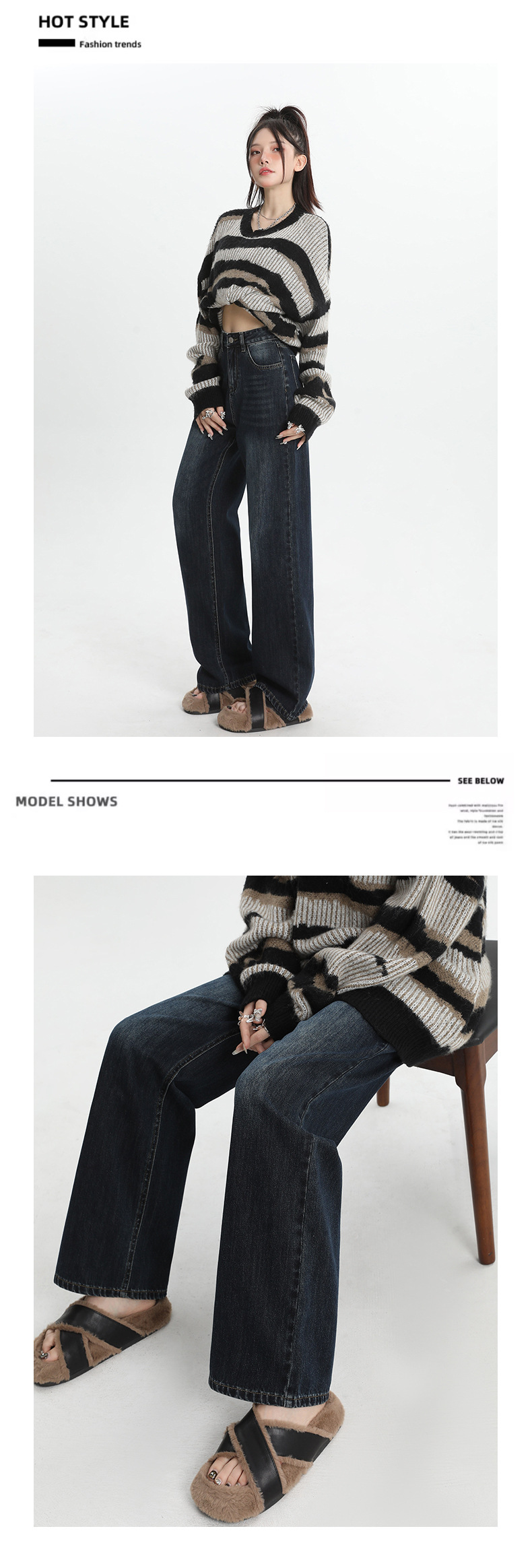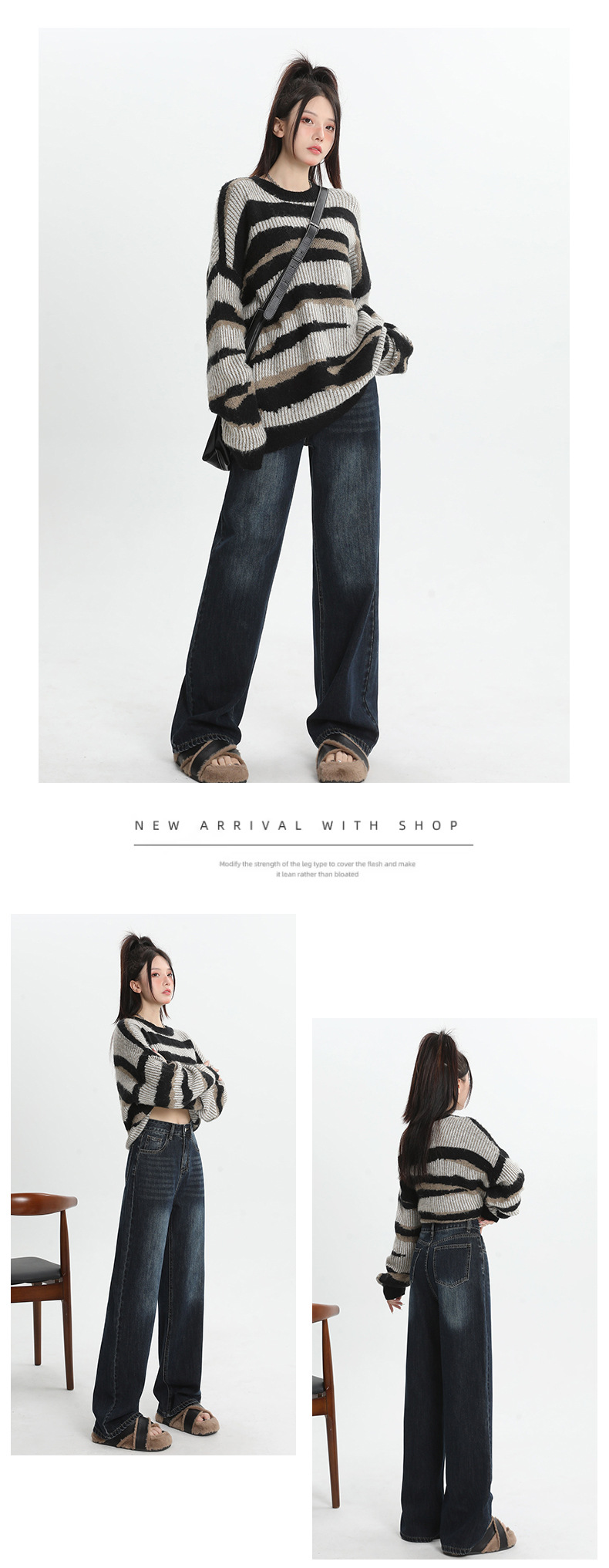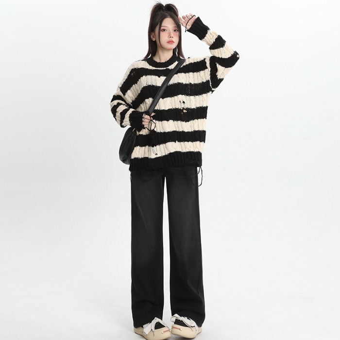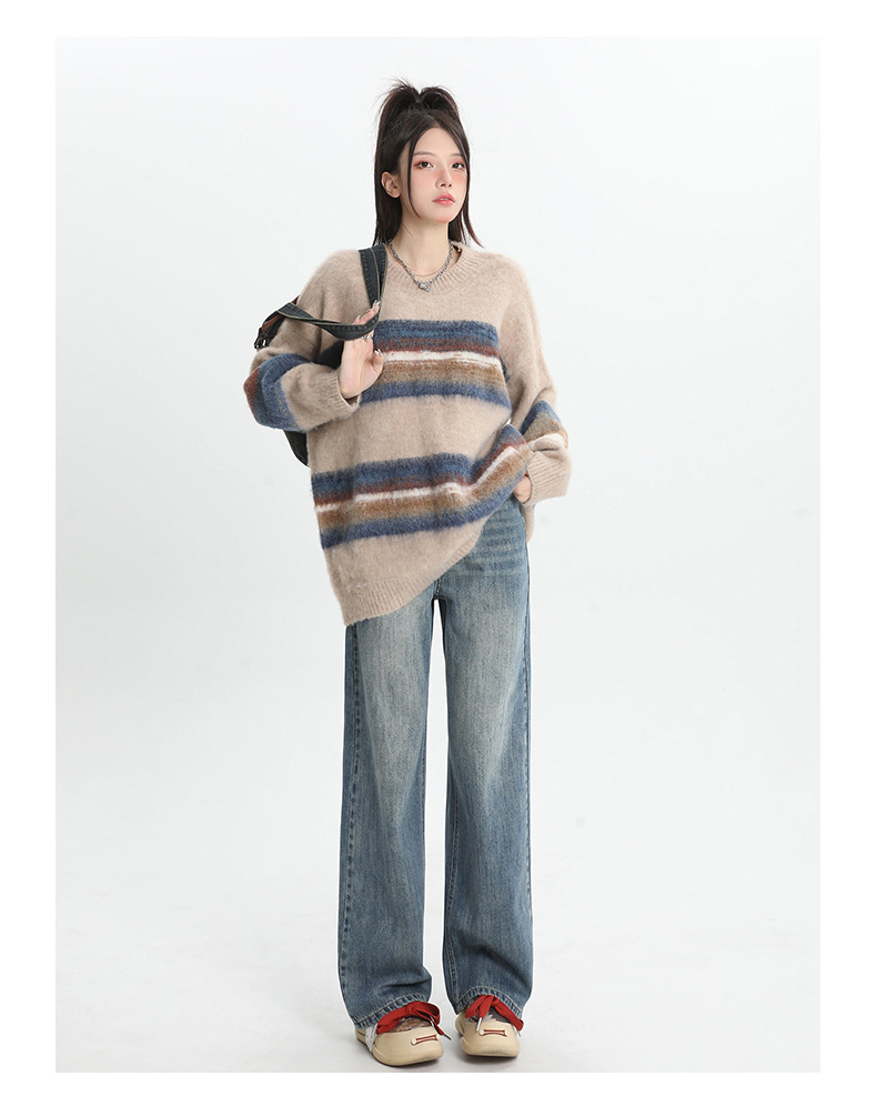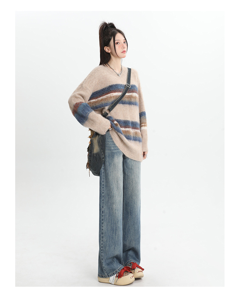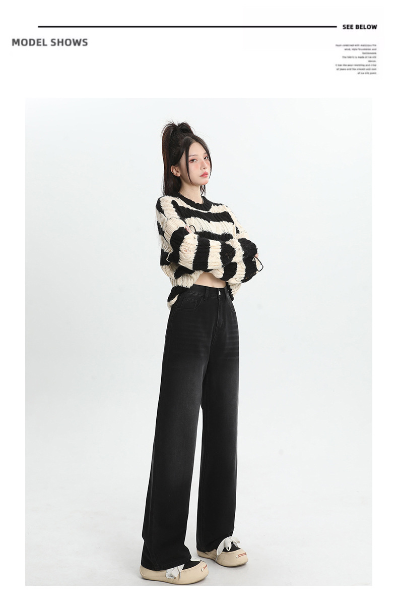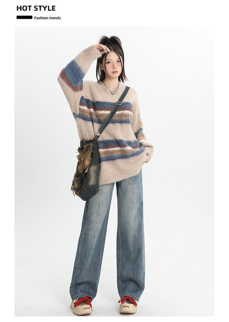 여성용 4색 와이드 레그 청바지, 가을 겨울 미국 복고풍 소형 하이 웨이스트 루즈 드래그 여성용 바지스토어 가기