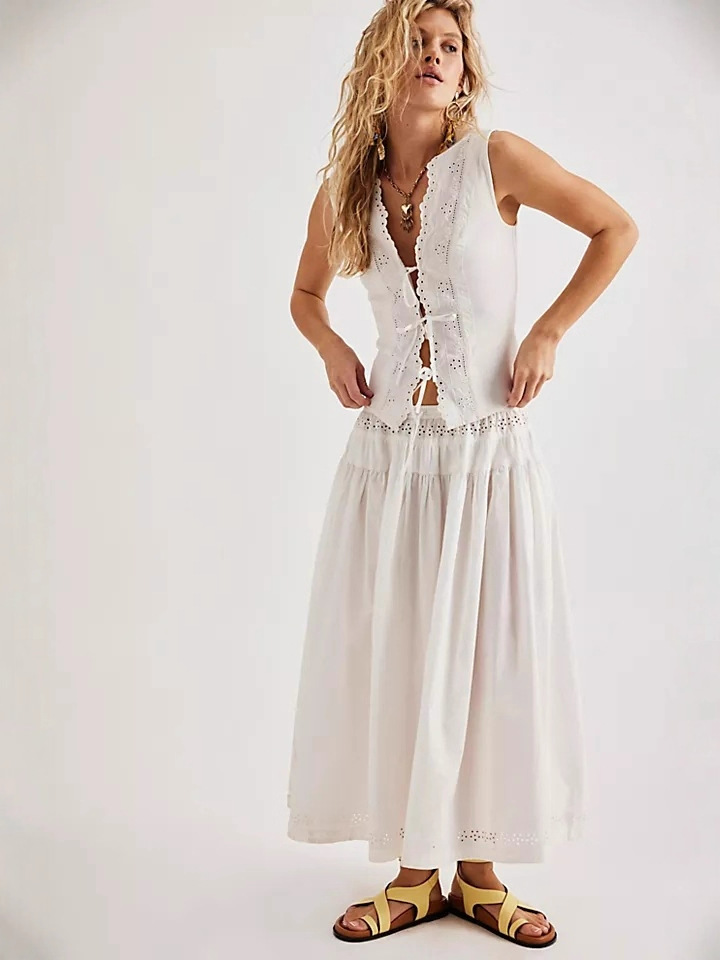 2025 여름 유럽과 미국의 새로운 고급 질감 틈새 디자인 중공 리조트 스타일 투피스 여성 레이스 디자인스토어 가기