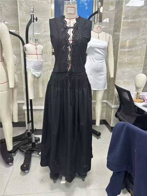 2025 여름 유럽과 미국의 새로운 고급 질감 틈새 디자인 중공 리조트 스타일 투피스 여성 레이스 디자인