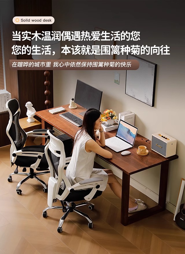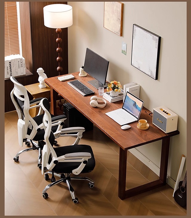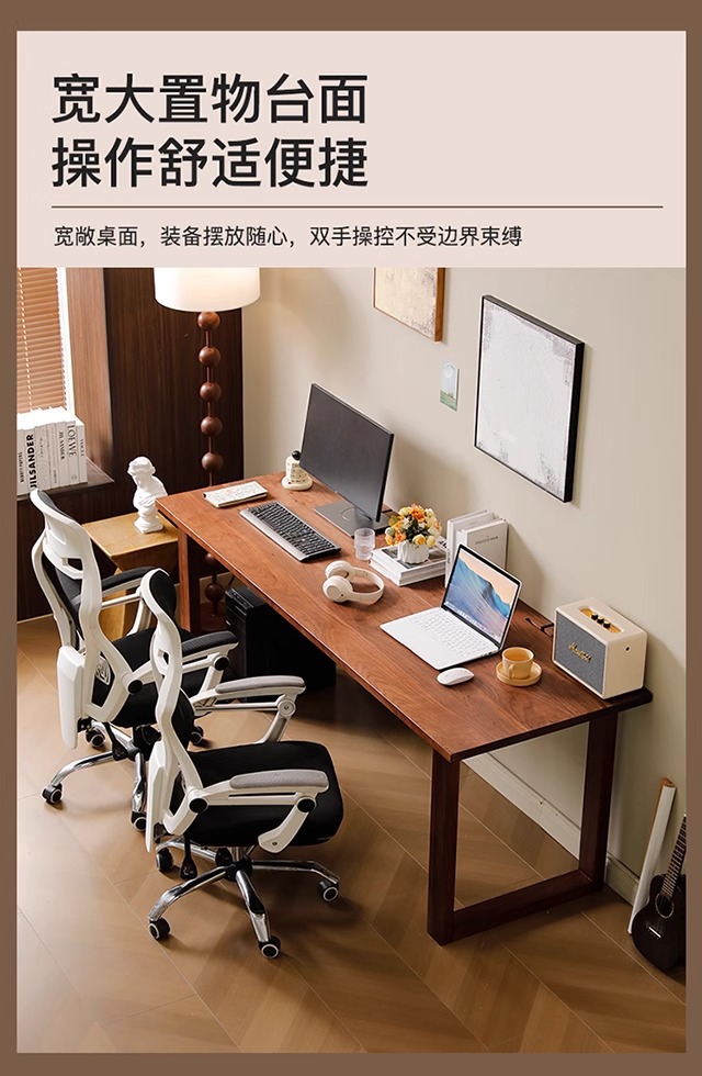북미 FAS 등급 검은 호두 더블 컴퓨터 책상 홈 데스크탑 침실 2인용 책상 간단한 게임 책상스토어 가기