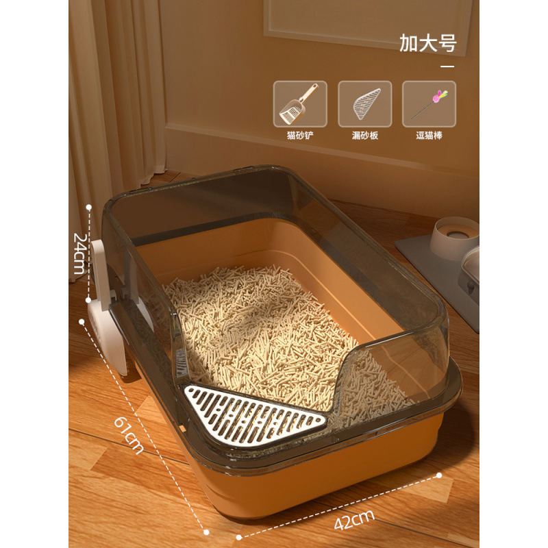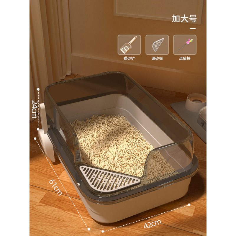 • 풀 오픈형 61CM 빅맥 - 라이트 럭셔리 브라운 [고양이 배변 국자 및 모래 누출판 + 고양이 놀리는 막대기 포함]