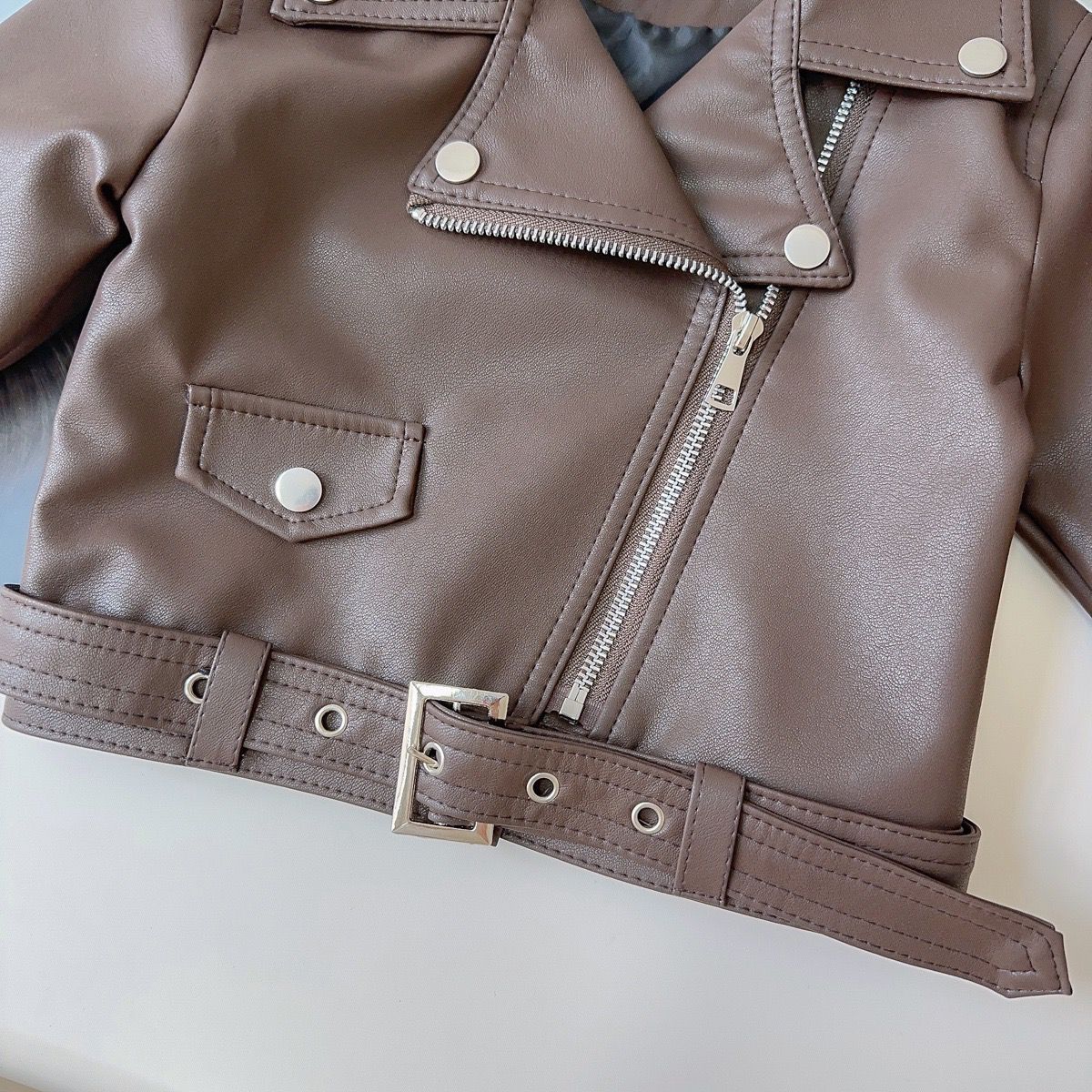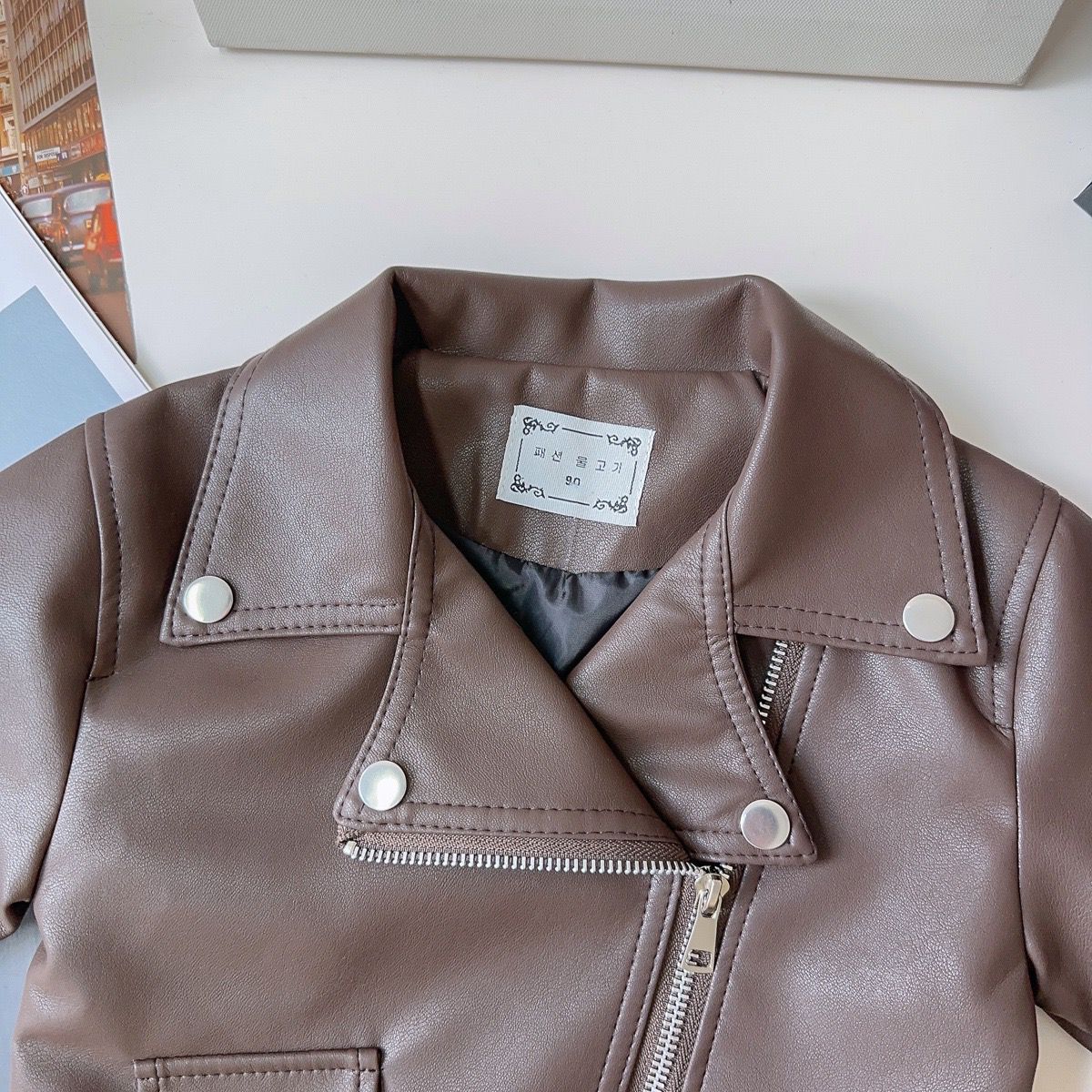 여자 가죽 자켓 2025 봄과 가을 새로운 패션 자켓 아기 소녀 유행 탑 크로스 보더 드롭 배송