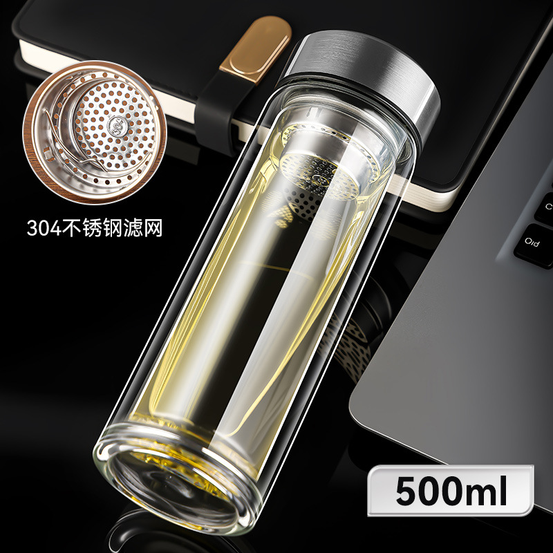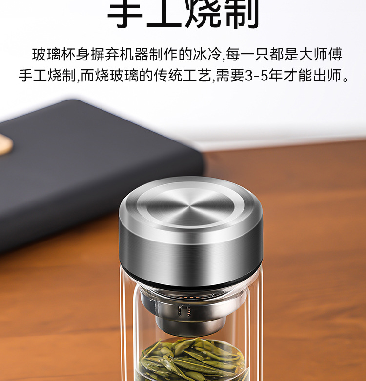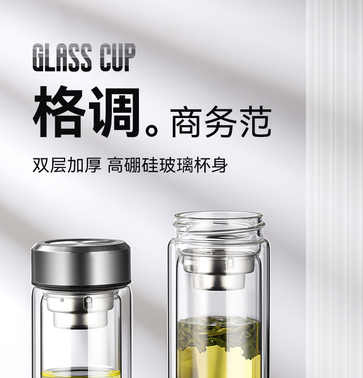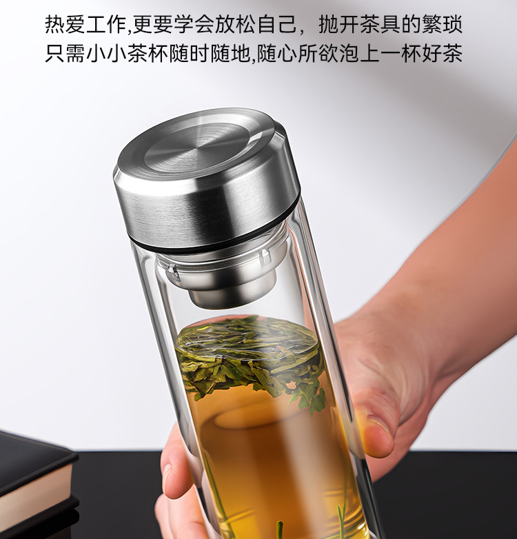 가정용 고온 방지 찻잔, 고급형, 가벼운 고급 차 분리 컵, 고붕규산 이중층 유리 컵, 대용량스토어 가기