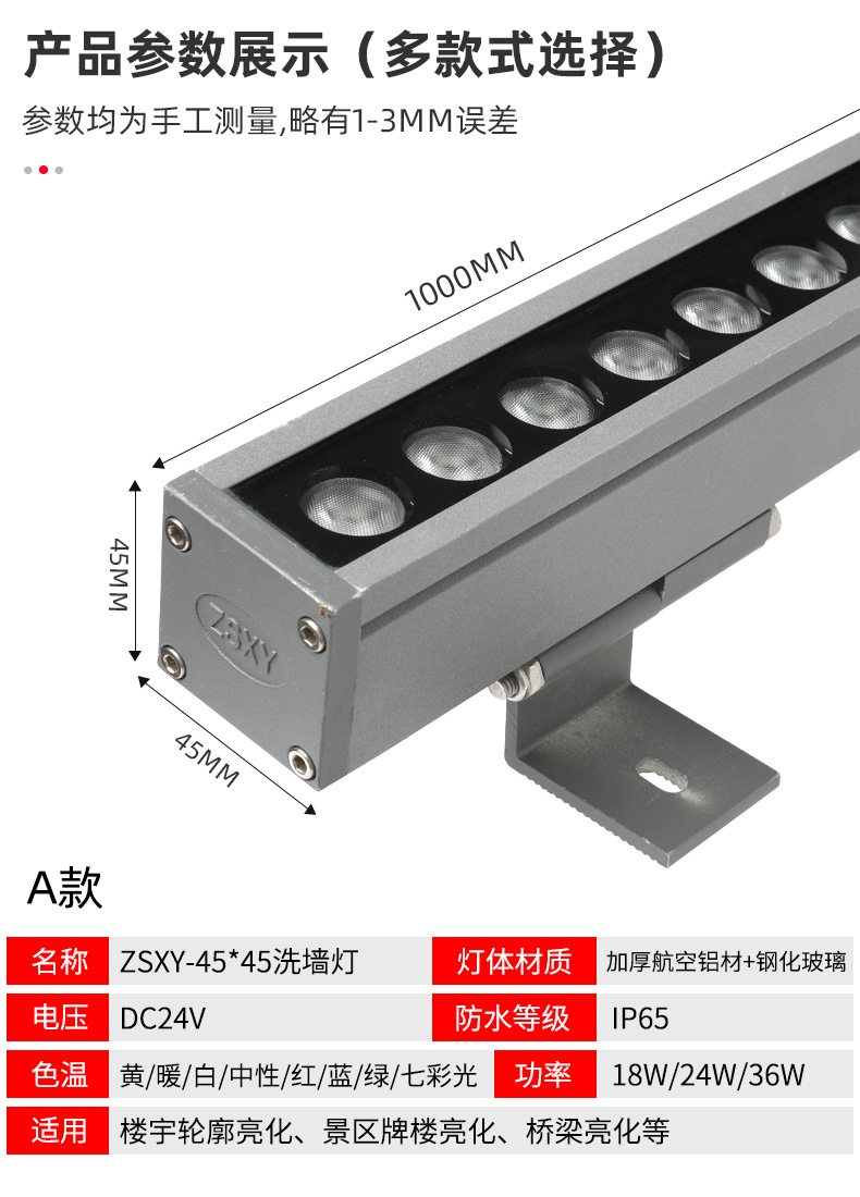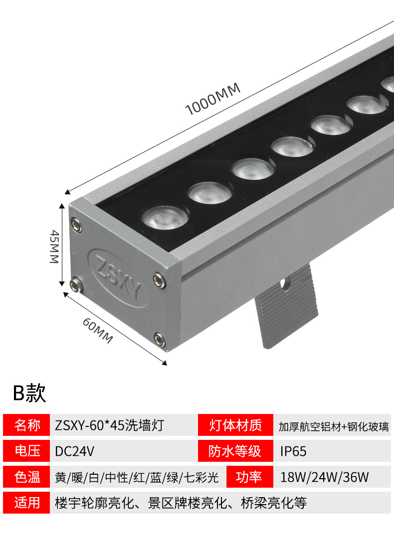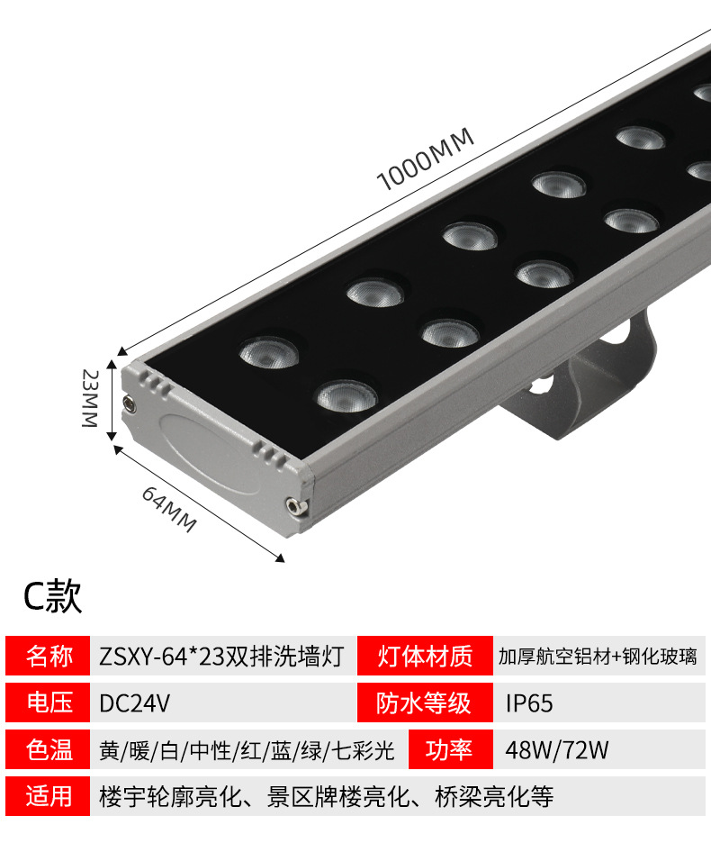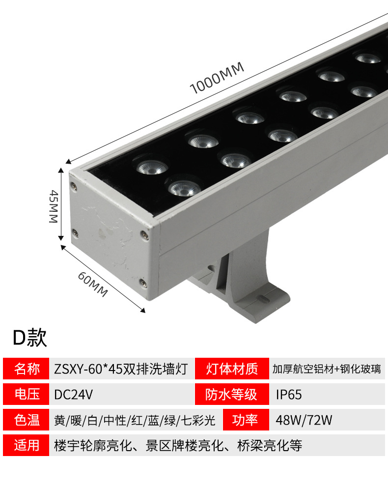 LED 야외 방수 이중 행 벽 세척 램프 제조 업체 도매 24V 라인 램프 외벽 브리지 다채로운 조명 엔지니어링 조명스토어 가기