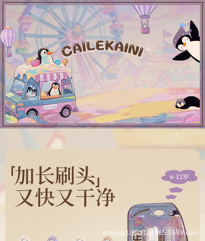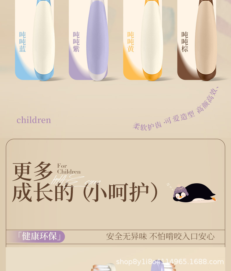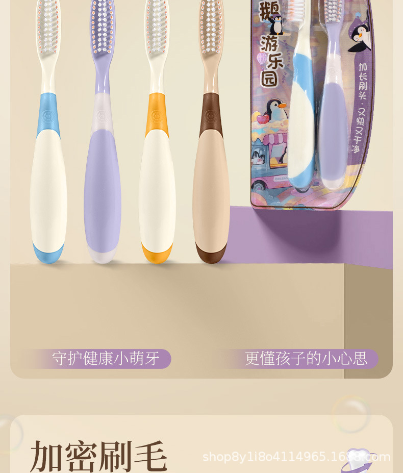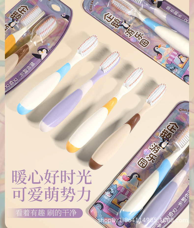 6~12세 이상의 어린이를 위한 펭귄 긴 머리와 큰 머리 어린이 칫솔, 부드러운 강모, 깨끗하고 잇몸을 보호하는 미끄럼 방지 손잡이