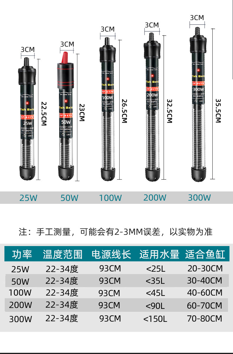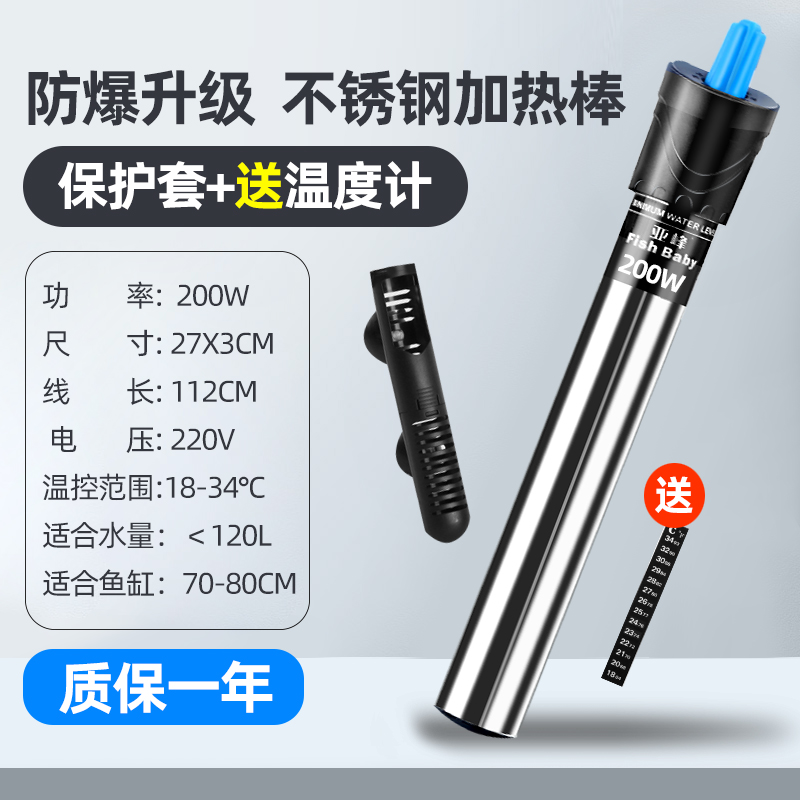가열 막대 수조 자동 항온 가열 막대 가열기 거북이 온도계 히터 소형 스테인레스 스틸 방폭형스토어 가기