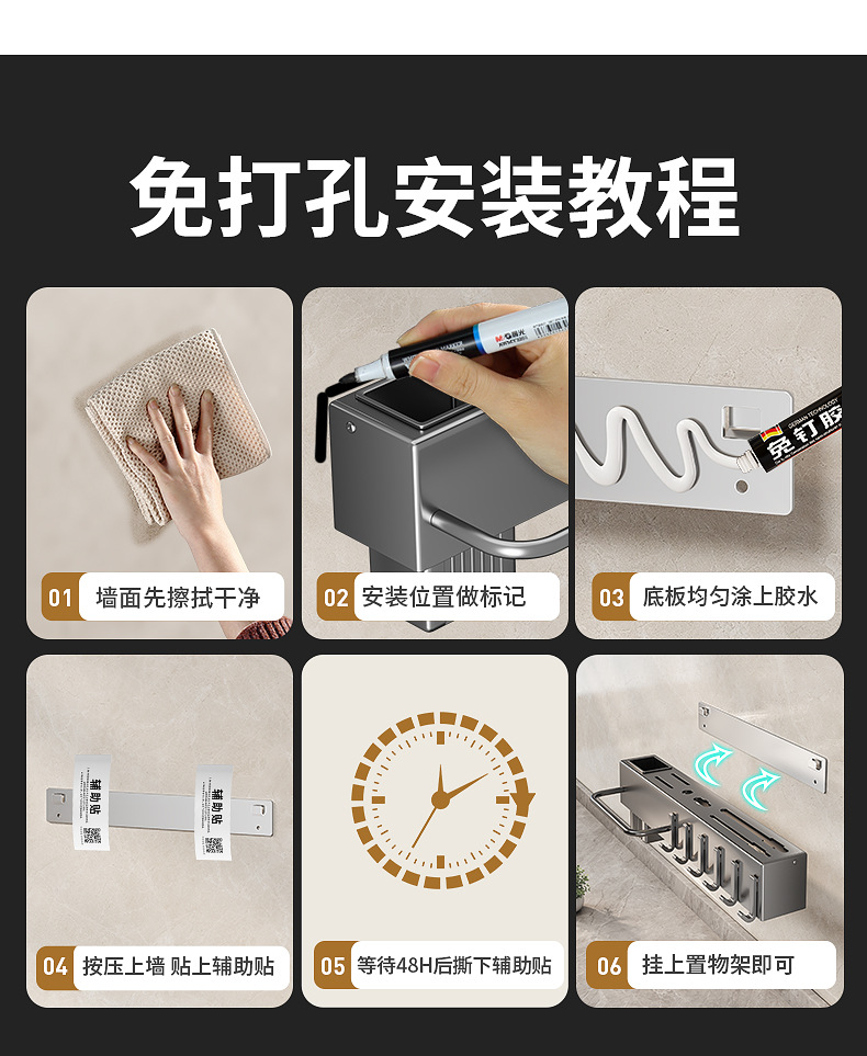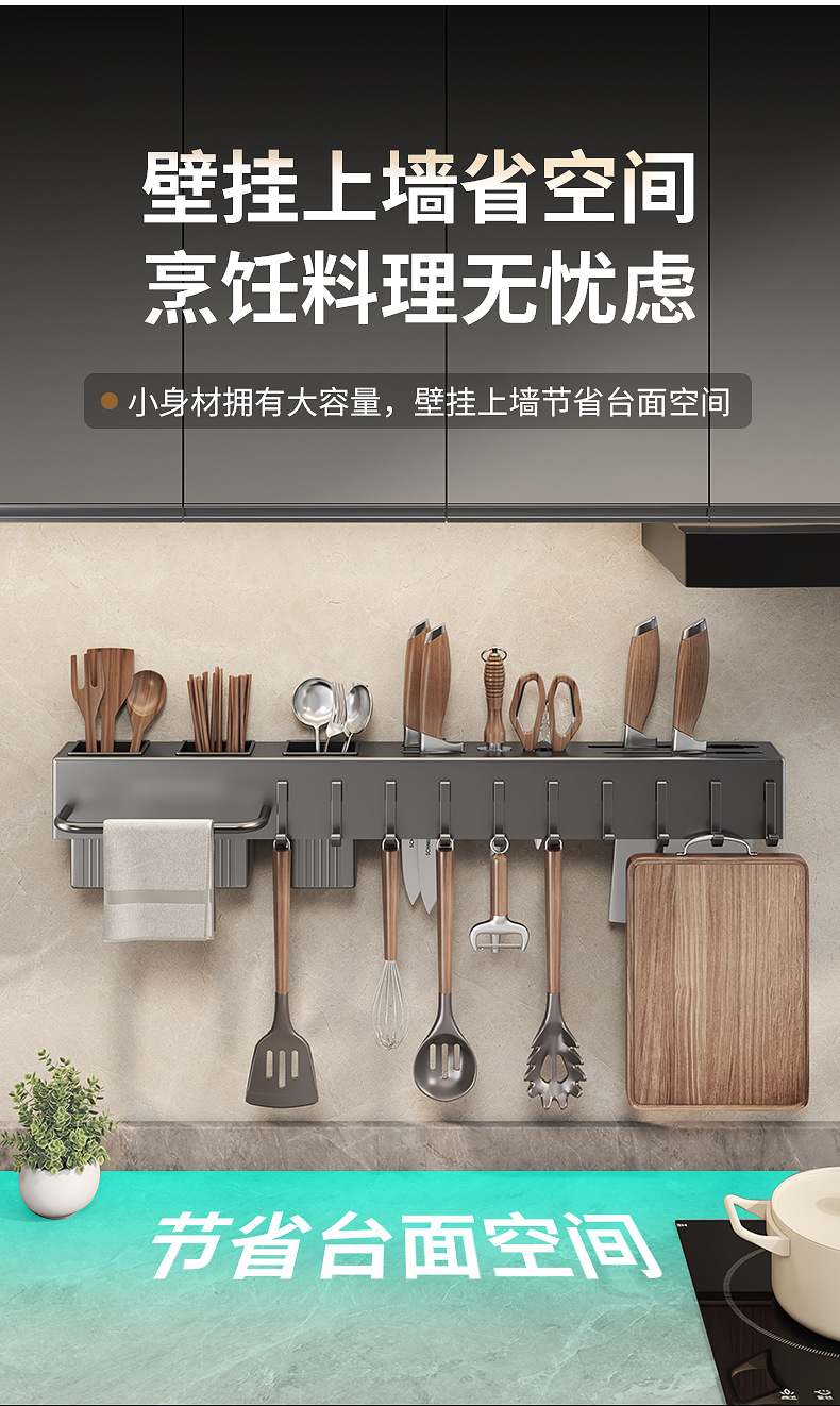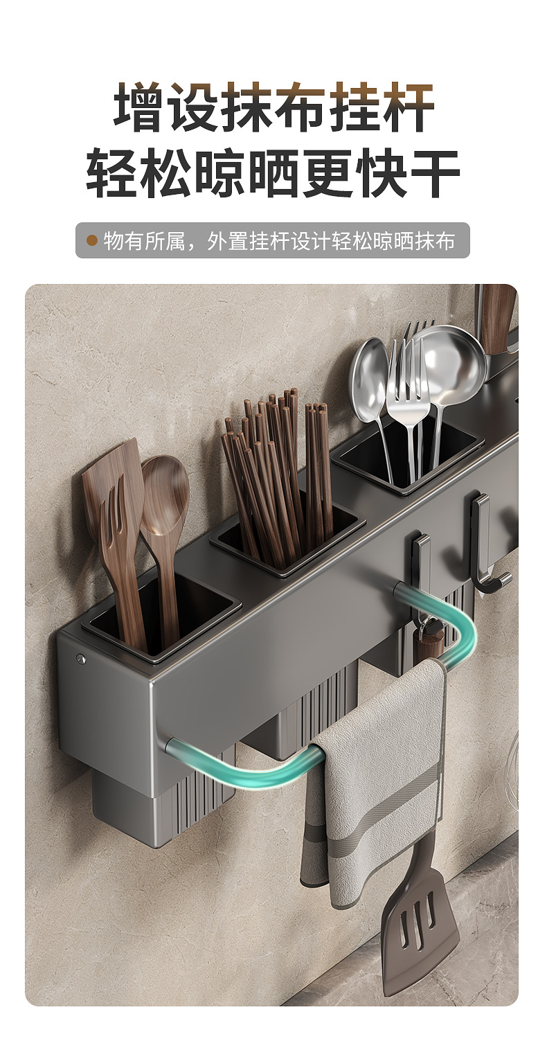 크로스보더 칼 수납선반, 펀치프리 주걱걸이, 주방주걱, 벽걸이 주방용품 걸이, 수납선반, 젓가락통