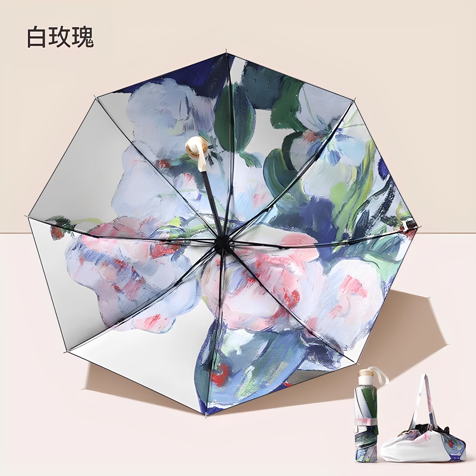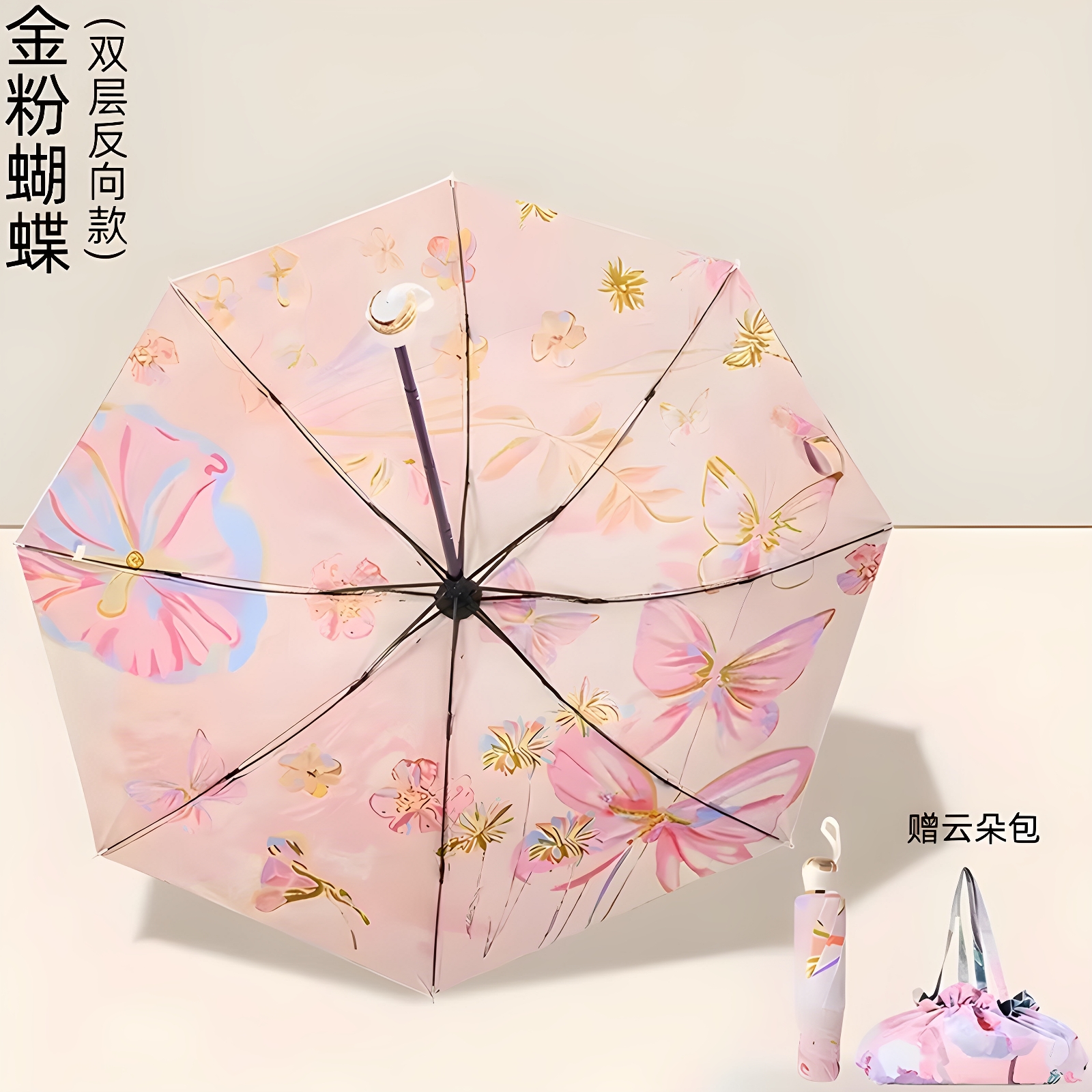 [양면 이중꽃] 여성용 고급 유화 우산, 비가 오나 눈이 오나, 자외선 차단 및 자외선 차단 기능이 있는 양산 우산