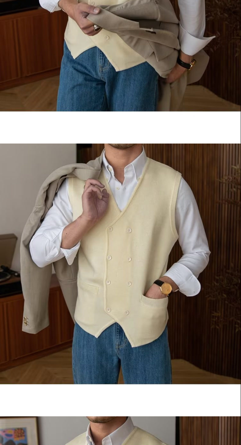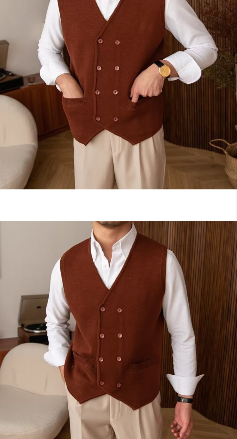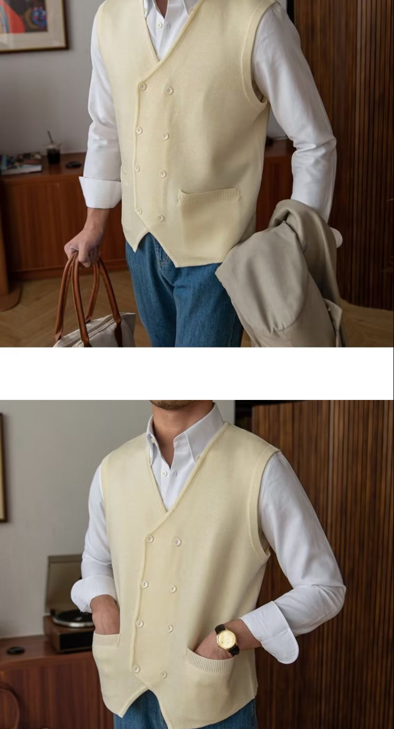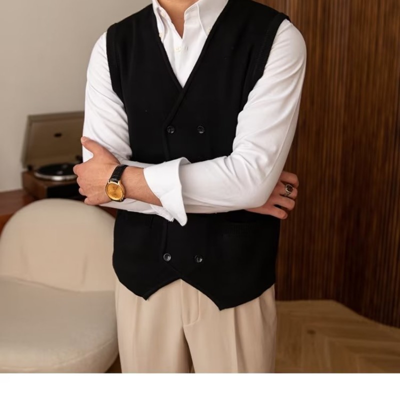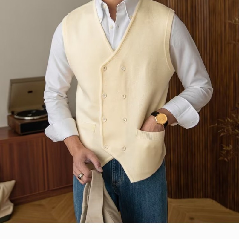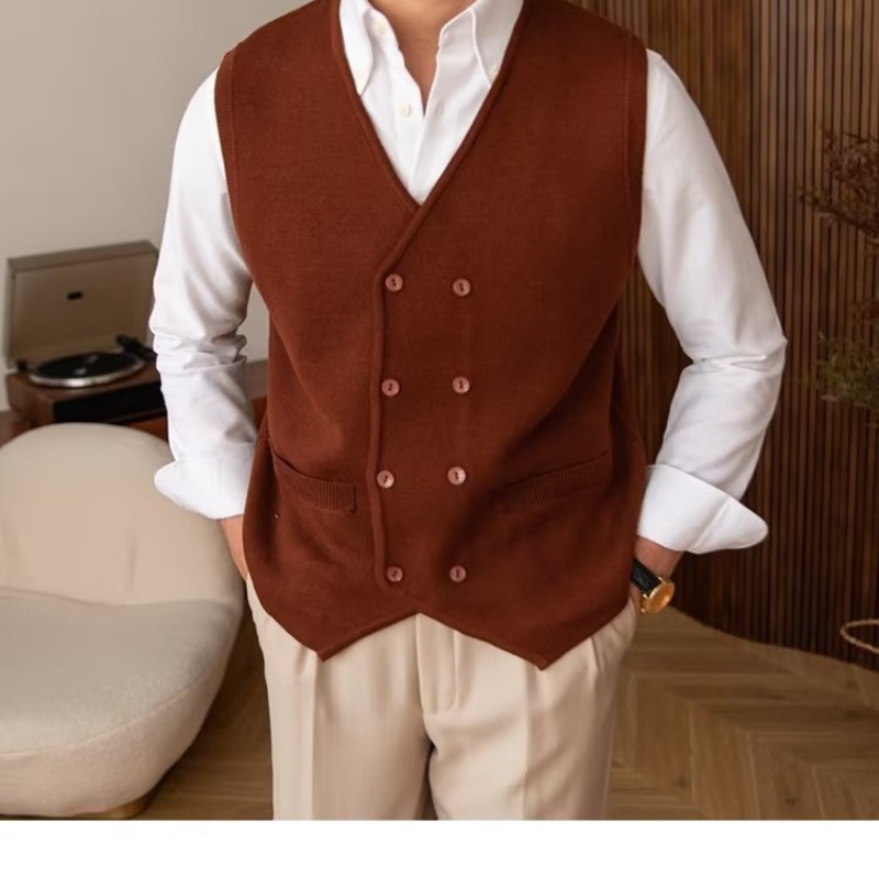 2025 가을, 겨울 다목적 더블 브레스트 니트 민소매 양복 조끼 영국 맞춤형 조끼 슬림 남성 스웨터 조끼