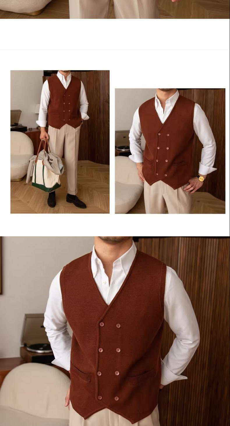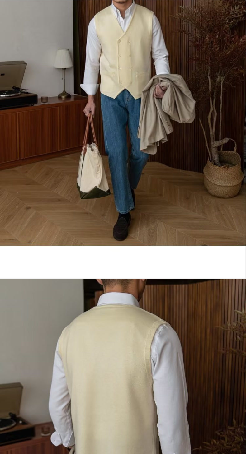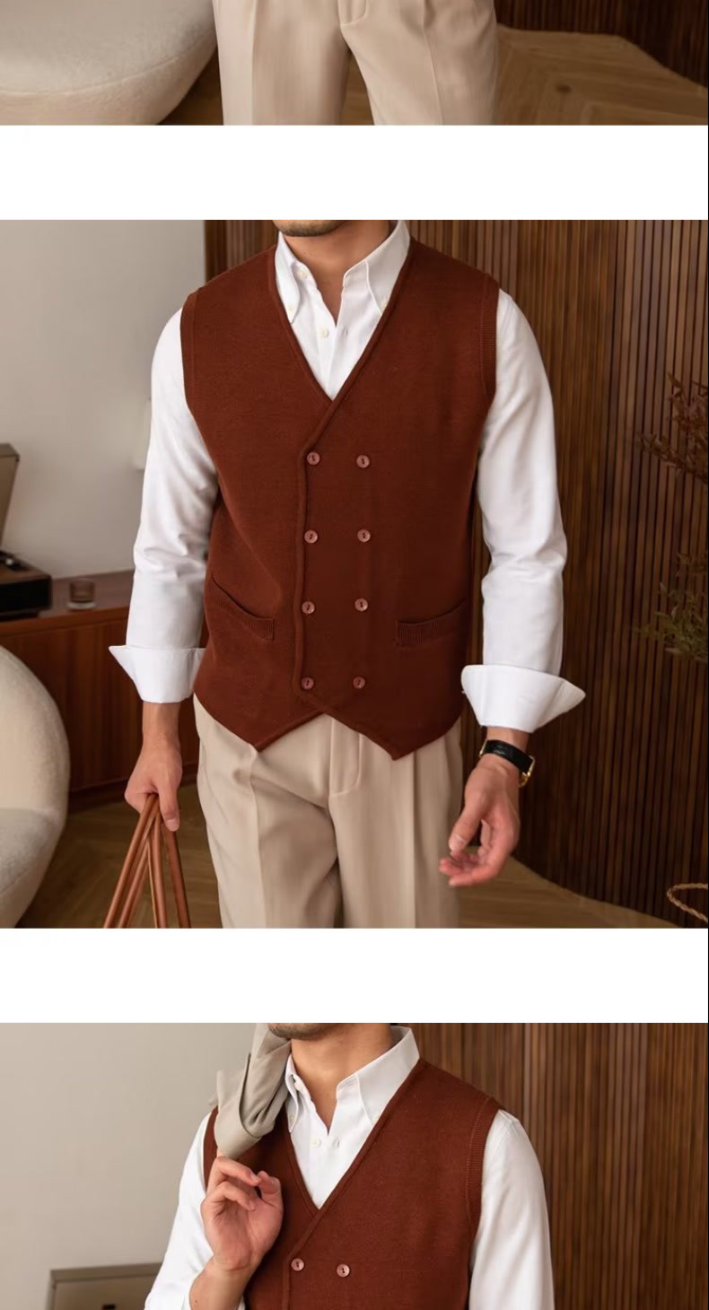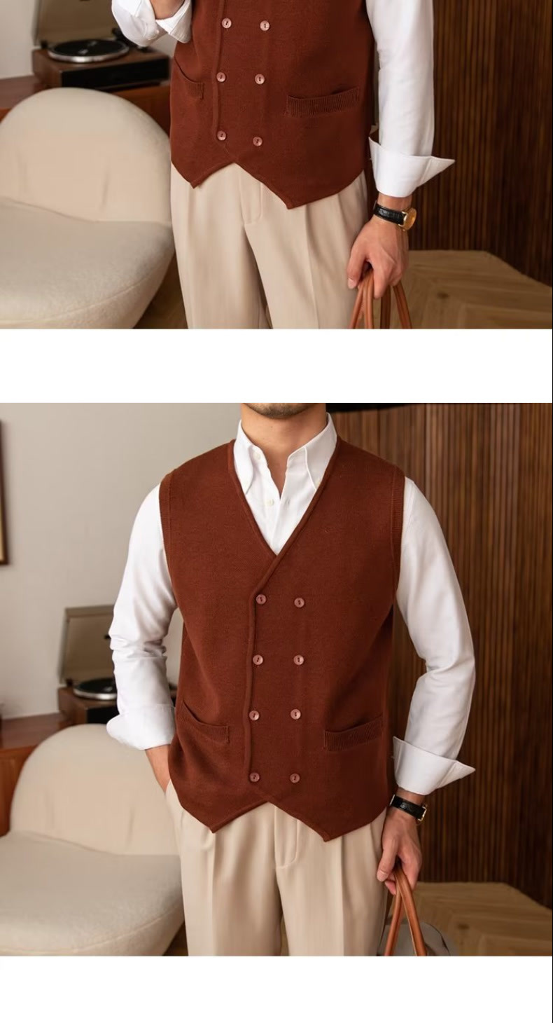 2025 가을, 겨울 다목적 더블 브레스트 니트 민소매 양복 조끼 영국 맞춤형 조끼 슬림 남성 스웨터 조끼