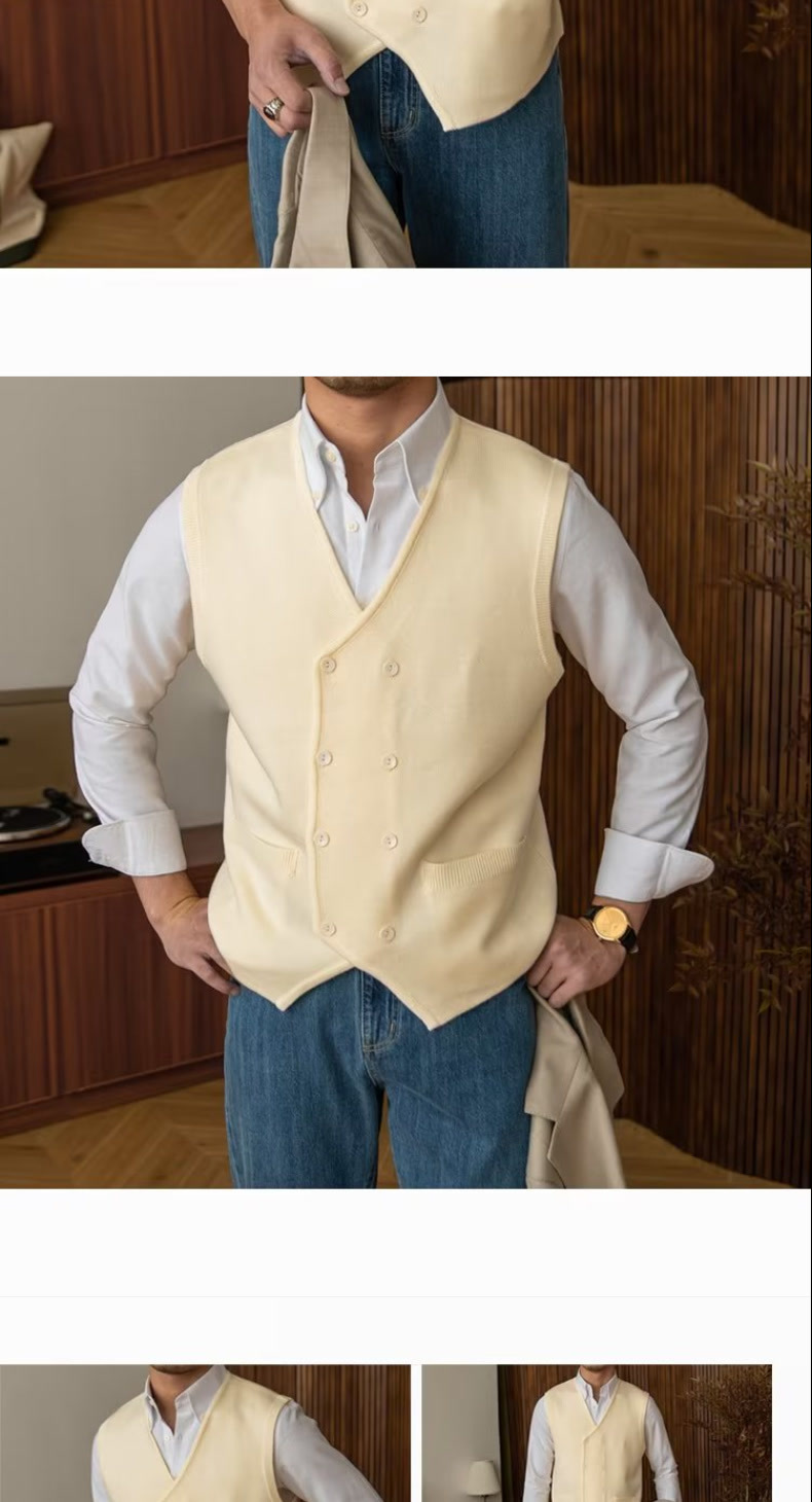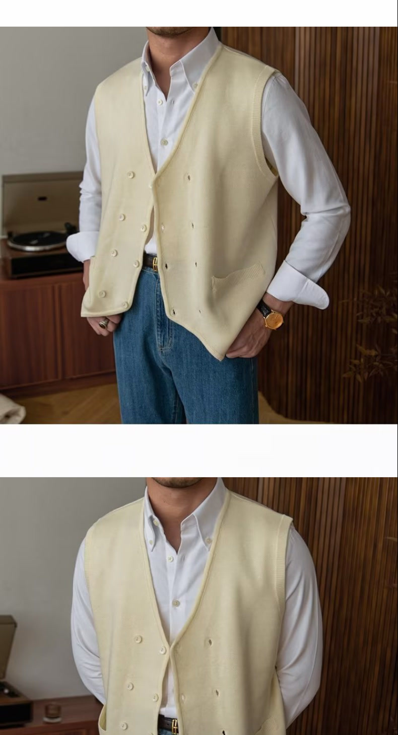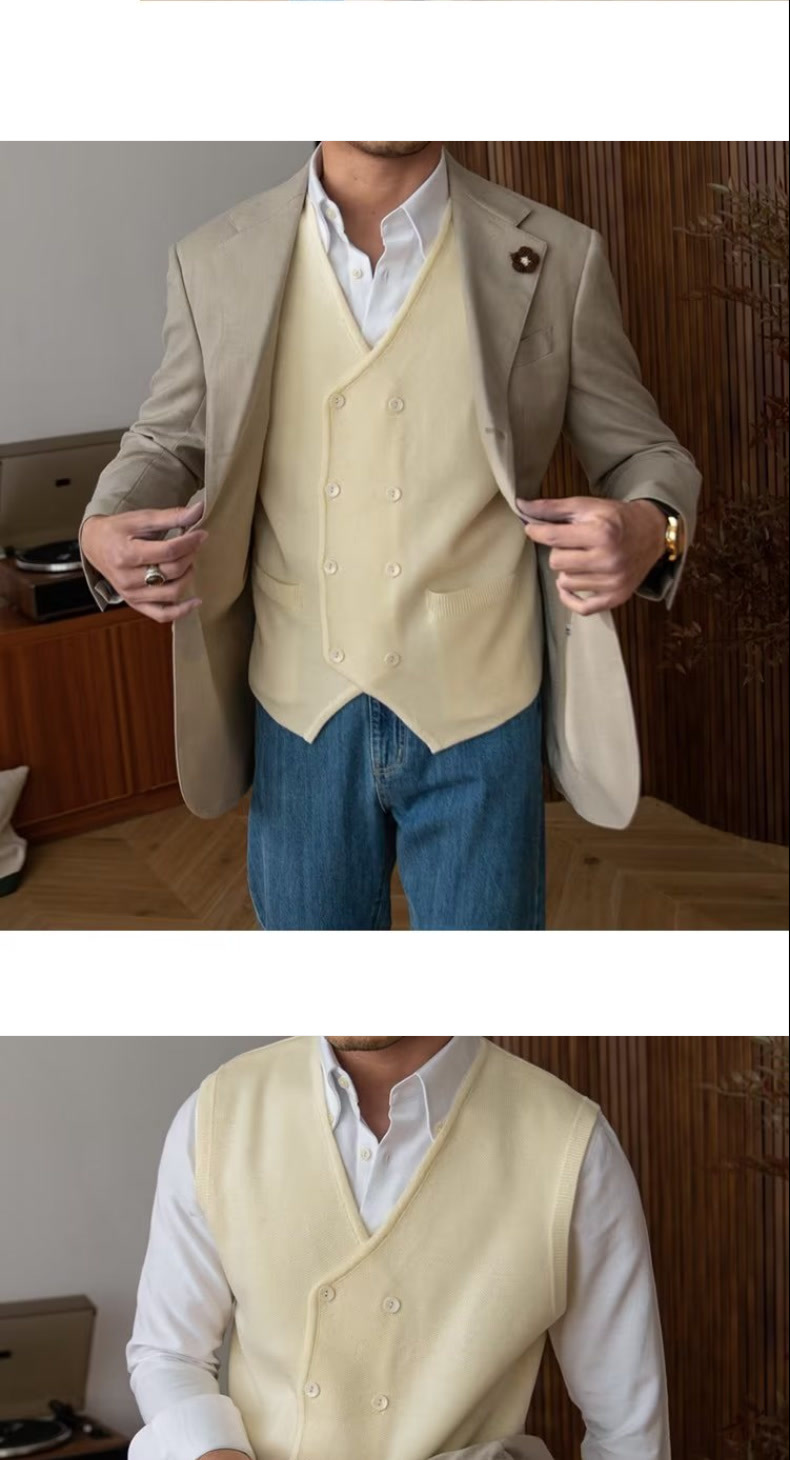 2025 가을, 겨울 다목적 더블 브레스트 니트 민소매 양복 조끼 영국 맞춤형 조끼 슬림 남성 스웨터 조끼스토어 가기