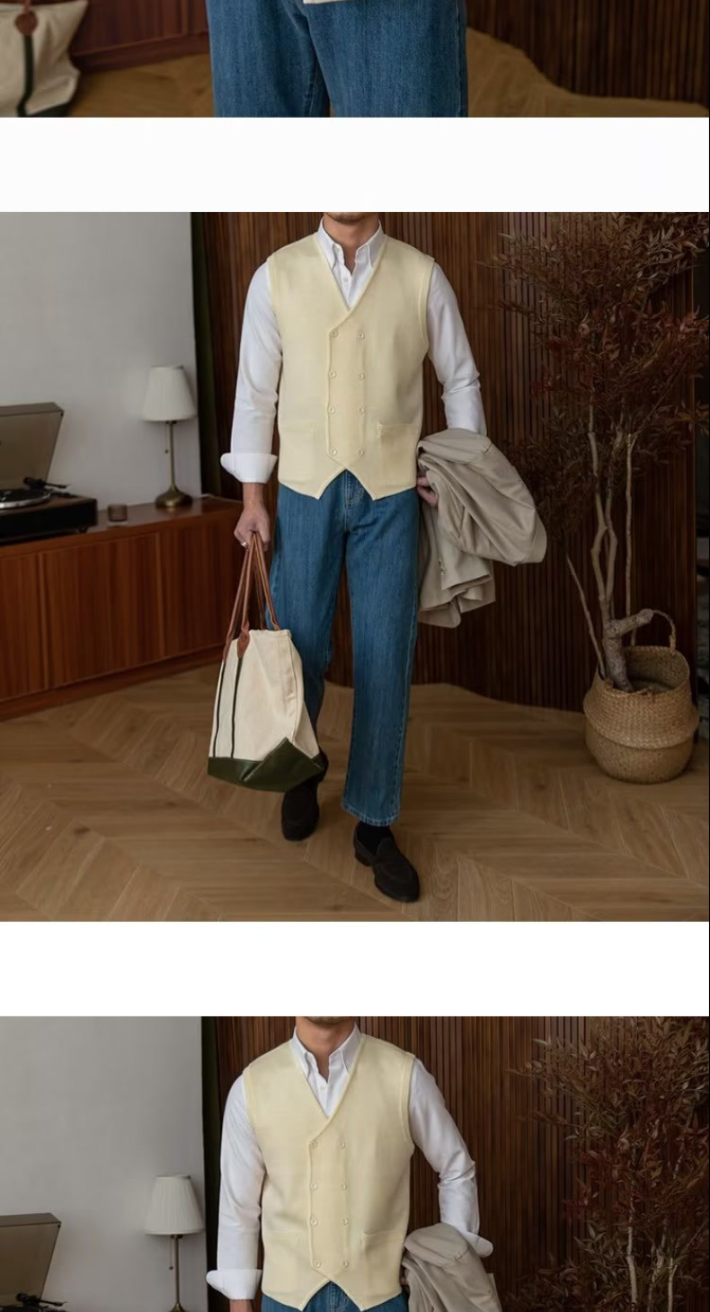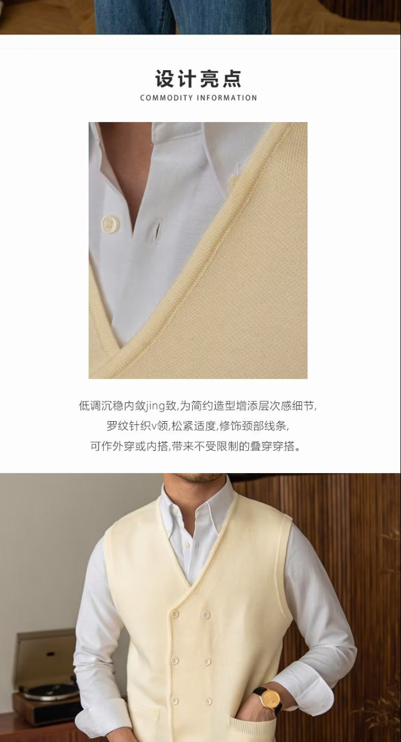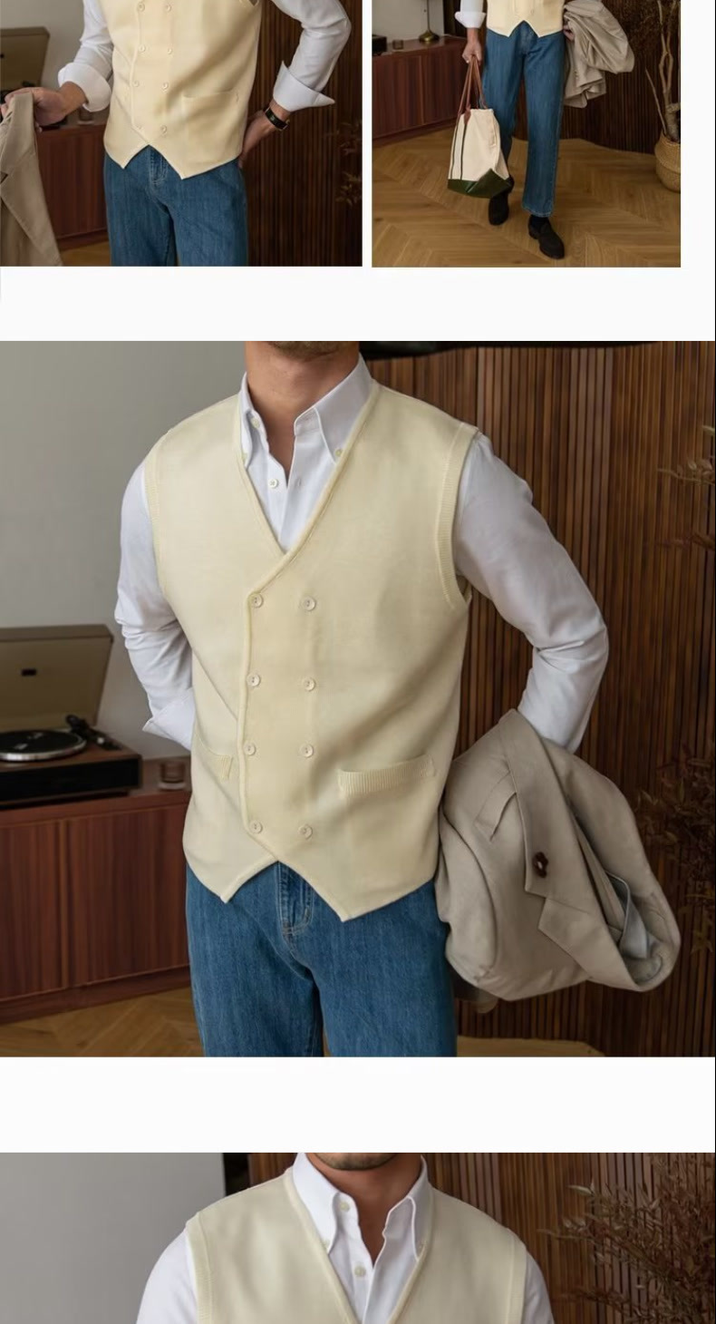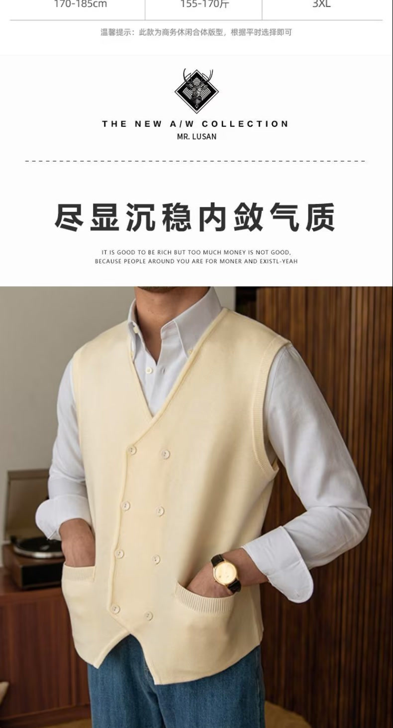2025 가을, 겨울 다목적 더블 브레스트 니트 민소매 양복 조끼 영국 맞춤형 조끼 슬림 남성 스웨터 조끼스토어 가기