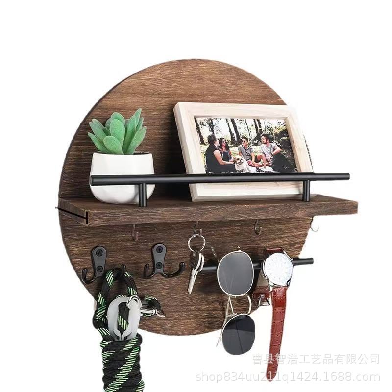 레트로 나무 벽걸이 형 벽 선반 라운드 선반 스토리지 랙 단단한 나무 입구 장식 랙 입구 열쇠 랙스토어 가기