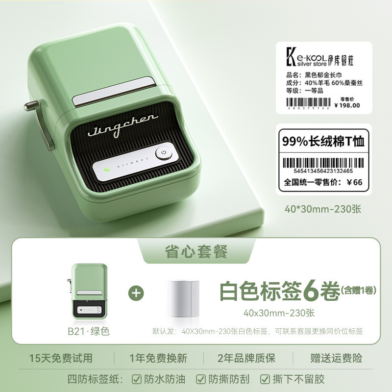 • [HD 버전] B21PRO 그린 + 화이트 4방수 화이트 라벨 6롤(1롤 무료 포함) - 공식