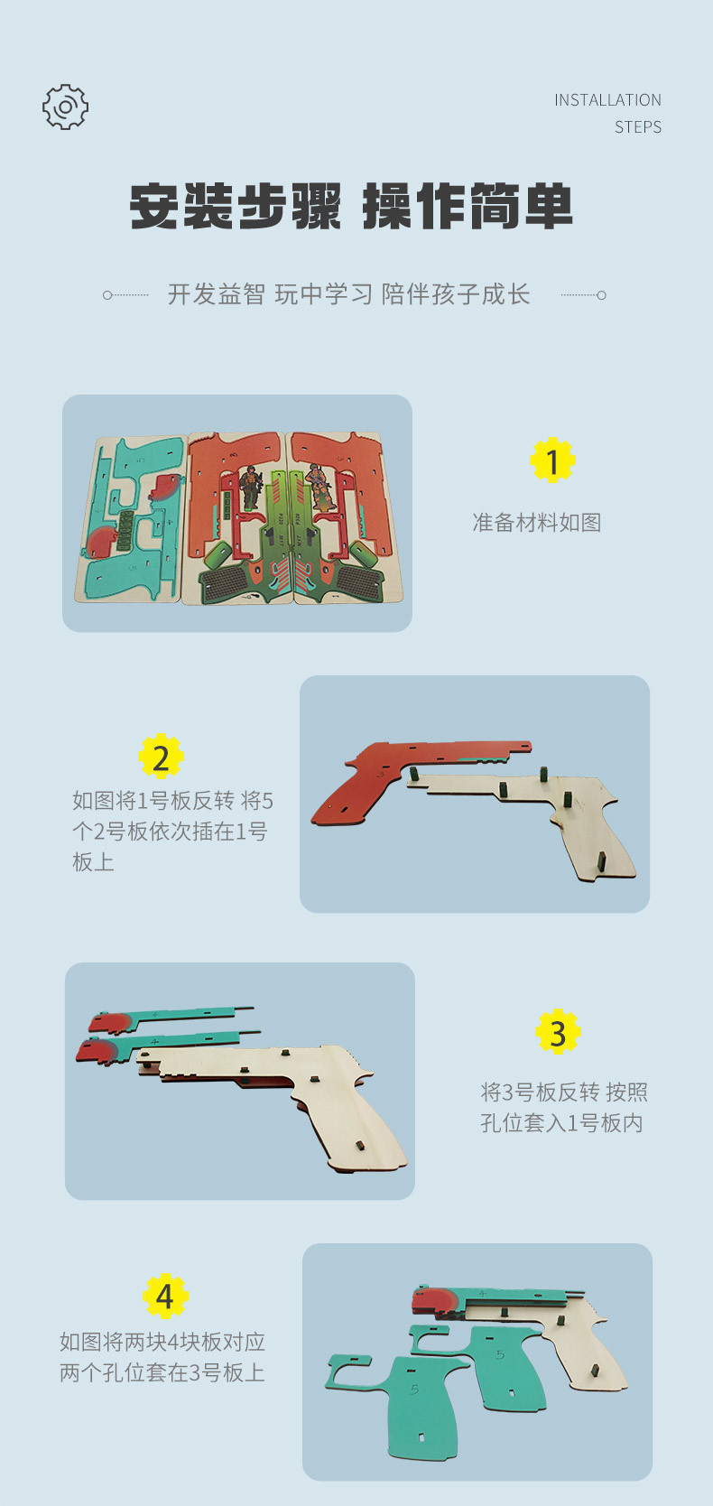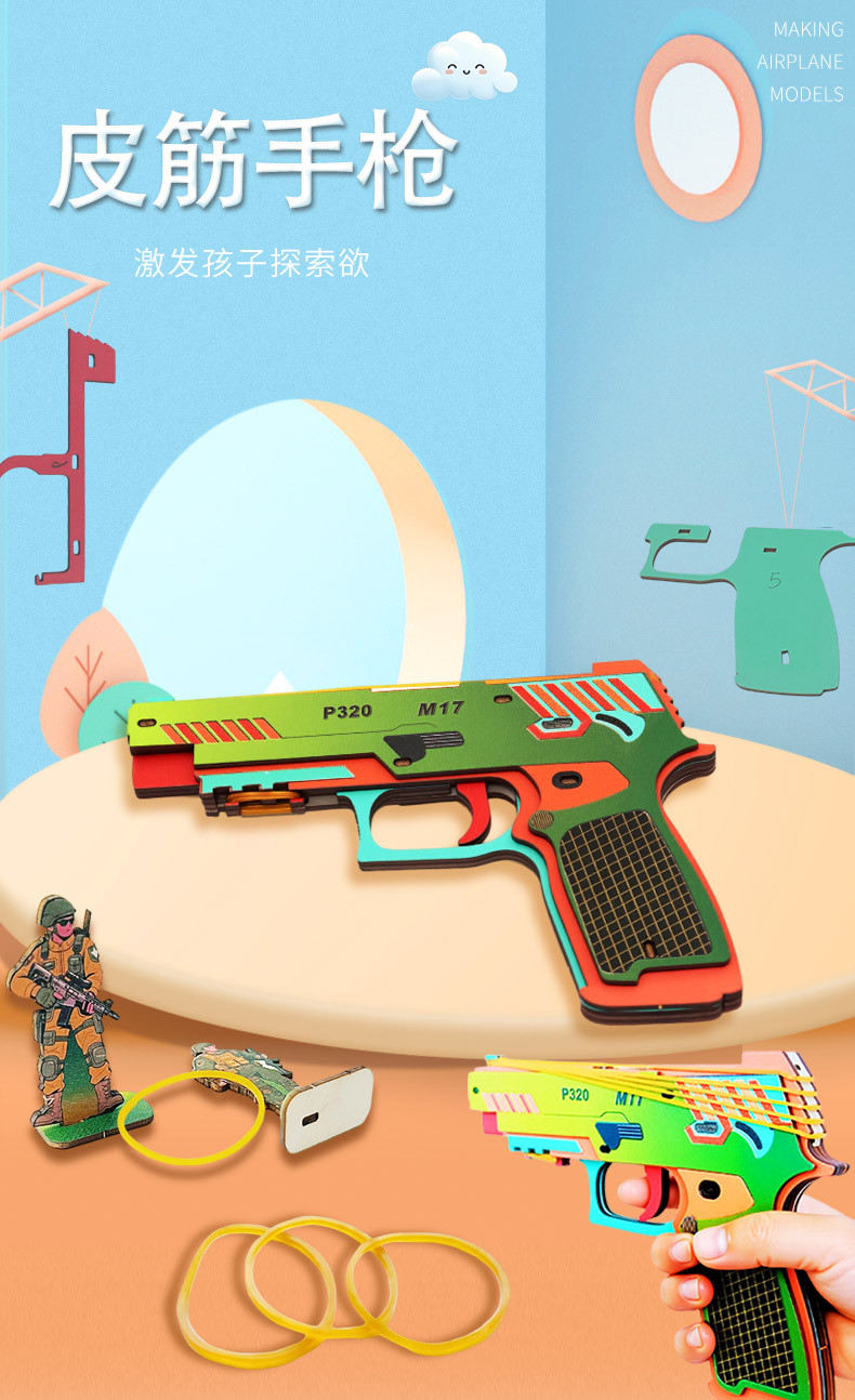 단단한 나무 고무 밴드 총 DIY 장난감 총 모델 치킨 나무 총 어린이 과학 실험 장난감 재료 패키지 권총스토어 가기