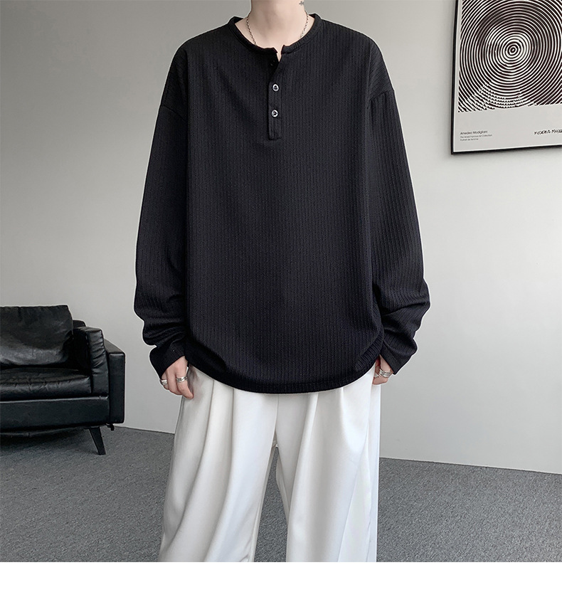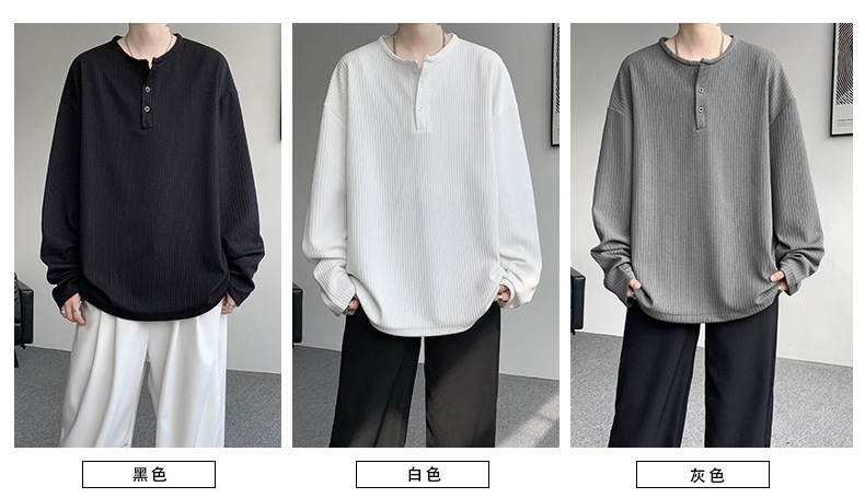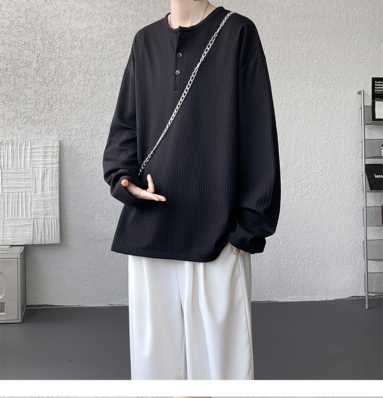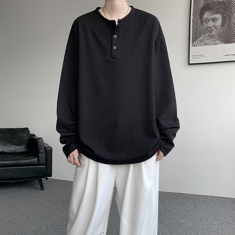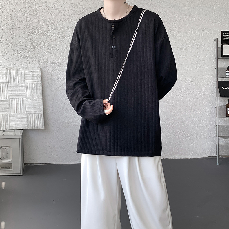 봄과 가을 하이 스트리트 코튼 화이트 레이어드 긴팔 티셔츠 남성용 아크 밑단 바닥 셔츠 스웨트 셔츠