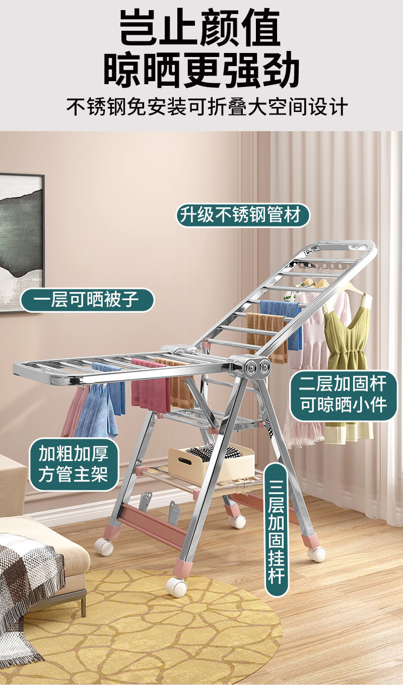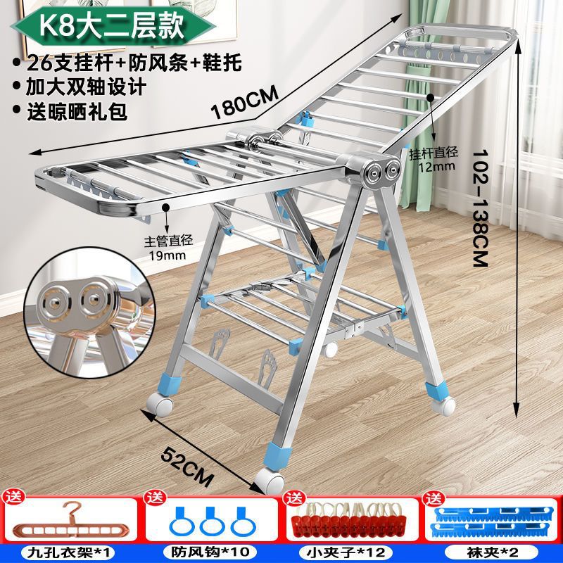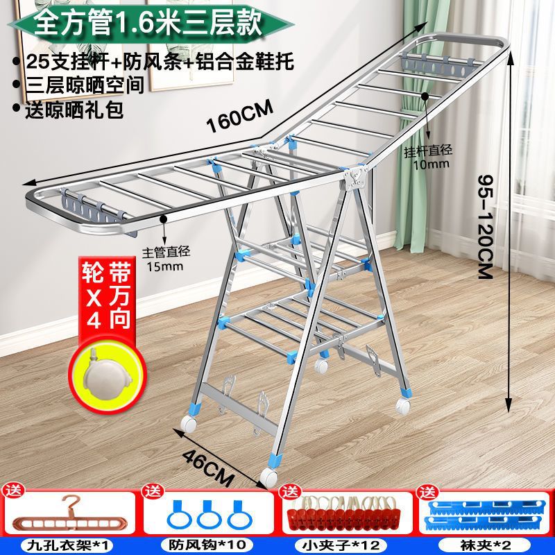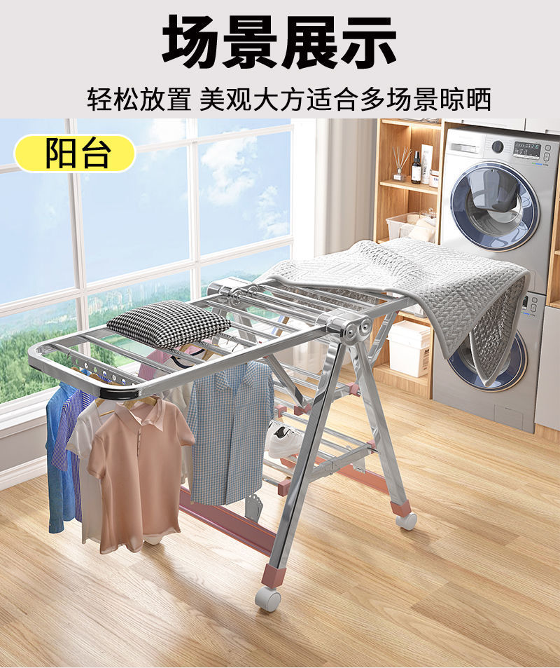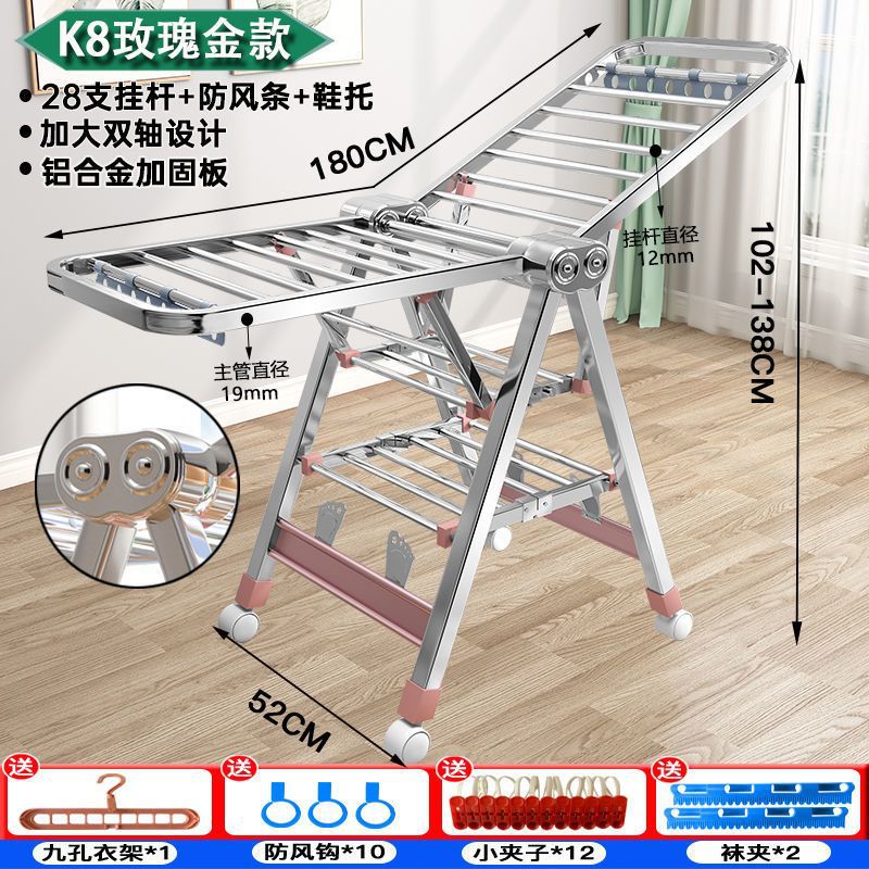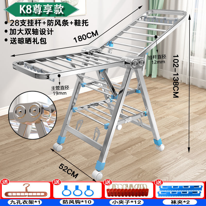 스테인레스 스틸 옷 건조 랙 바닥 접이식 실내 발코니 홈 쿨링 베이비 타월 바 기숙사 이불 건조기스토어 가기