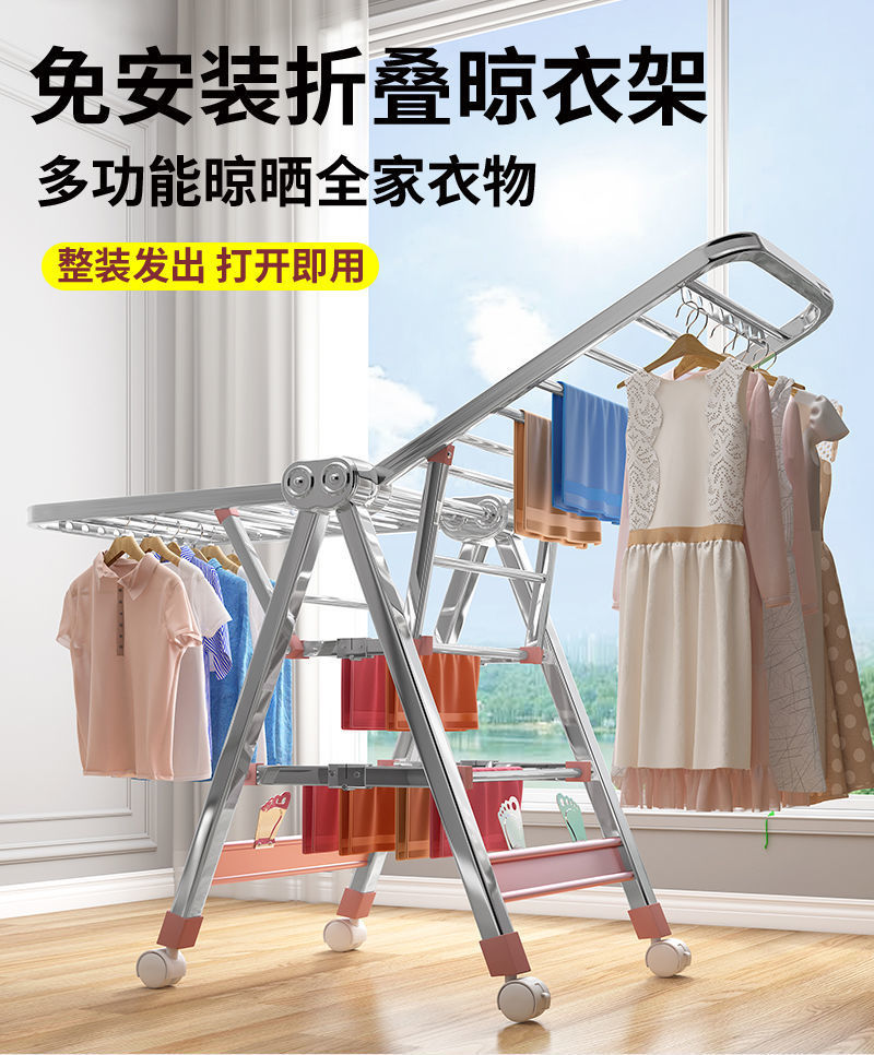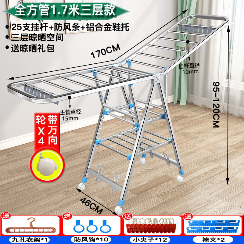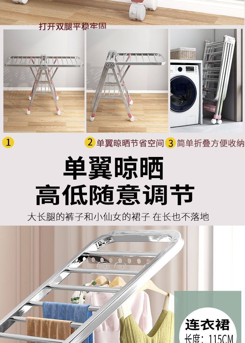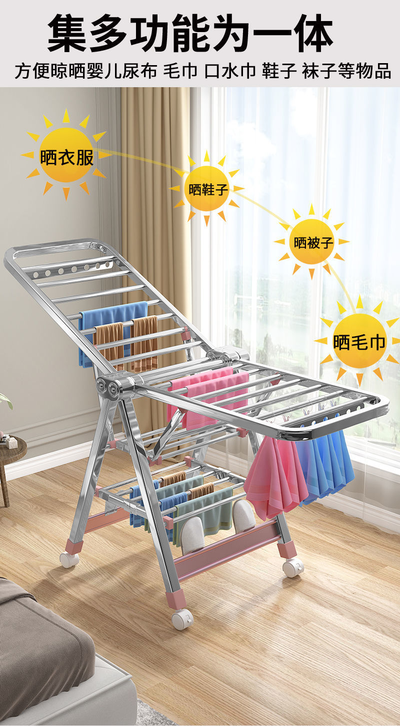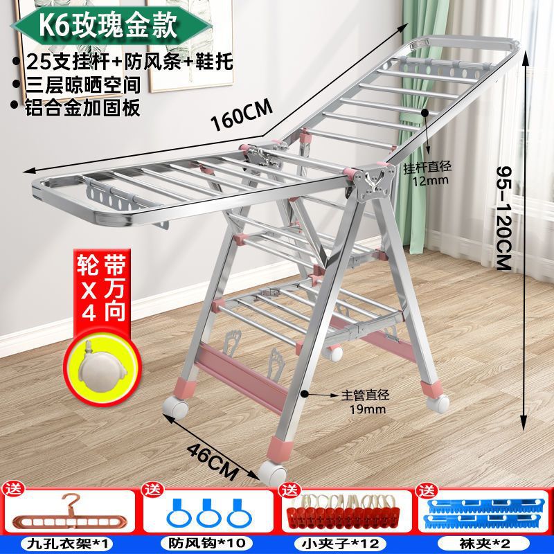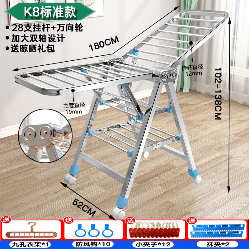 스테인레스 스틸 옷 건조 랙 바닥 접이식 실내 발코니 홈 쿨링 베이비 타월 바 기숙사 이불 건조기스토어 가기