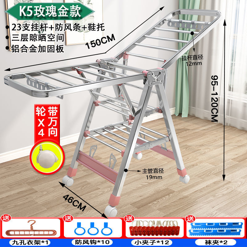 스테인레스 스틸 옷 건조 랙 바닥 접이식 실내 발코니 홈 쿨링 베이비 타월 바 기숙사 이불 건조기