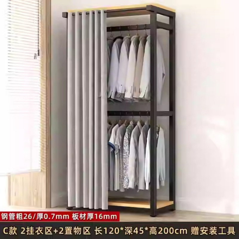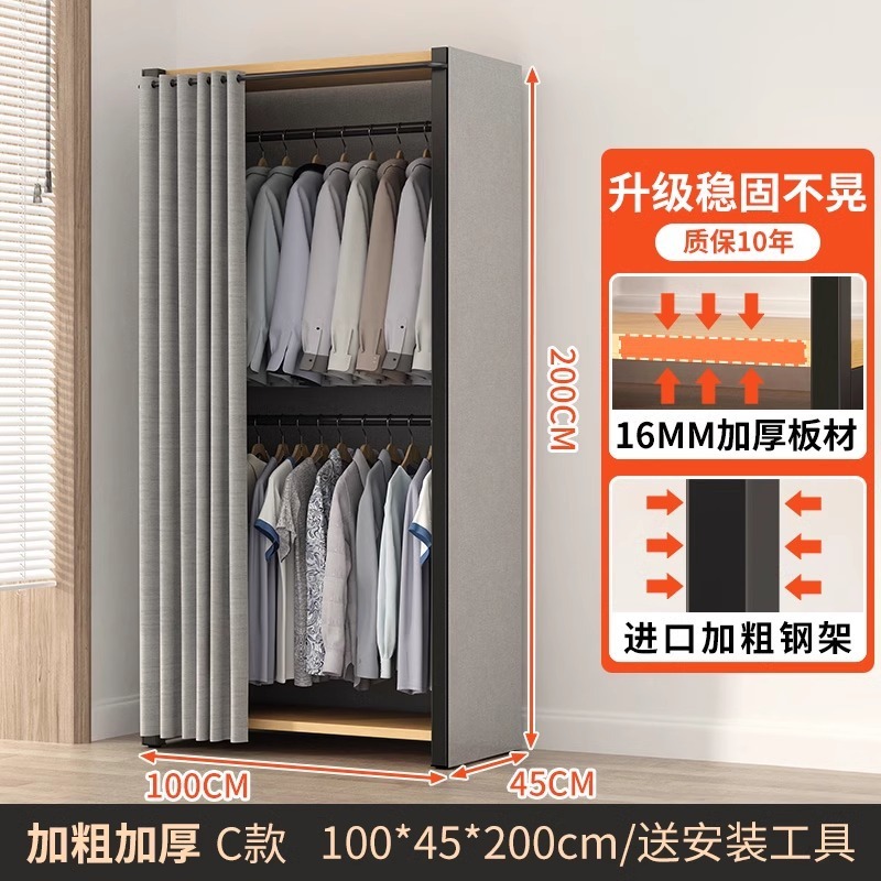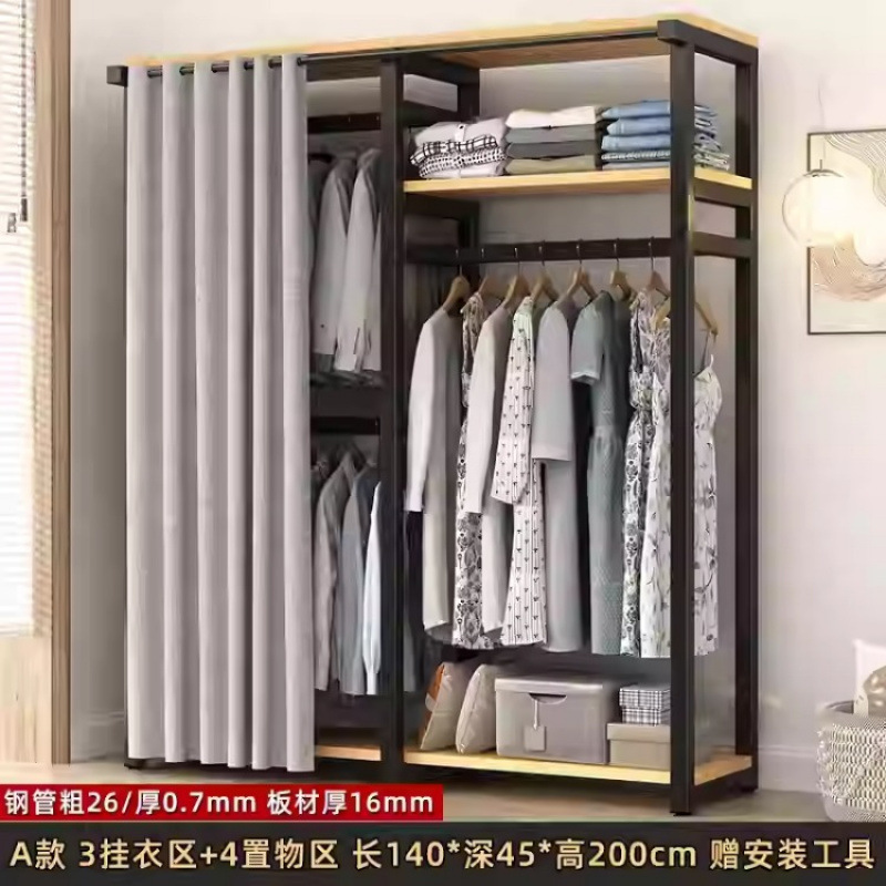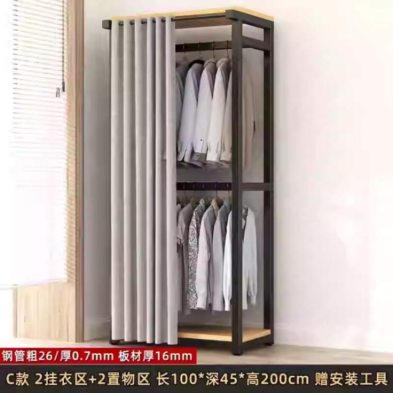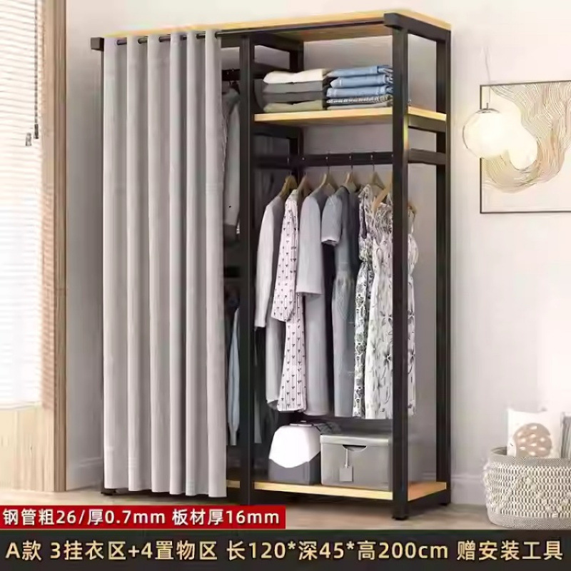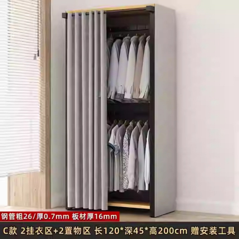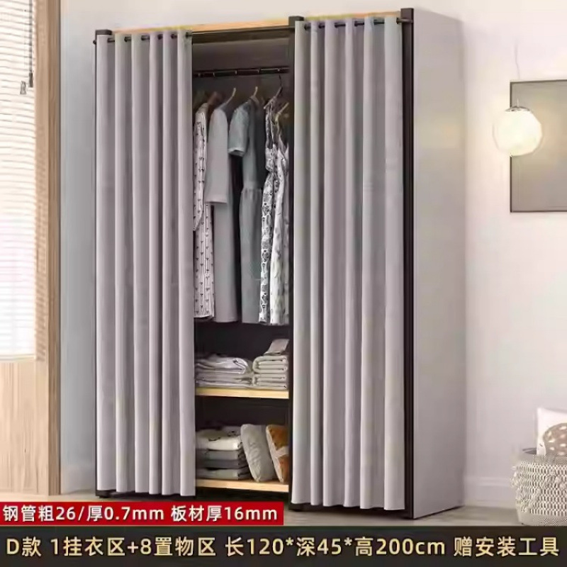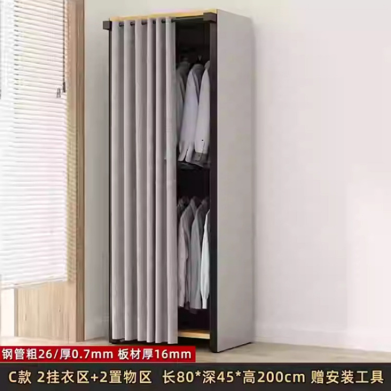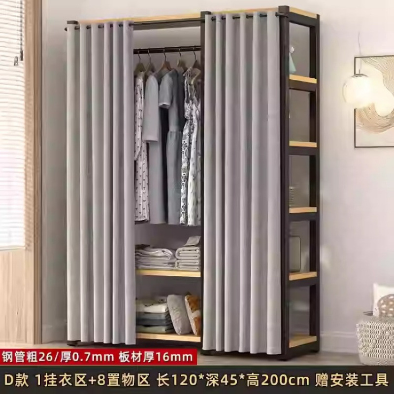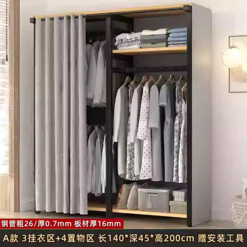 금속 옷장 홈 침실 간단한 조립 강철 프레임 단단한 나무 강력하고 내구성이 뛰어난 작은 아파트 천 옷장 옷걸이
