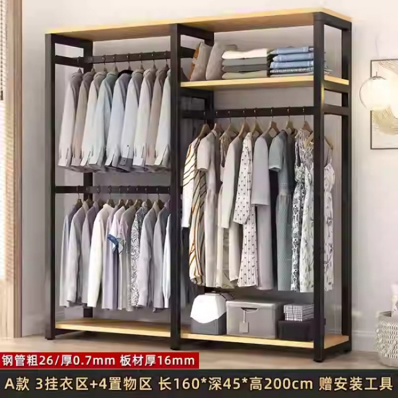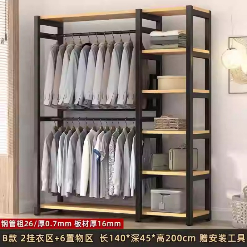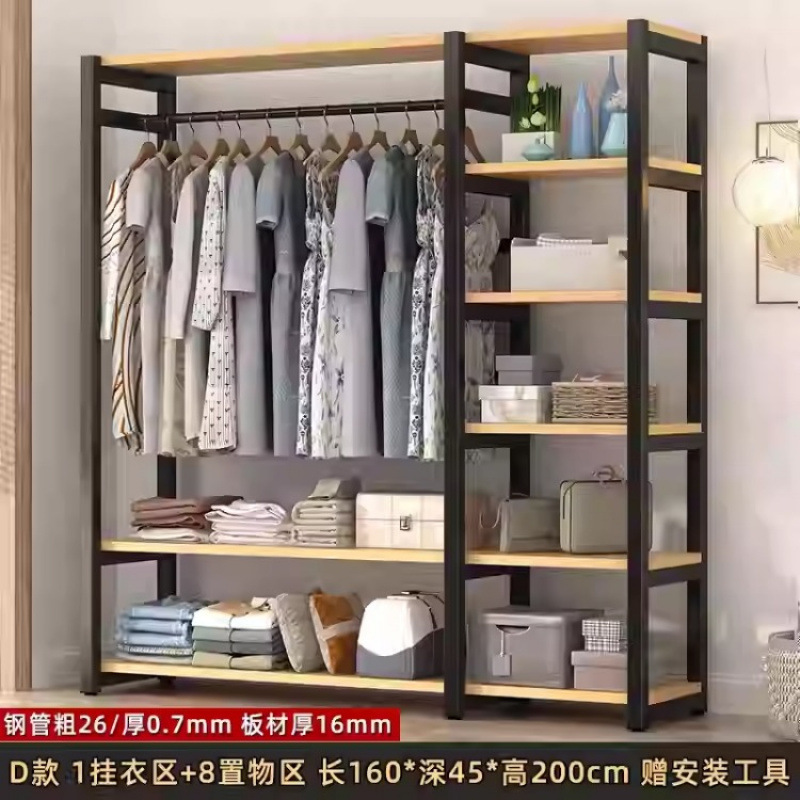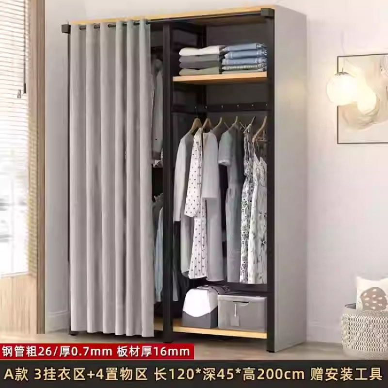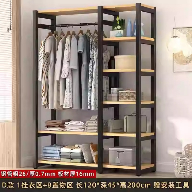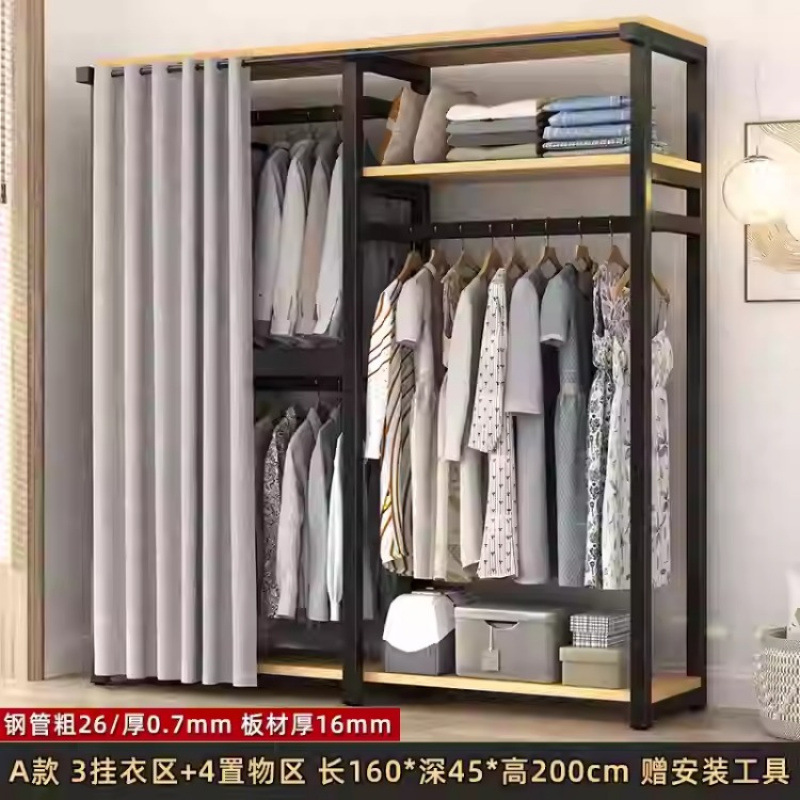 금속 옷장 홈 침실 간단한 조립 강철 프레임 단단한 나무 강력하고 내구성이 뛰어난 작은 아파트 천 옷장 옷걸이스토어 가기