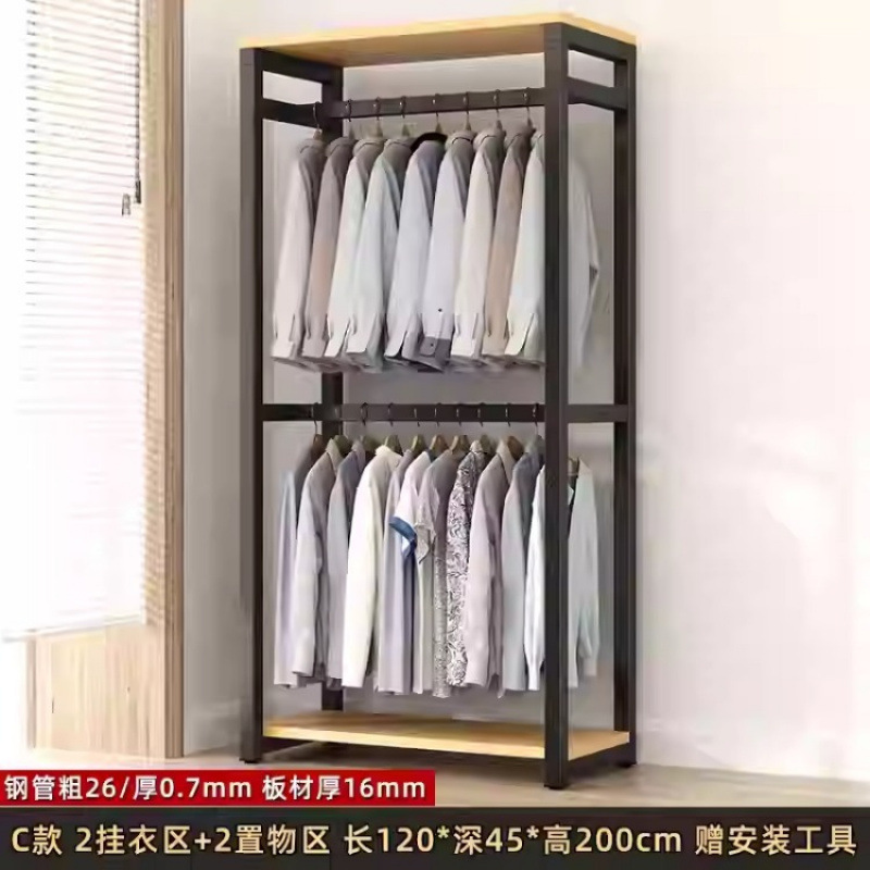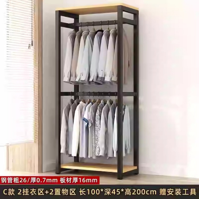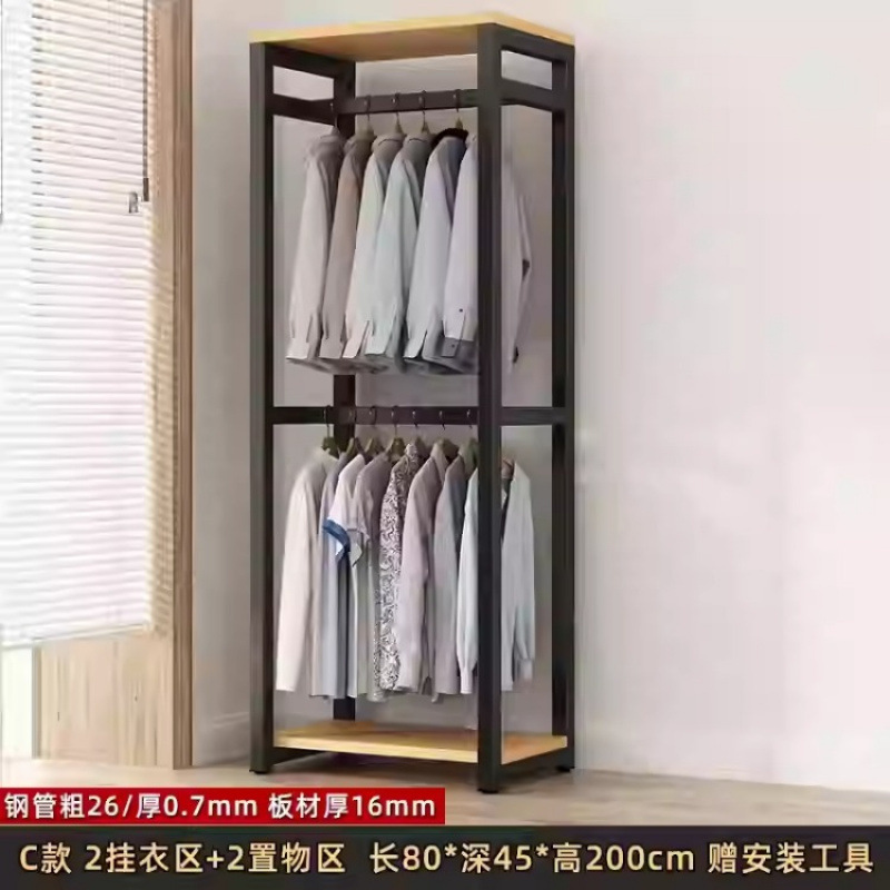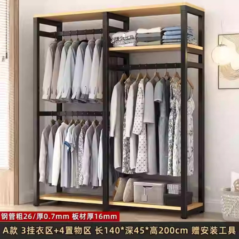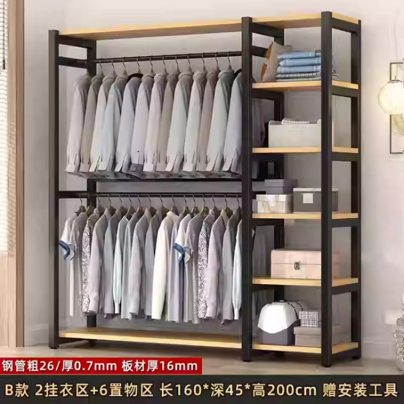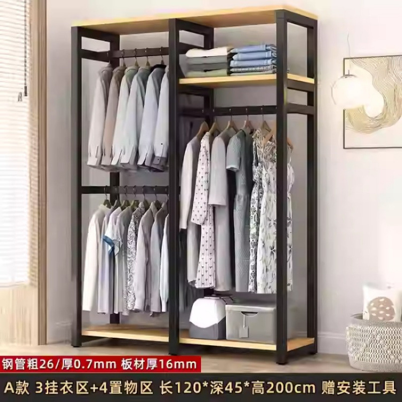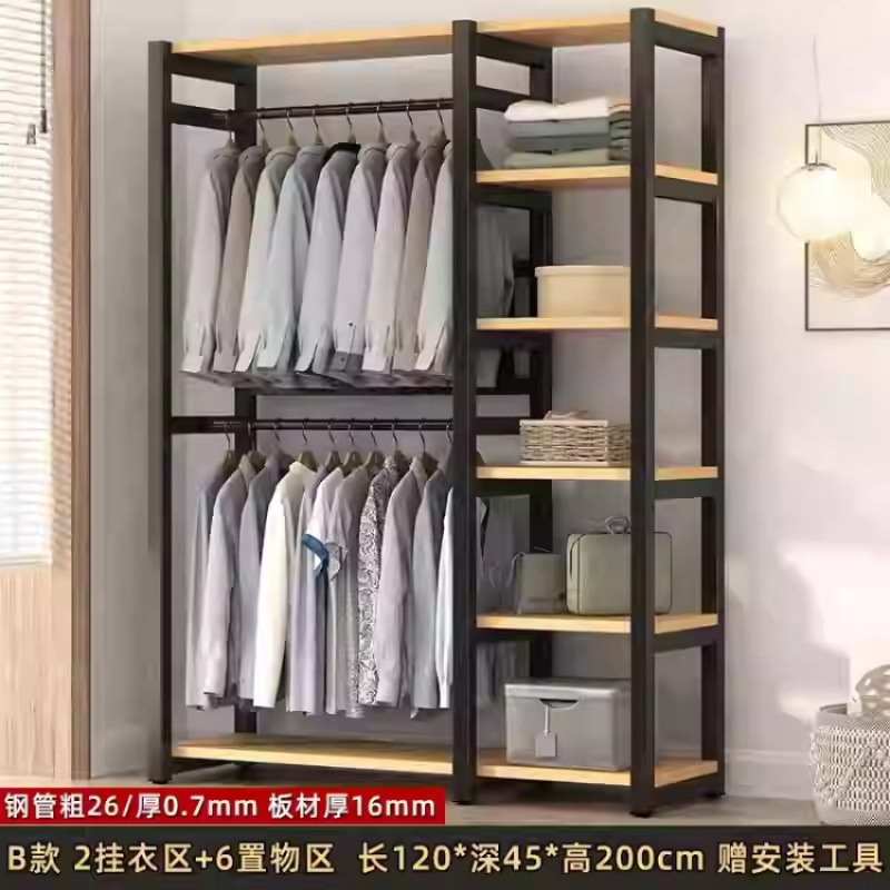 금속 옷장 홈 침실 간단한 조립 강철 프레임 단단한 나무 강력하고 내구성이 뛰어난 작은 아파트 천 옷장 옷걸이스토어 가기