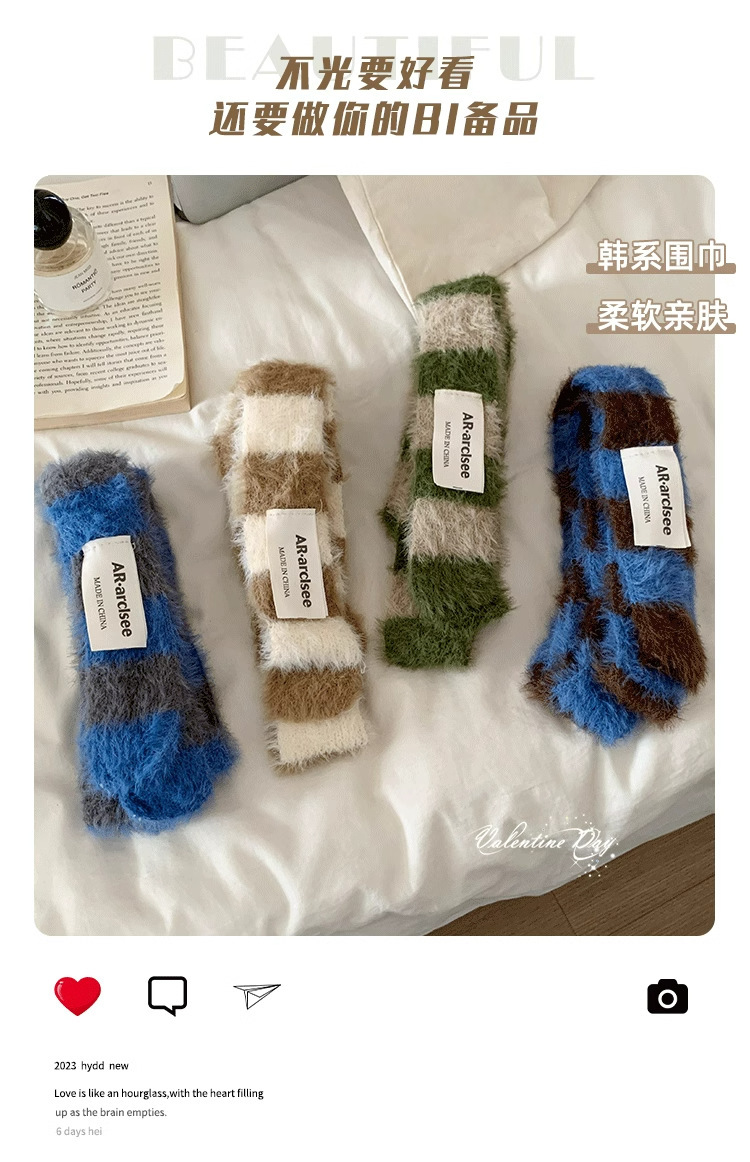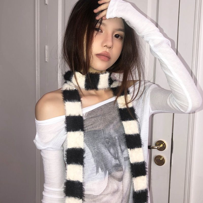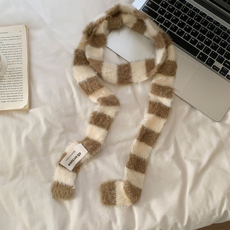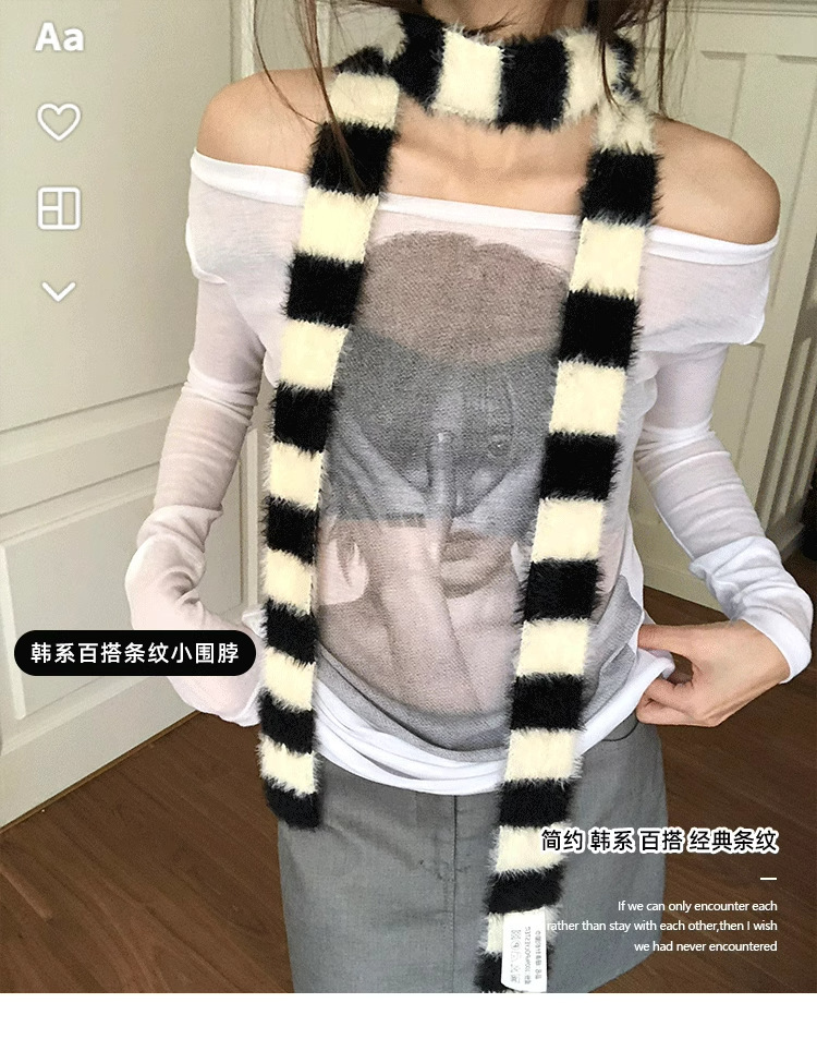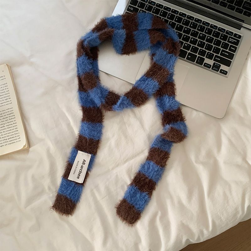 유지민과 같은 스타일의 meenderi 한국 디자이너 브랜드 달콤하고 시원한 컬러 블록 스트라이프 플러시 얇은 스트립 스카프스토어 가기