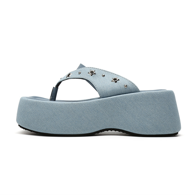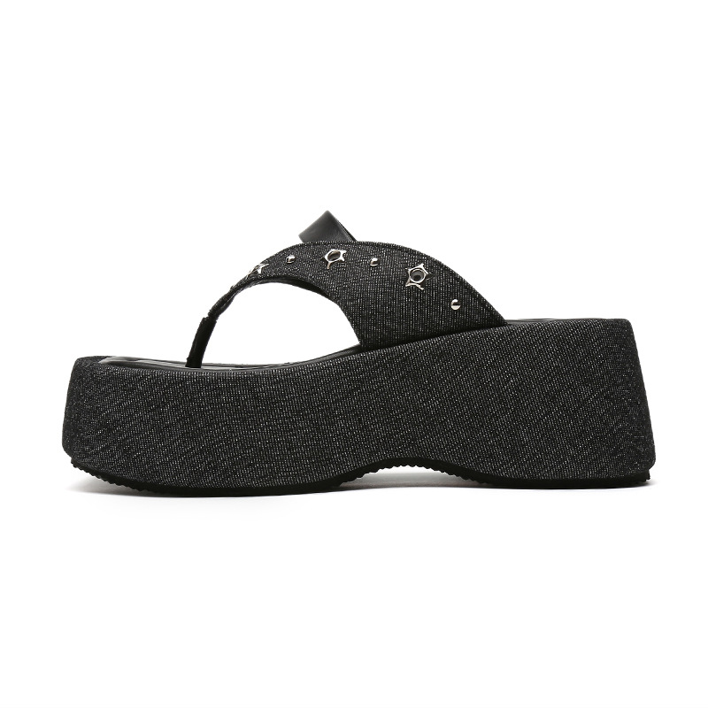 2025 Plati 뉴 여름 캔버스 캐주얼 다목적 스퀘어 토 헤링본 스타 버클 두꺼운 밑창 여성용 다용도 슬리퍼