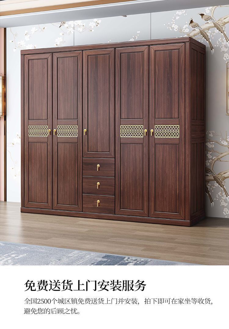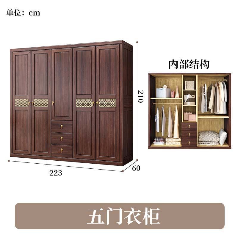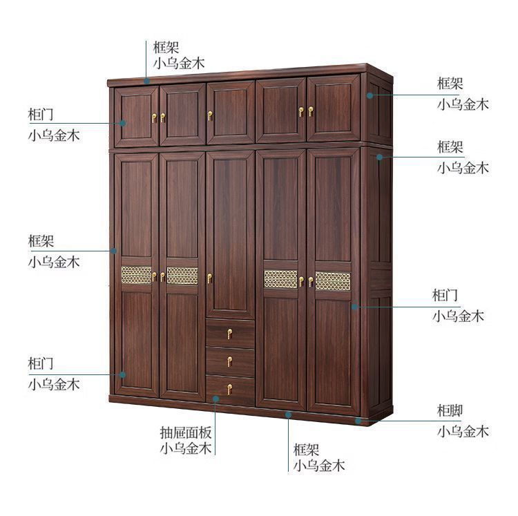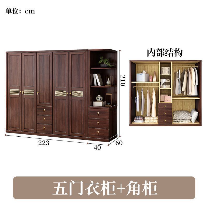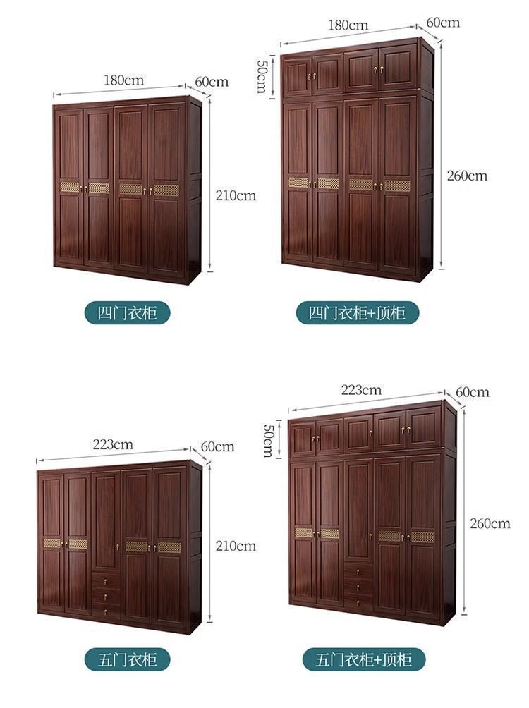검은 골드 우드 새로운 중국 스타일 모든 단단한 나무 옷장 침실 캐비닛 대형 옷장 침실 홈 3, 4, 5 쌍 도어 스토리지 캐비닛