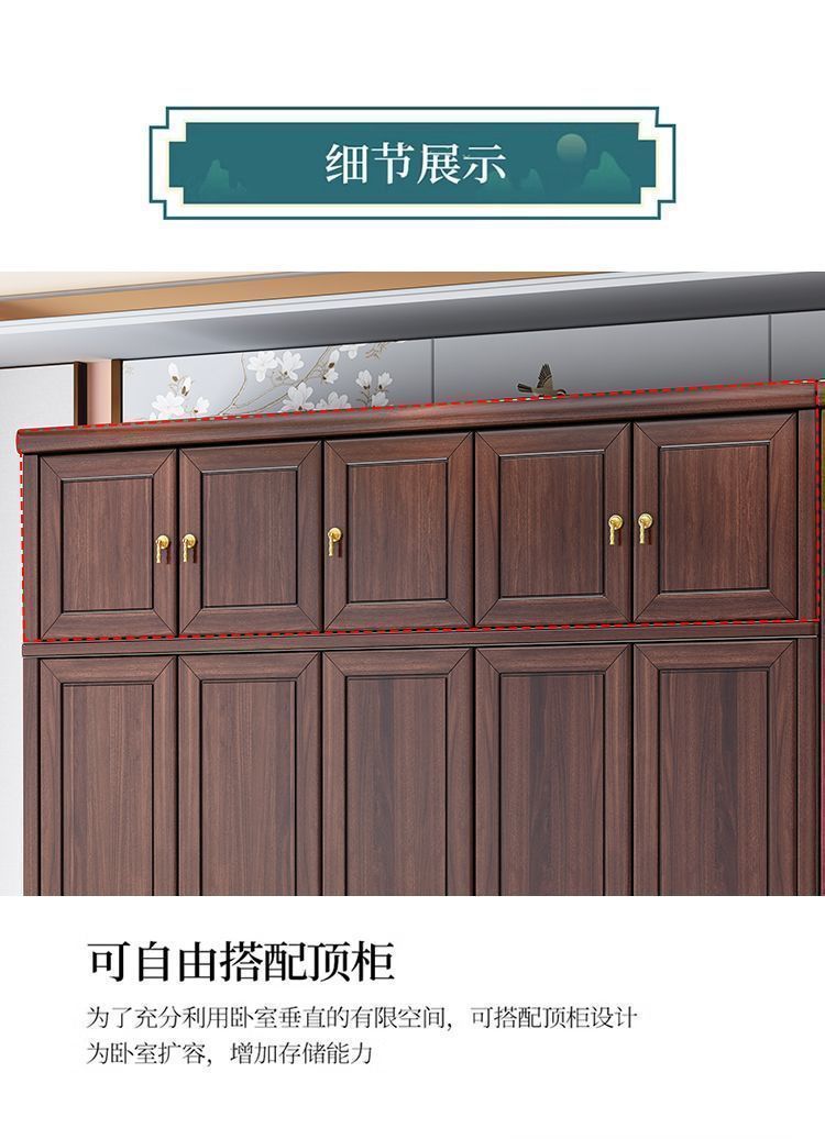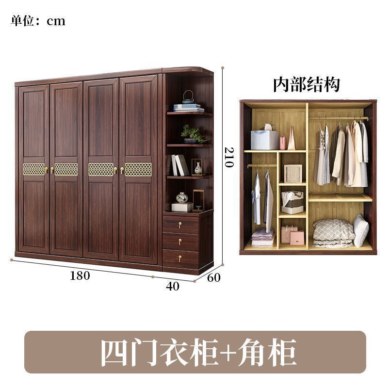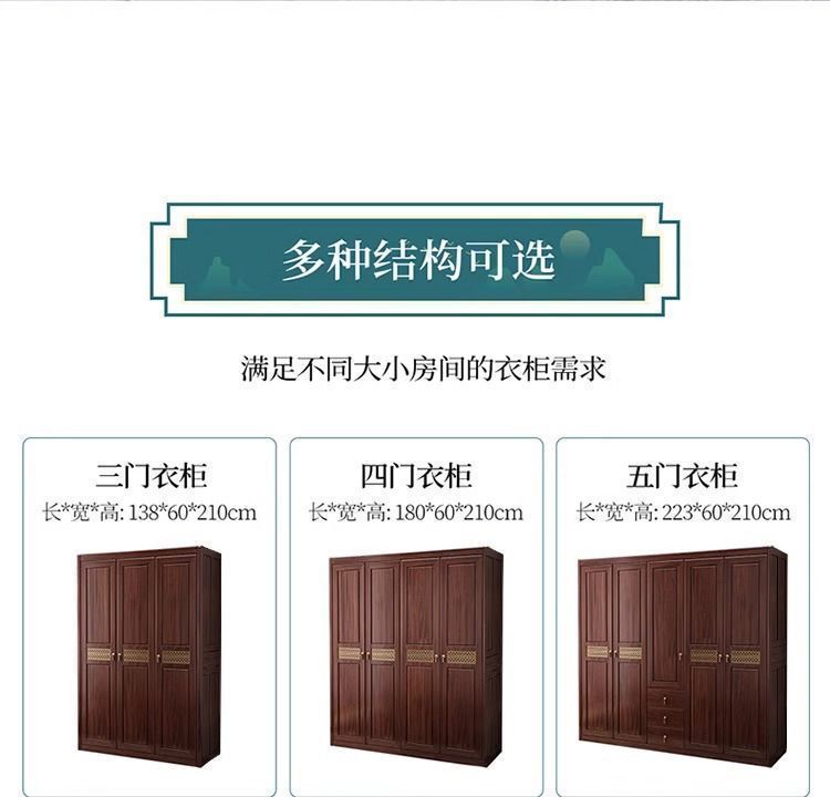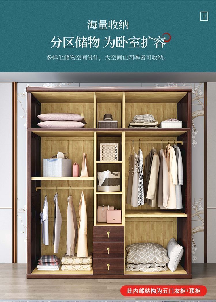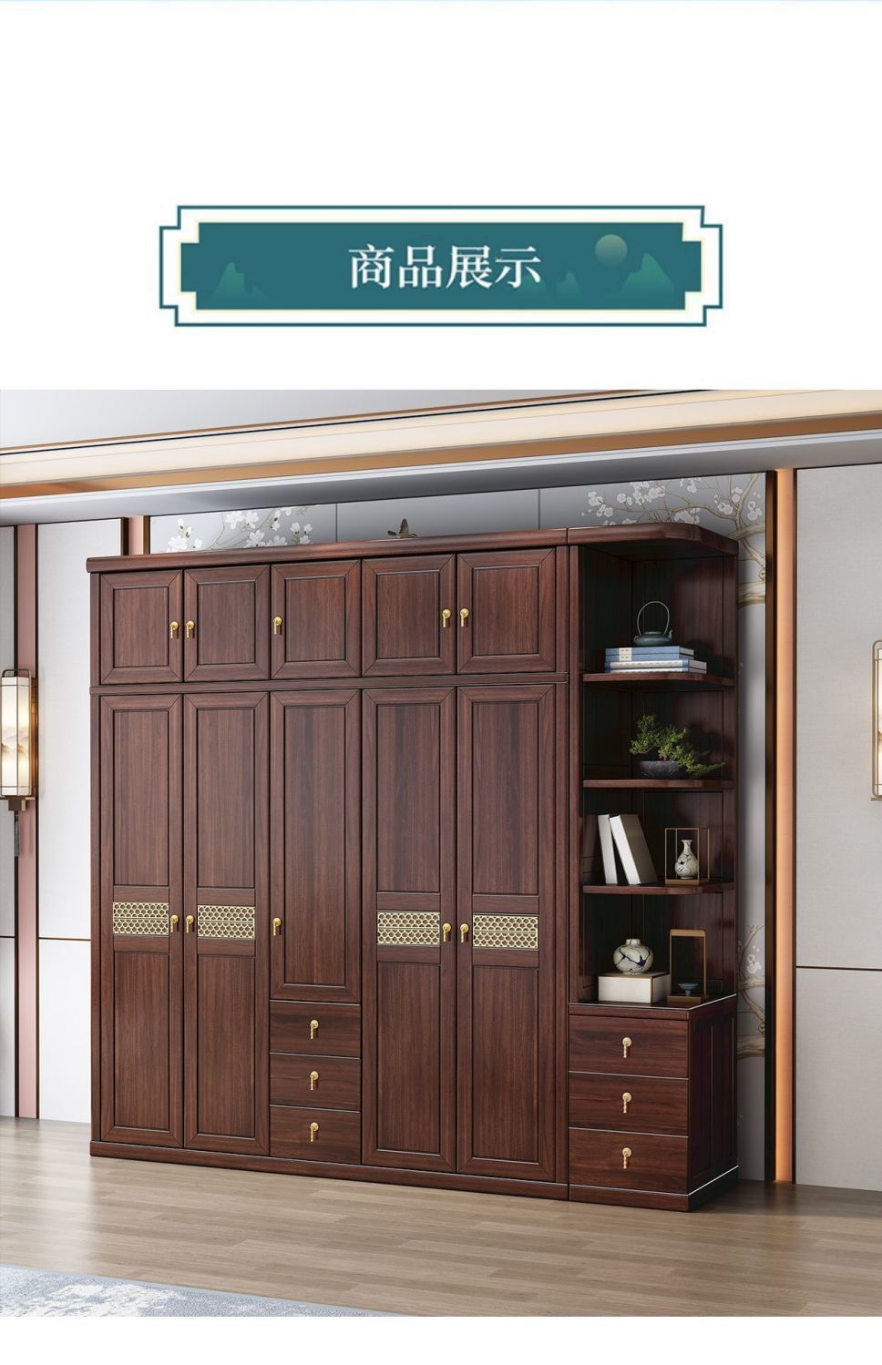 검은 골드 우드 새로운 중국 스타일 모든 단단한 나무 옷장 침실 캐비닛 대형 옷장 침실 홈 3, 4, 5 쌍 도어 스토리지 캐비닛