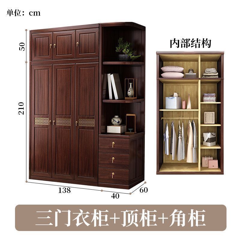 검은 골드 우드 새로운 중국 스타일 모든 단단한 나무 옷장 침실 캐비닛 대형 옷장 침실 홈 3, 4, 5 쌍 도어 스토리지 캐비닛스토어 가기