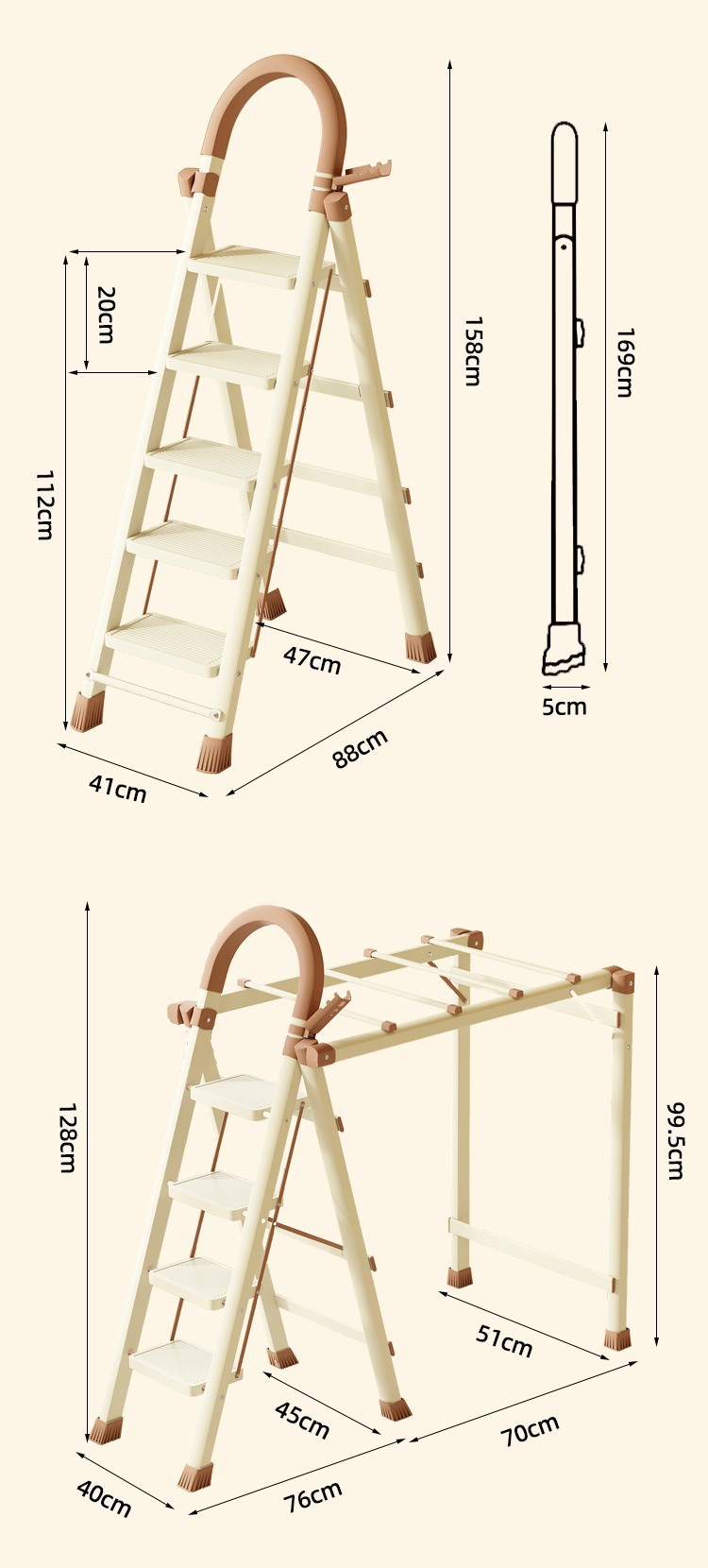 • 밀크커피컬러-5단/사다리 겸용 빨래건조대