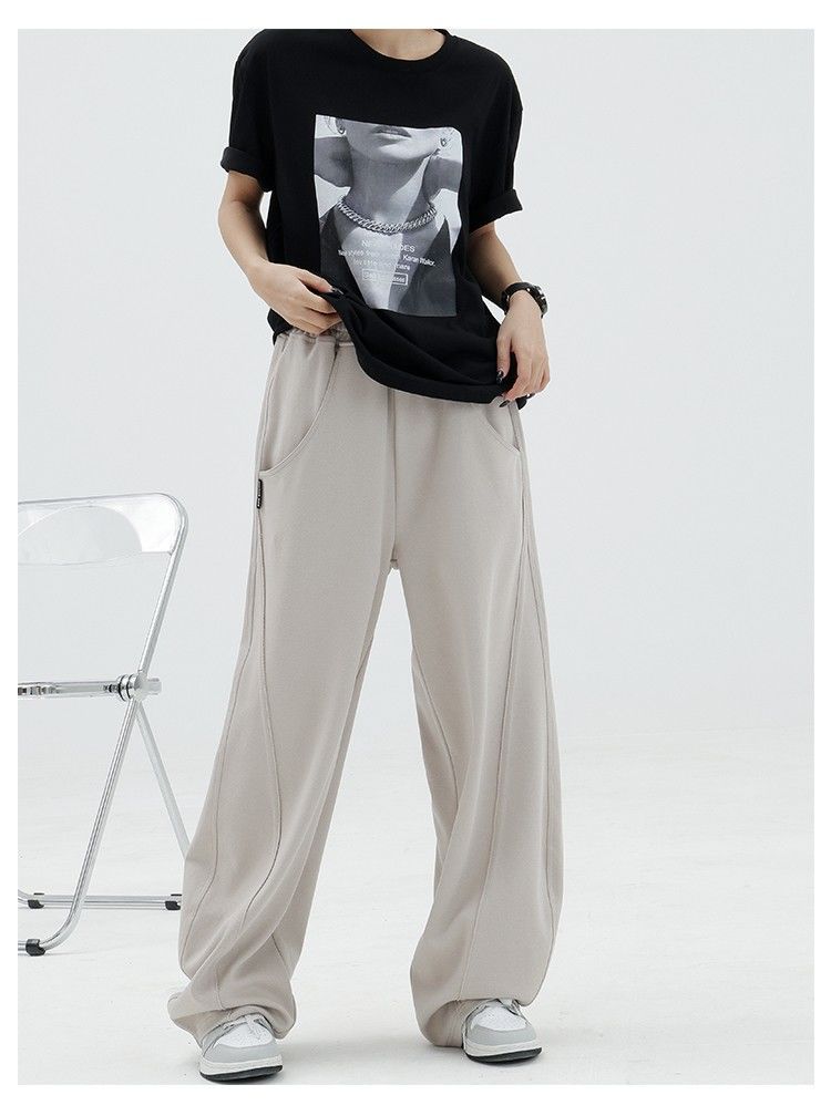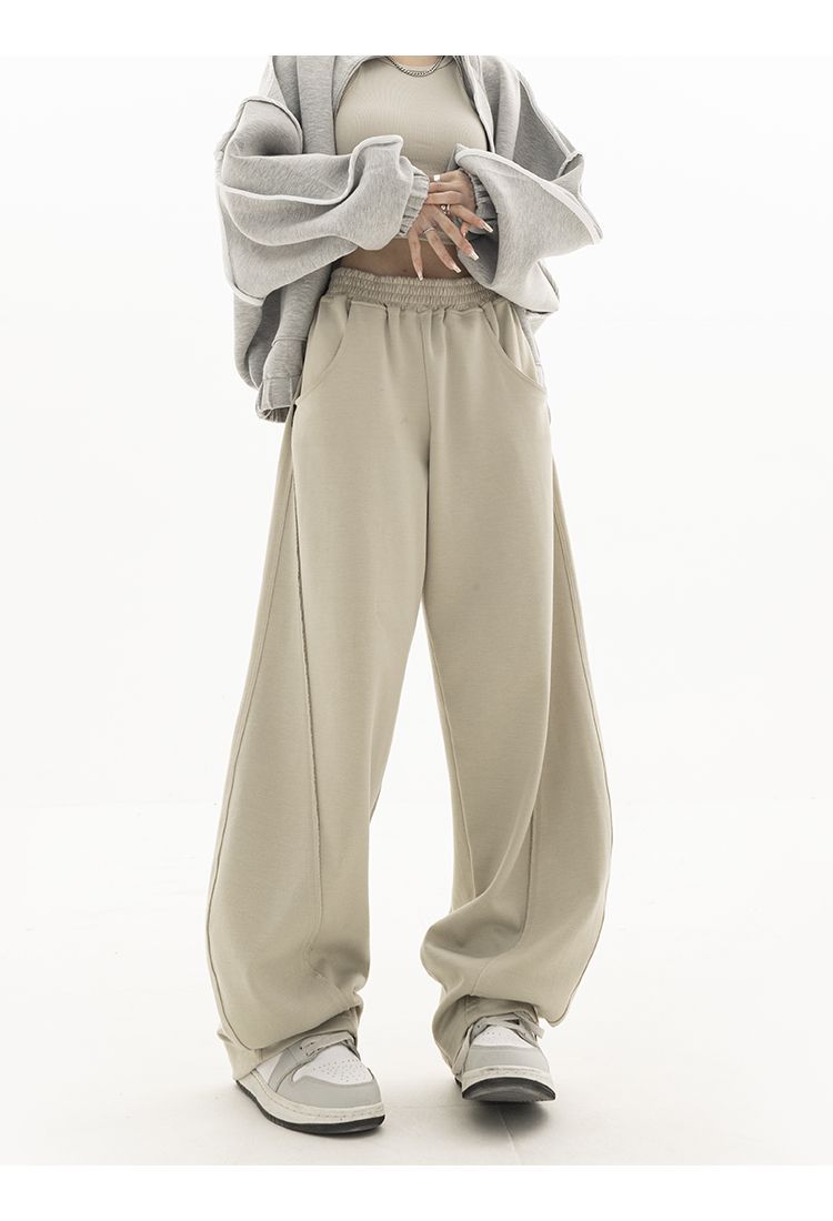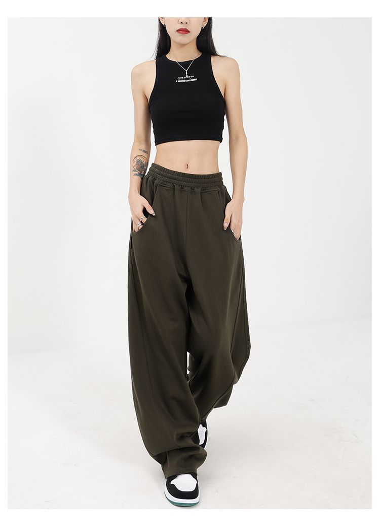 초가을 여성용 살구색 바나나 와이드 팬츠, 패셔너블한 재즈 댄스 배형 몸매 댄스 캐주얼 바닥 길이 바지스토어 가기